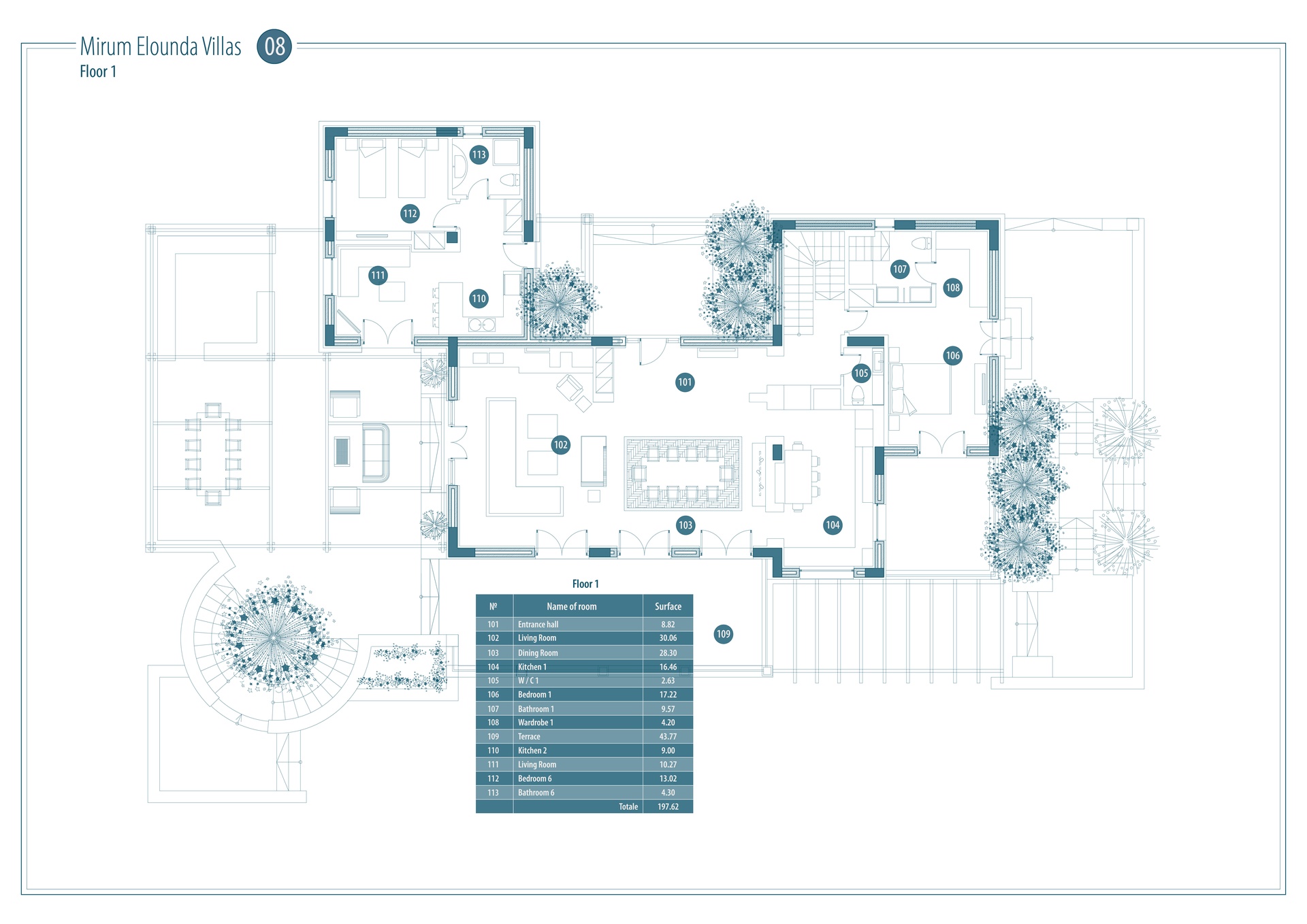 Each of the five bedrooms comes with its own state-of-the-art private bathroom. Every room is designed to offer a seamless harmony between aesthetics – thanks to the contemporary, high-end design with clean lines – and functionality, along with unprecedented views of the Mediterranean sea.