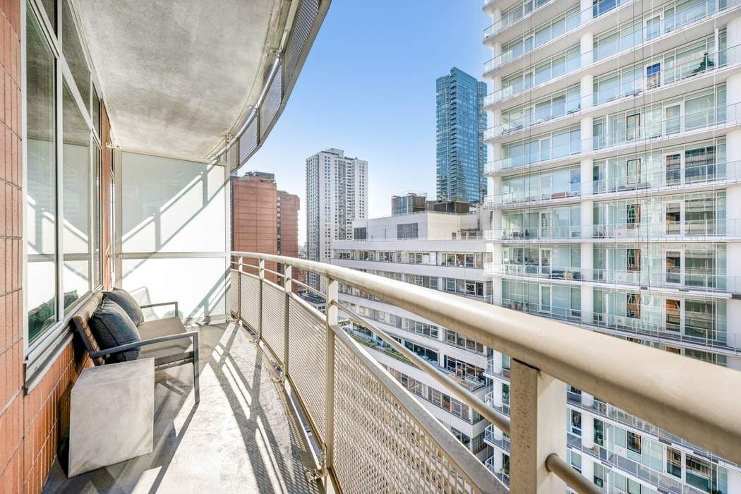 A welcoming entry opens into an expansive living and dining area anchored by a gas fireplace and framed by floor-to-ceiling windows with sweeping Midtown views. One of two private outdoor spaces extends the living area, creating a natural connection between indoors and out. Ideal for a quiet morning coffee or sunset gatherings with friends, the home feels open, balanced, and distinctly personal.