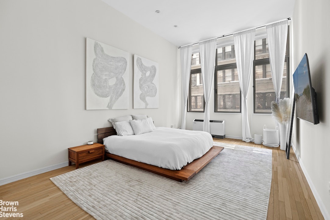 The primary suite is a tranquil retreat, complete with oversized windows, walk-in closet, and luxurious en-suite bath. A second spacious bedroom also features CitiQuiet windows for serene city living. Additional highlights include beautiful hardwood floors, an in-unit washer/dryer, and a private deeded storage bin.