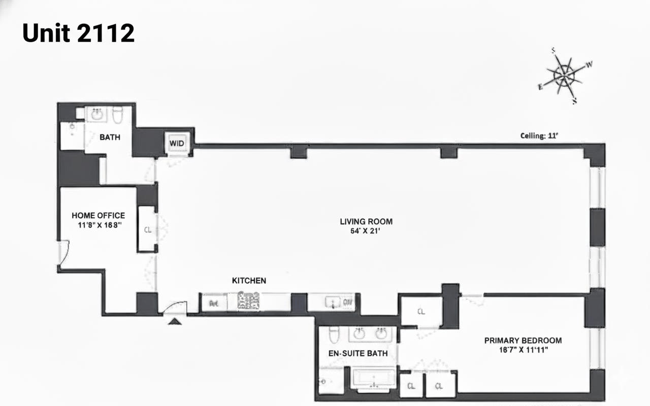 Step into this striking splendid historic 1,809-square-foot loft with a unique pedigree, a rare combination of grandeur, light, and history in the heart of the Financial District. With soaring 11-foot beamed ceilings and nearly 50 feet of unobstructed living and dining space, Residence 2112 captures the essence of downtown living at its finest.