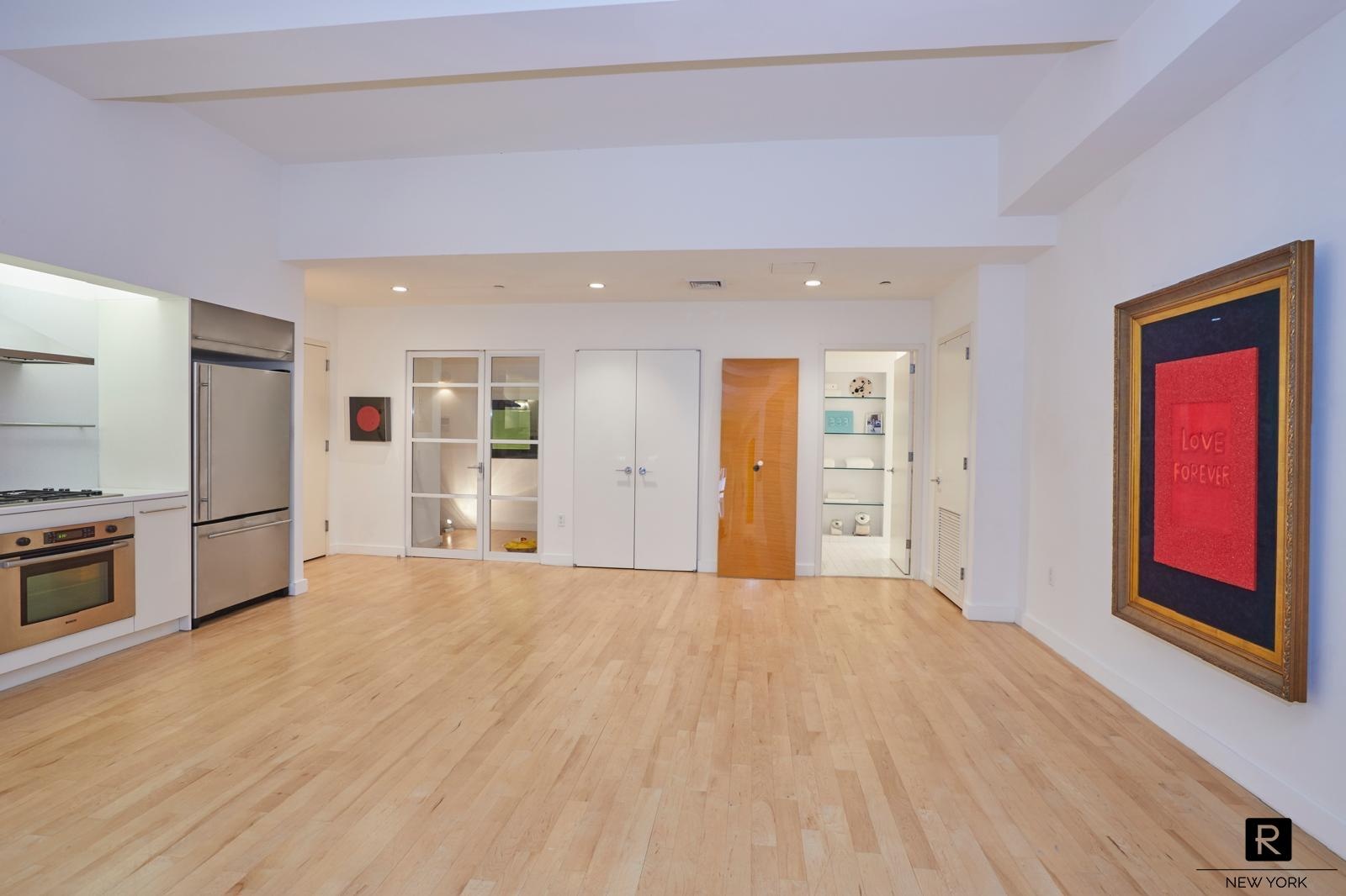 Oversized windows frame open city views from the 21st floor, including the iconic New York Stock Exchange and glimpses of the pinnacle of One World Trade Tower, while the open-concept layout offers exceptional scale for both entertaining and day-to-day comfort with two bathroom designed by Philippe Starck