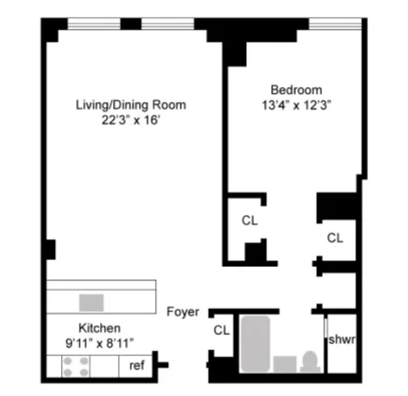 Step into this bright and airy 934 sq. ft., 1-Bedroom, 1-Bath residence in Brooklyn’s landmark One Hanson Place. With an open living and dining layout, oversized eastern-facing windows, 10.5’ beamed ceilings, in unit W/D, and dark hardwood floors, this home feels both spacious and inviting.