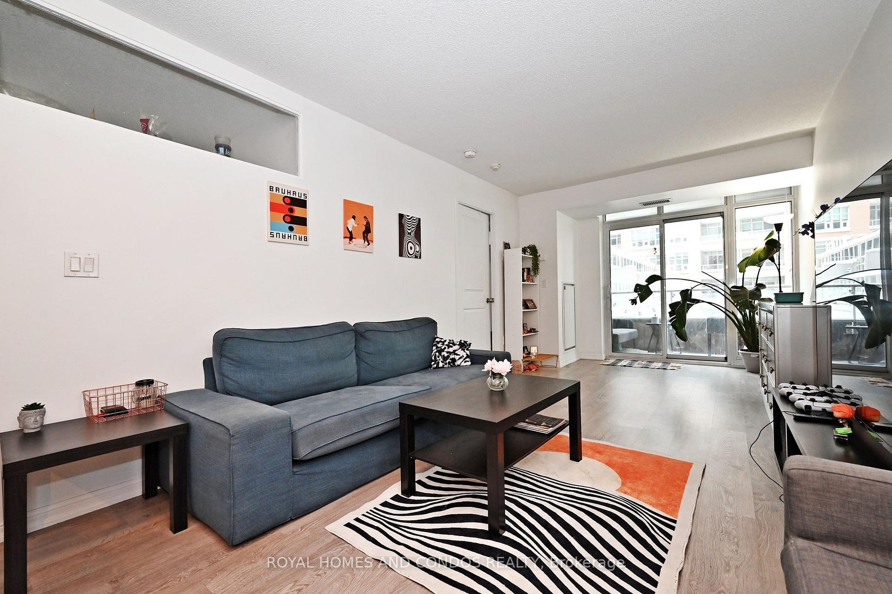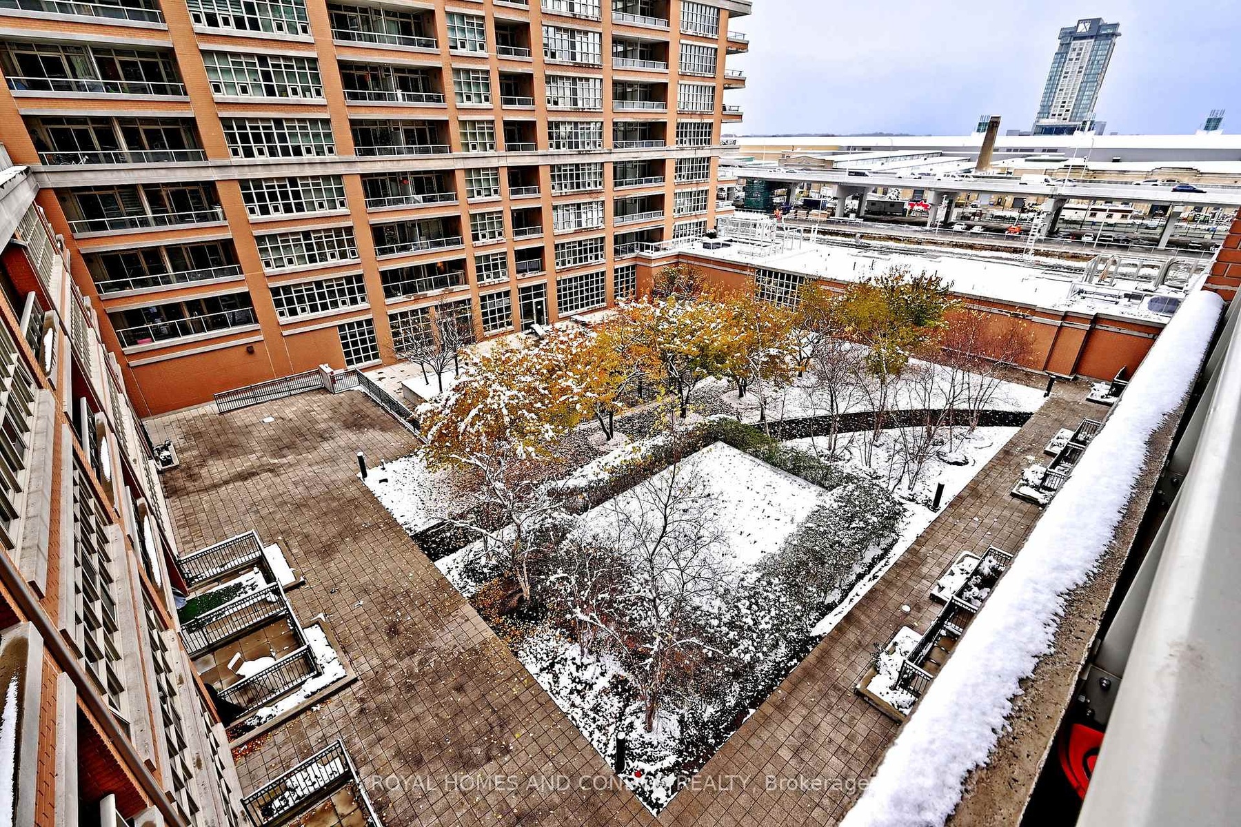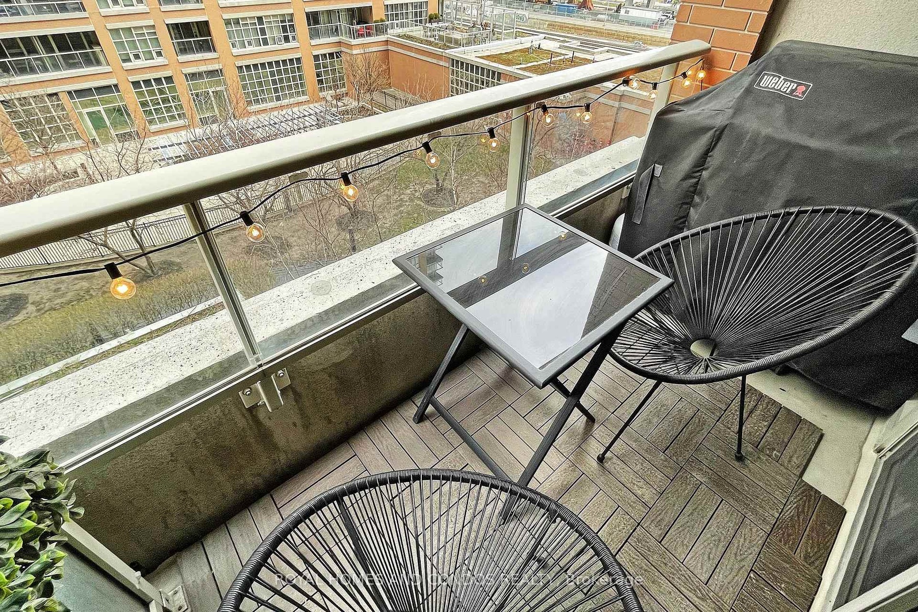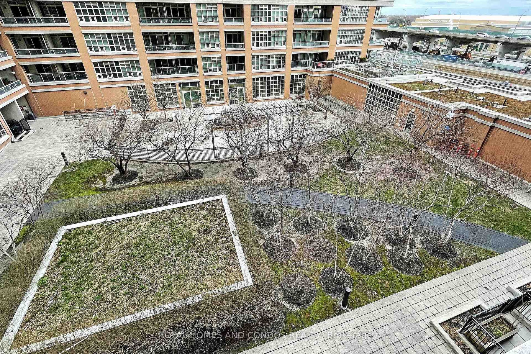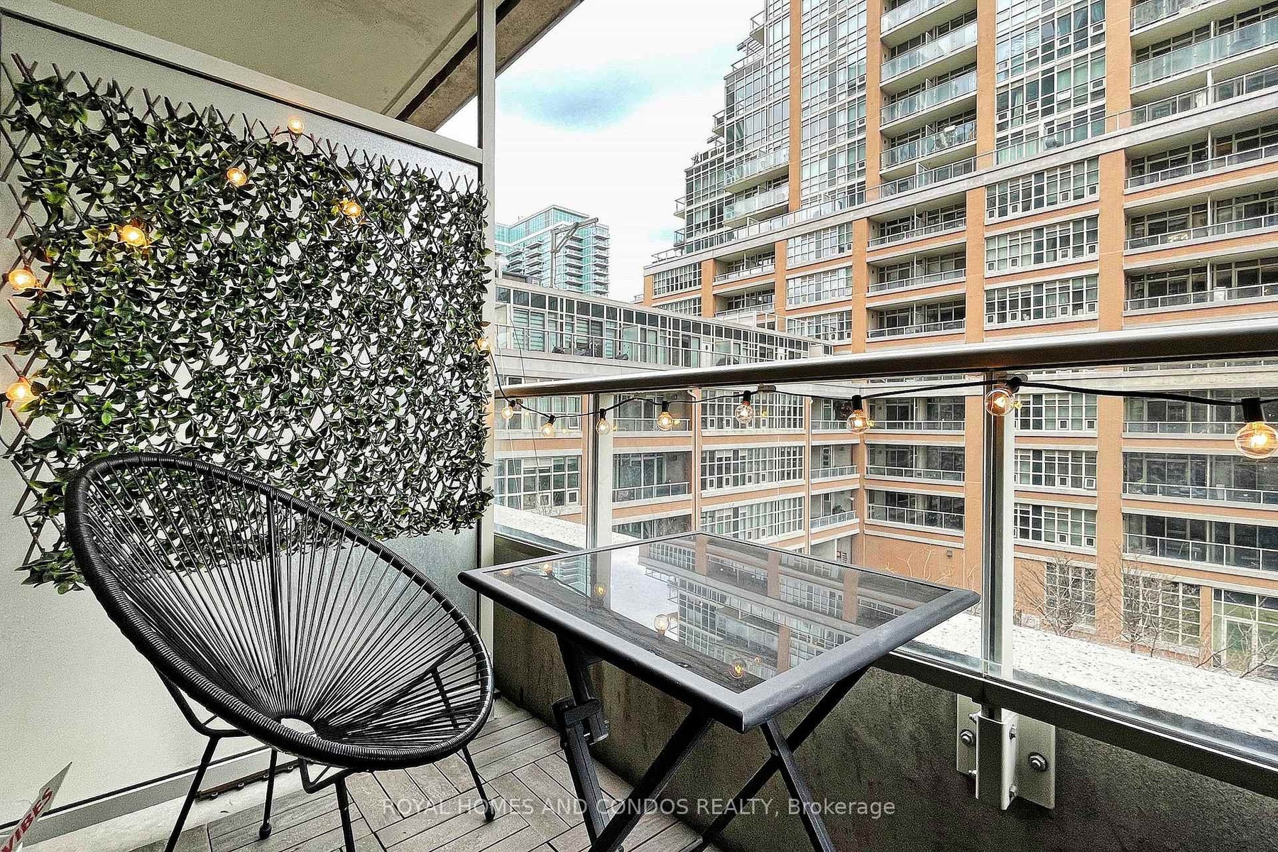 Welcome to Your Oasis in Liberty Village!This stunning condo features a functional, open-concept layout with no wasted space. The enclosed den includes a large closet and easily serves as a second bedroom or home office. The modern kitchen offers full-sized stainless steel appliances, ample storage, and generous counter space - a dream for any home chef. Enjoy two full bathrooms, perfect for couples or guests seeking comfort and privacy.Floor-to-ceiling windows overlook the quiet interior courtyard, providing a peaceful retreat in the heart of vibrant Liberty Village. Located on the 7th floor, you'll love the convenience of quick access-no long elevator waits!Steps to grocery stores, LCBO, cafes, restaurants, gyms, pet care, parks, and transit. Unit 713 offers the best of both worlds - urban convenience with a sense of calm and comfort.
