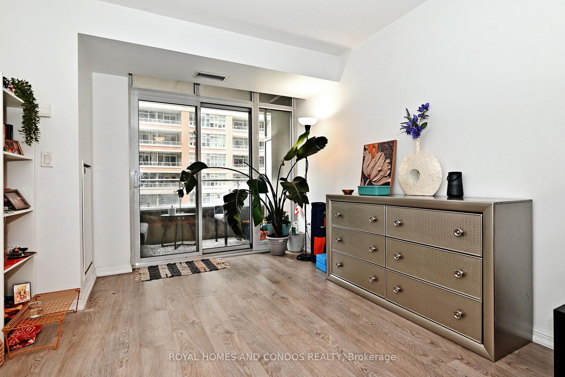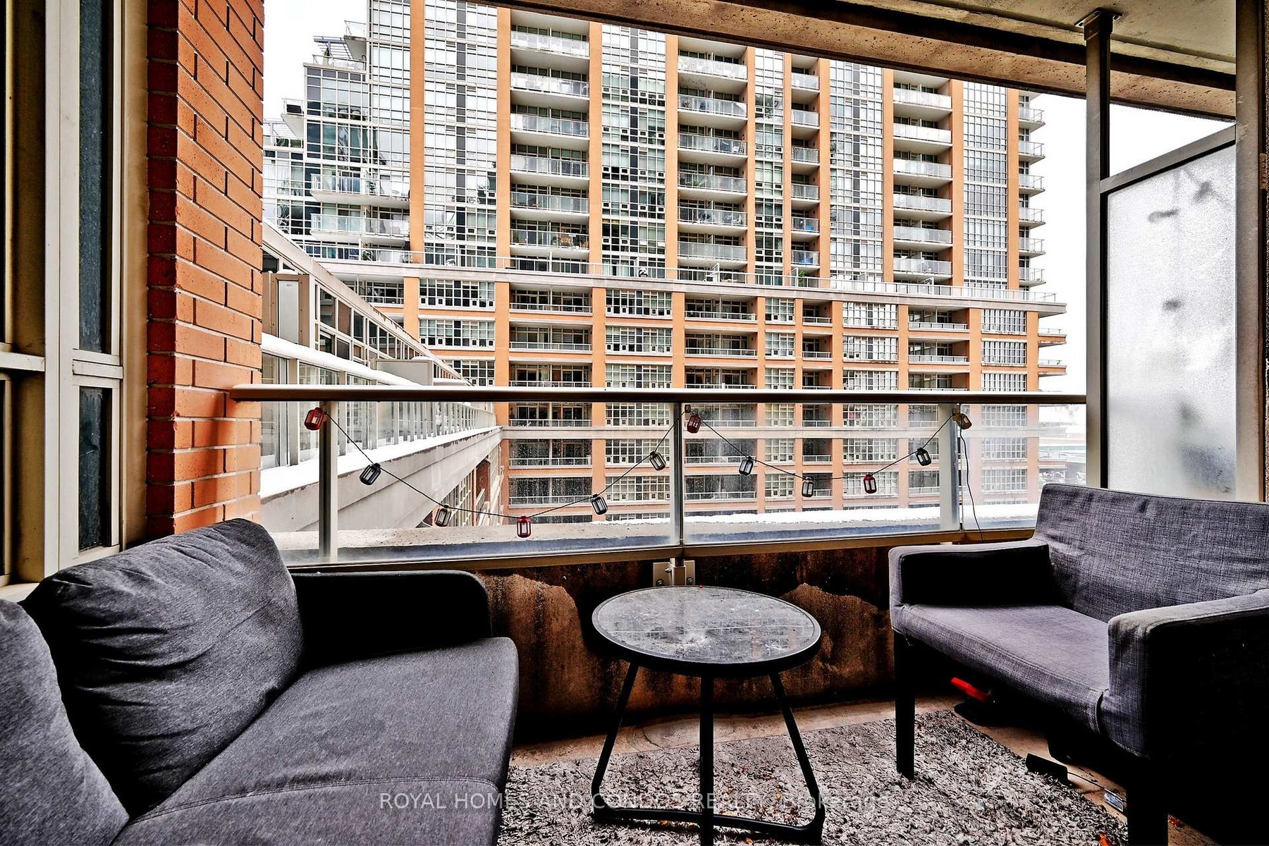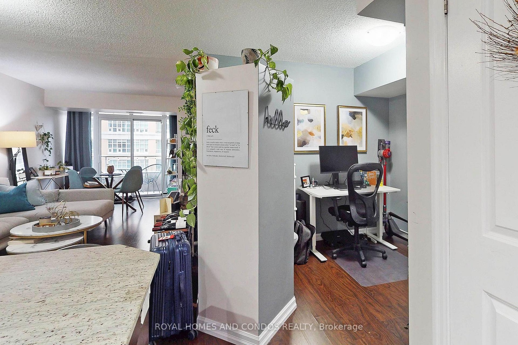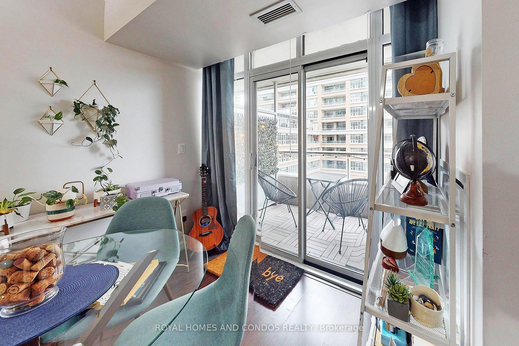 Welcome to Your Oasis in Liberty Village!This stunning condo features a functional, open-concept layout with no wasted space. The enclosed den includes a large closet and easily serves as a second bedroom or home office. The modern kitchen offers full-sized stainless steel appliances, ample storage, and generous counter space - a dream for any home chef. Enjoy two full bathrooms, perfect for couples or guests seeking comfort and privacy.Floor-to-ceiling windows overlook the quiet interior courtyard, providing a peaceful retreat in the heart of vibrant Liberty Village. Located on the 7th floor, you'll love the convenience of quick access-no long elevator waits!Steps to grocery stores, LCBO, cafes, restaurants, gyms, pet care, parks, and transit. Unit 713 offers the best of both worlds - urban convenience with a sense of calm and comfort.