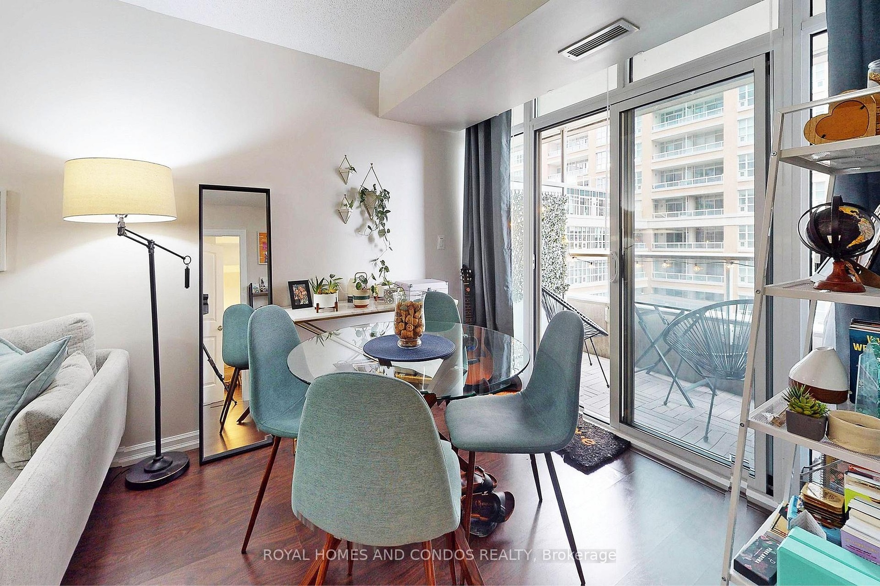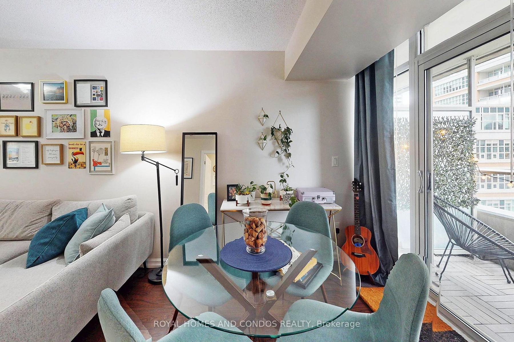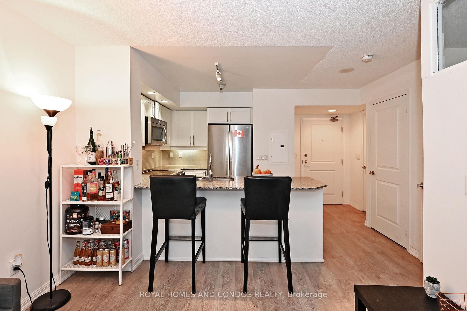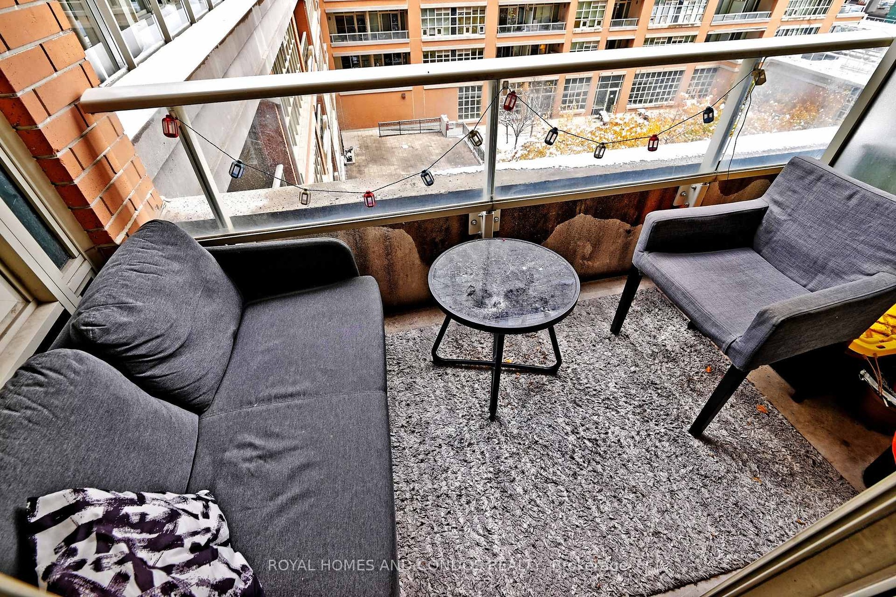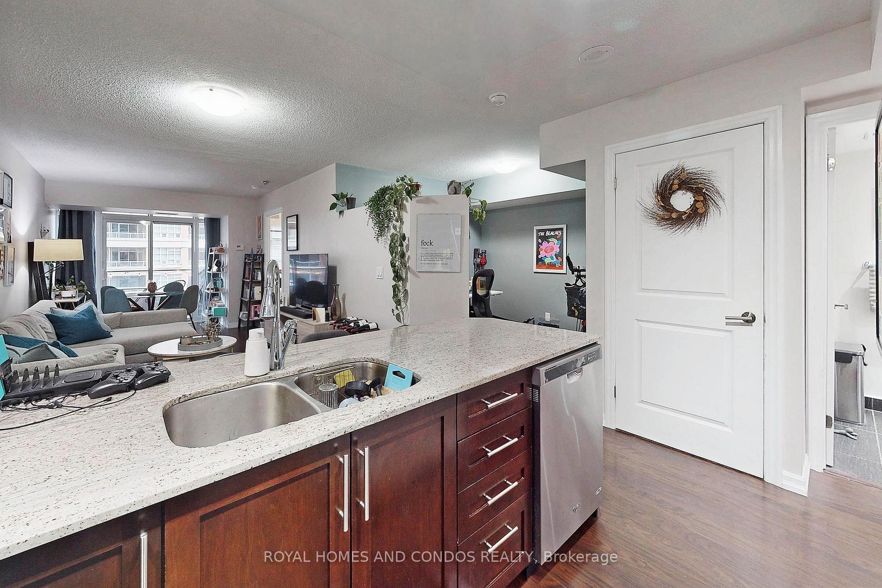 Welcome to Your Oasis in Liberty Village!This stunning condo features a functional, open-concept layout with no wasted space. The enclosed den includes a large closet and easily serves as a second bedroom or home office. The modern kitchen offers full-sized stainless steel appliances, ample storage, and generous counter space - a dream for any home chef. Enjoy two full bathrooms, perfect for couples or guests seeking comfort and privacy.Floor-to-ceiling windows overlook the quiet interior courtyard, providing a peaceful retreat in the heart of vibrant Liberty Village. Located on the 7th floor, you'll love the convenience of quick access-no long elevator waits!Steps to grocery stores, LCBO, cafes, restaurants, gyms, pet care, parks, and transit. Unit 713 offers the best of both worlds - urban convenience with a sense of calm and comfort.