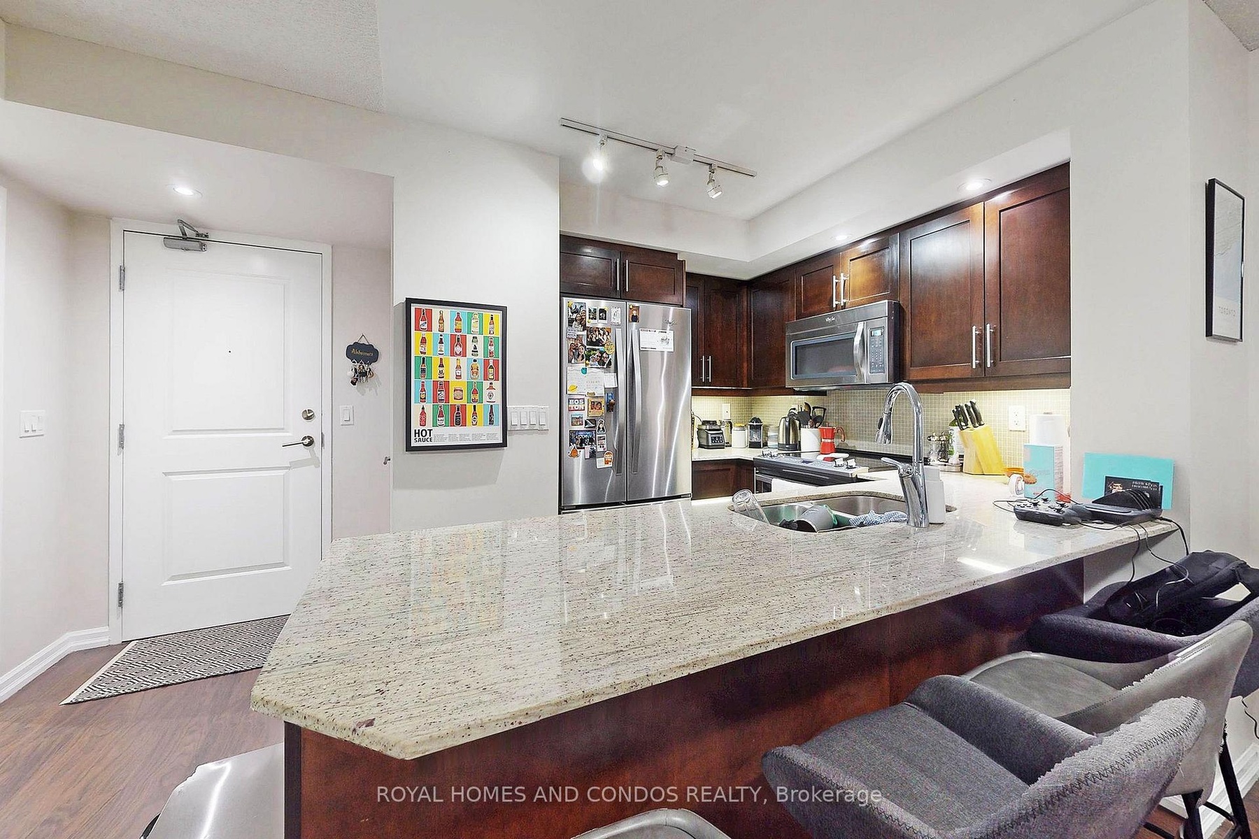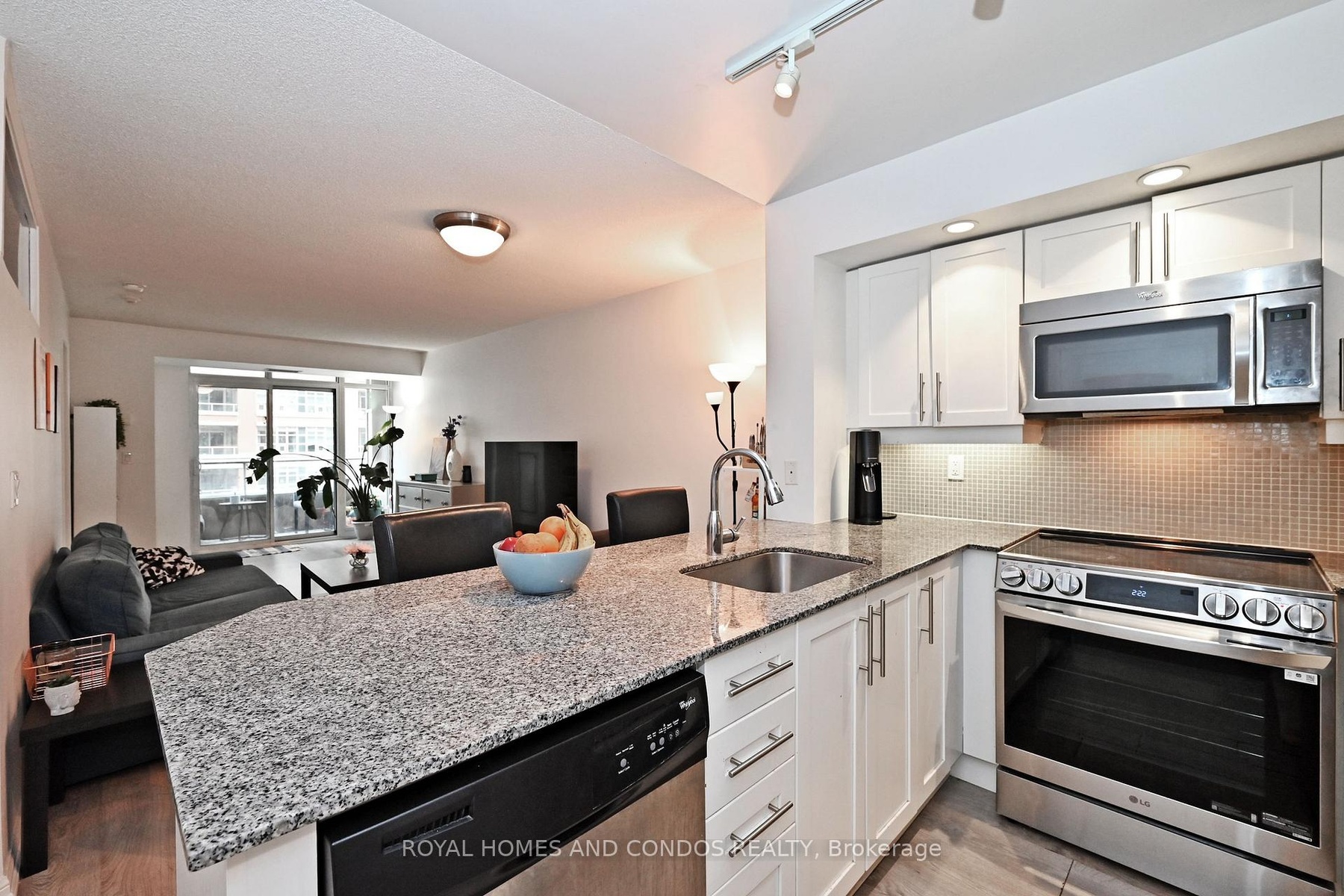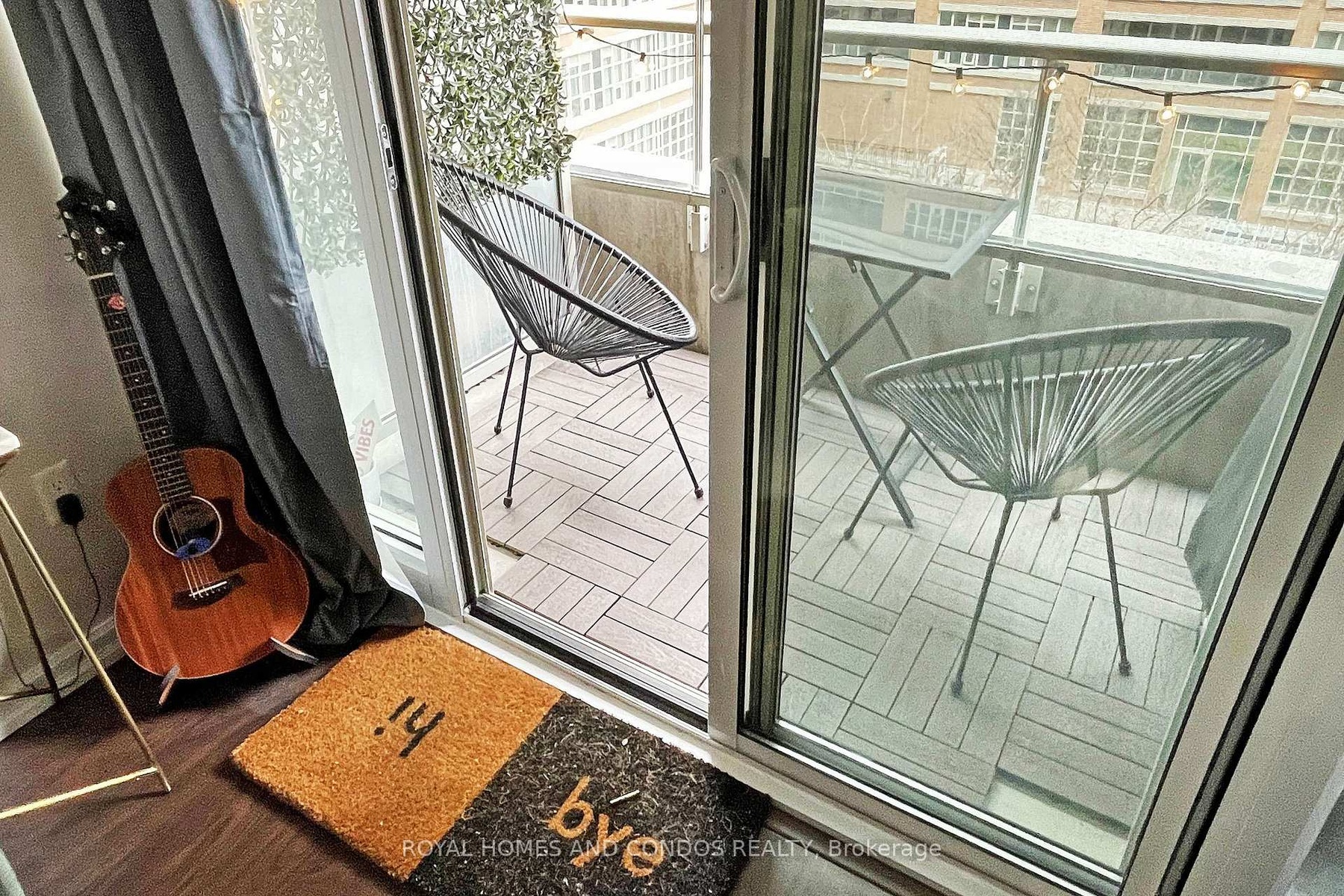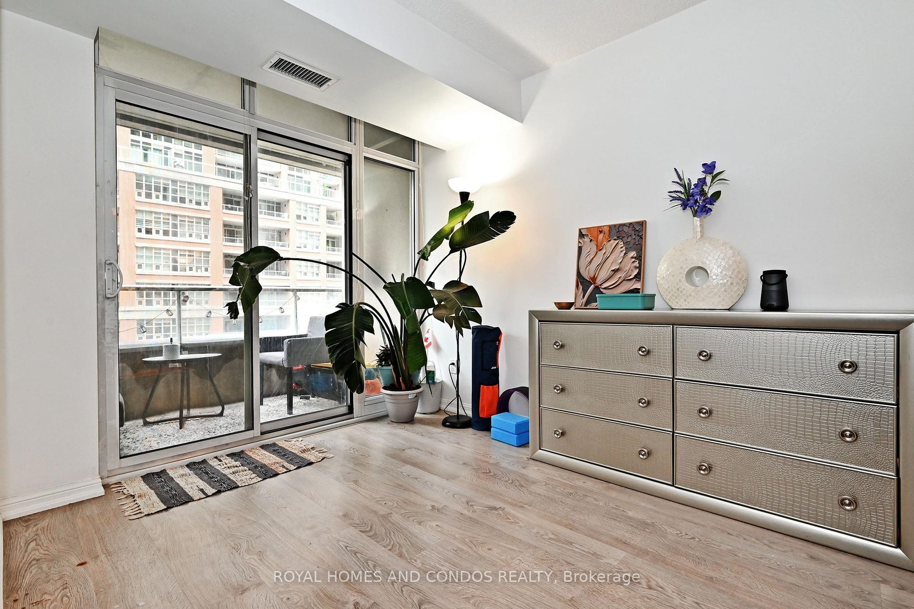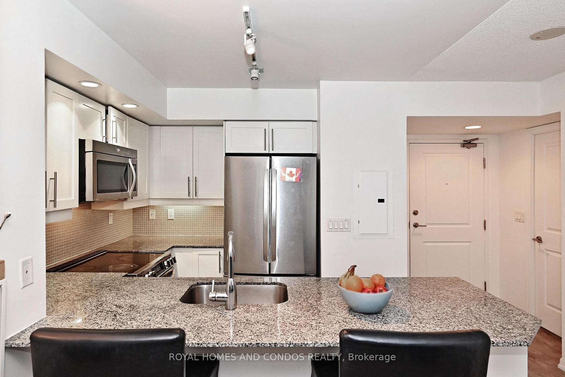 Welcome to Your Oasis in Liberty Village!This stunning condo features a functional, open-concept layout with no wasted space. The enclosed den includes a large closet and easily serves as a second bedroom or home office. The modern kitchen offers full-sized stainless steel appliances, ample storage, and generous counter space - a dream for any home chef. Enjoy two full bathrooms, perfect for couples or guests seeking comfort and privacy.Floor-to-ceiling windows overlook the quiet interior courtyard, providing a peaceful retreat in the heart of vibrant Liberty Village. Located on the 7th floor, you'll love the convenience of quick access-no long elevator waits!Steps to grocery stores, LCBO, cafes, restaurants, gyms, pet care, parks, and transit. Unit 713 offers the best of both worlds - urban convenience with a sense of calm and comfort.