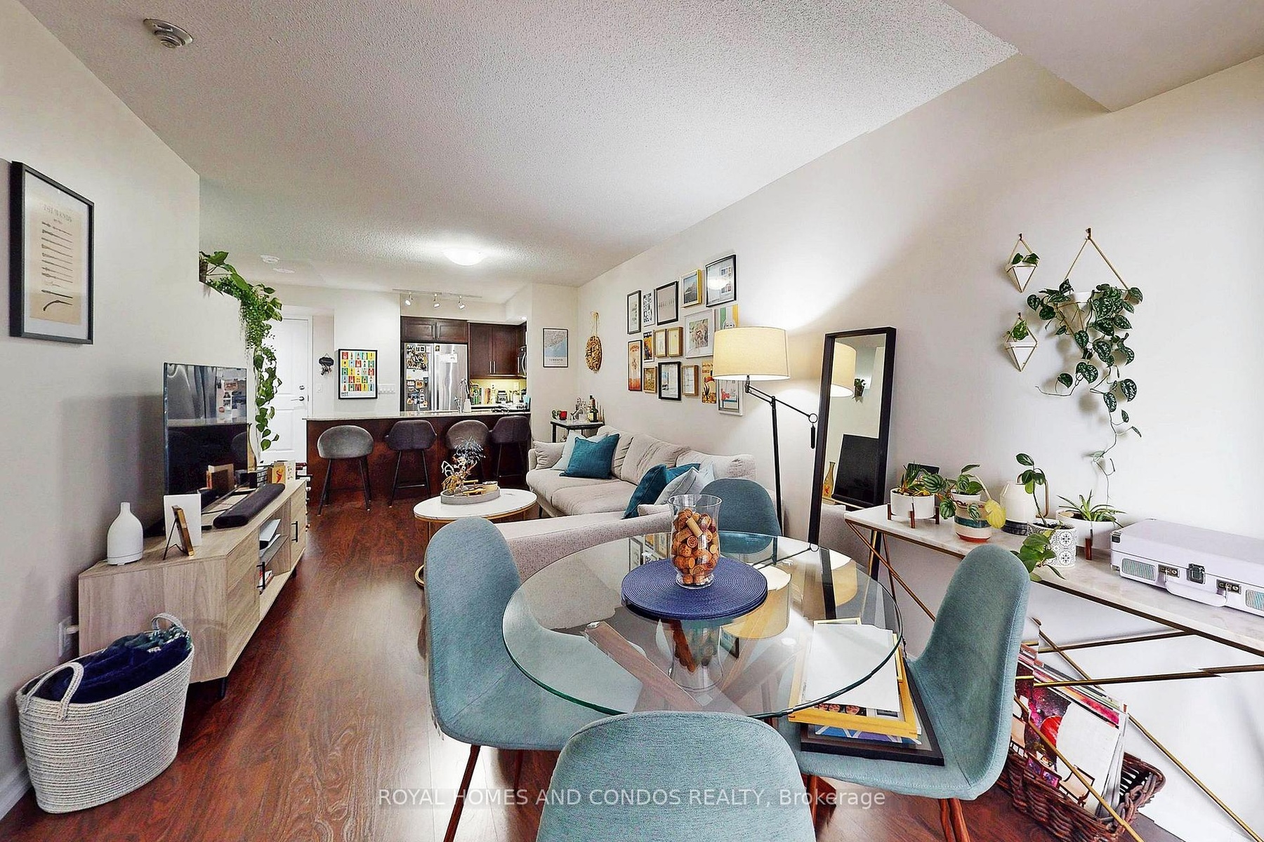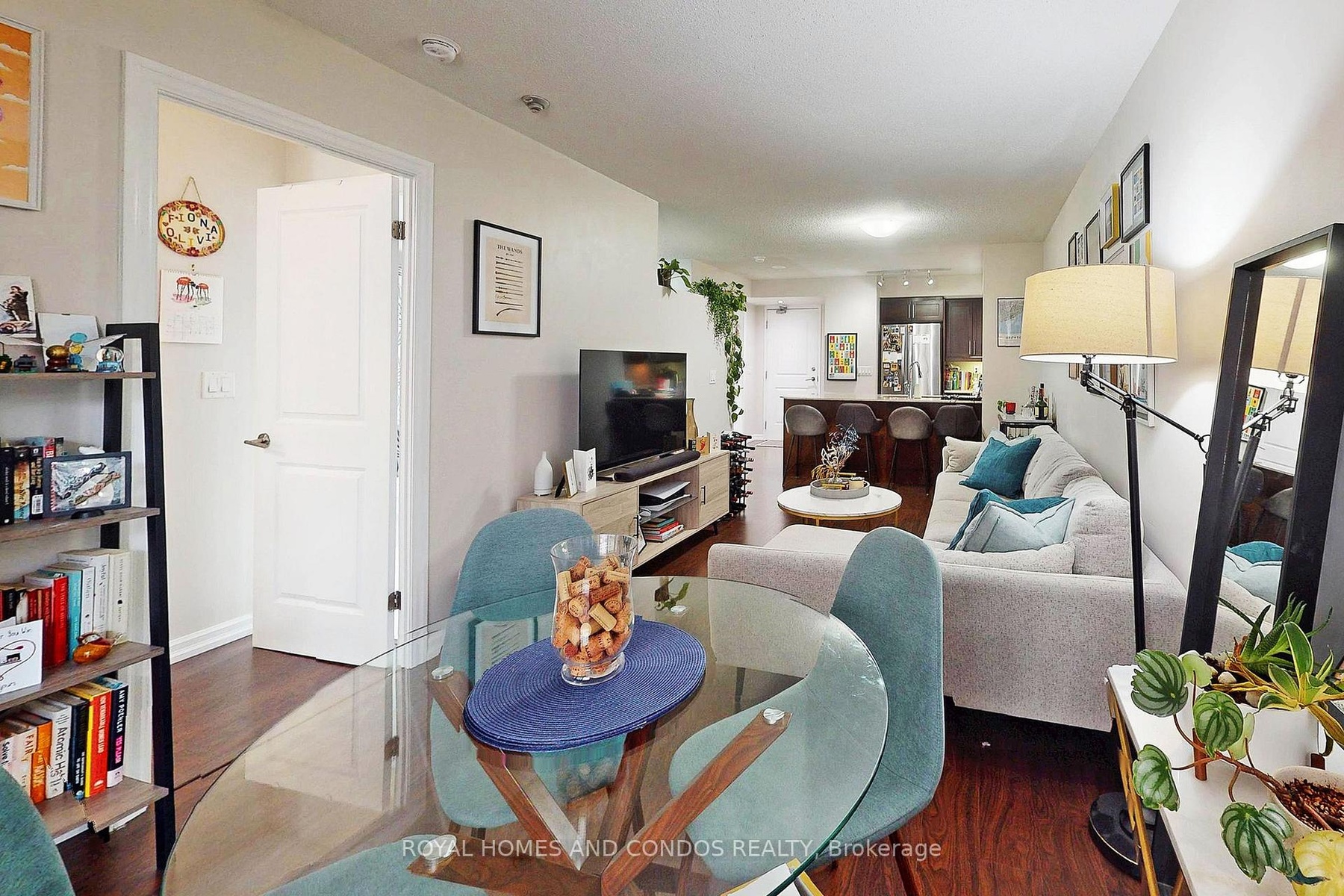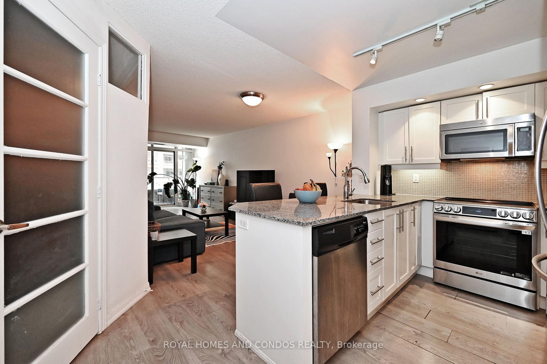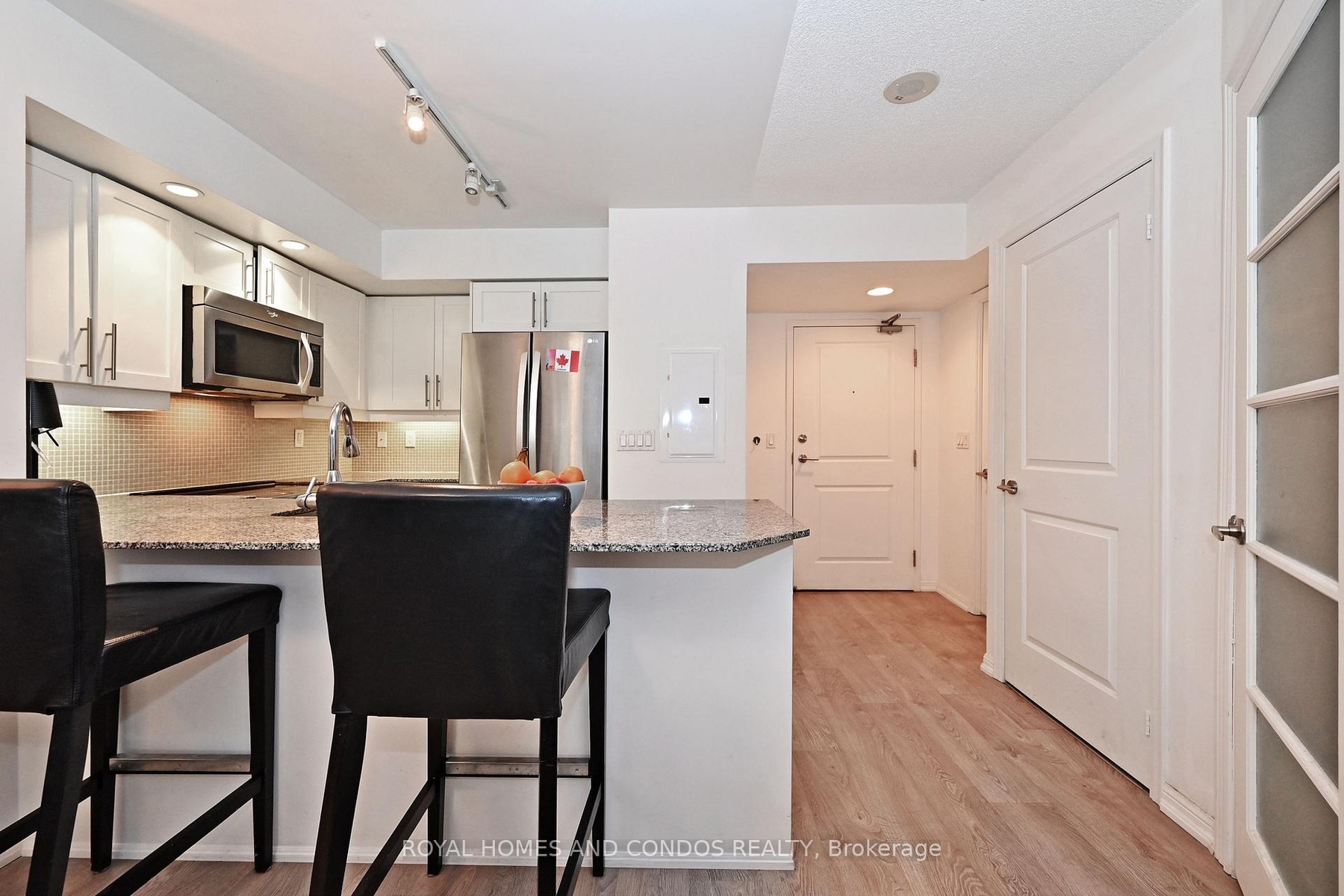 Welcome to Your Oasis in Liberty Village!This stunning condo features a functional, open-concept layout with no wasted space. The enclosed den includes a large closet and easily serves as a second bedroom or home office. The modern kitchen offers full-sized stainless steel appliances, ample storage, and generous counter space - a dream for any home chef. Enjoy two full bathrooms, perfect for couples or guests seeking comfort and privacy.Floor-to-ceiling windows overlook the quiet interior courtyard, providing a peaceful retreat in the heart of vibrant Liberty Village. Located on the 7th floor, you'll love the convenience of quick access-no long elevator waits!Steps to grocery stores, LCBO, cafes, restaurants, gyms, pet care, parks, and transit. Unit 713 offers the best of both worlds - urban convenience with a sense of calm and comfort.
