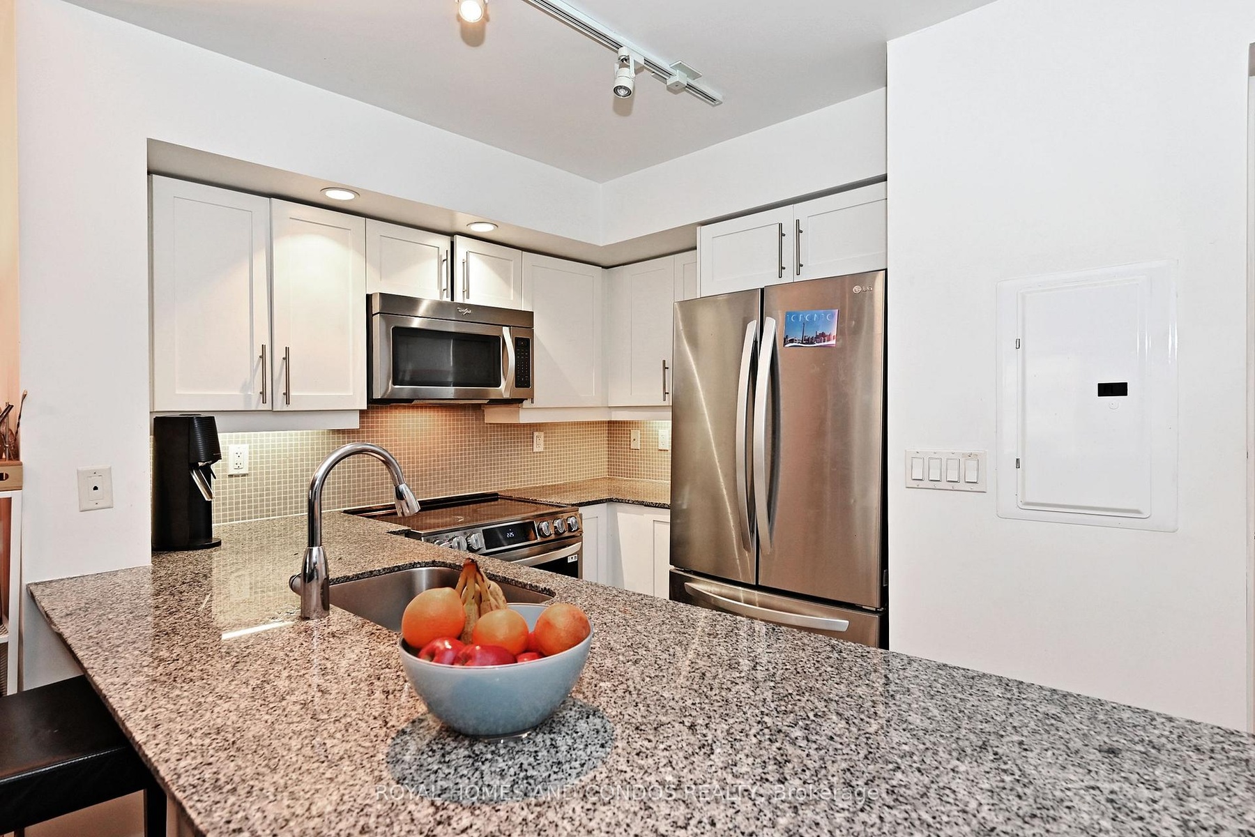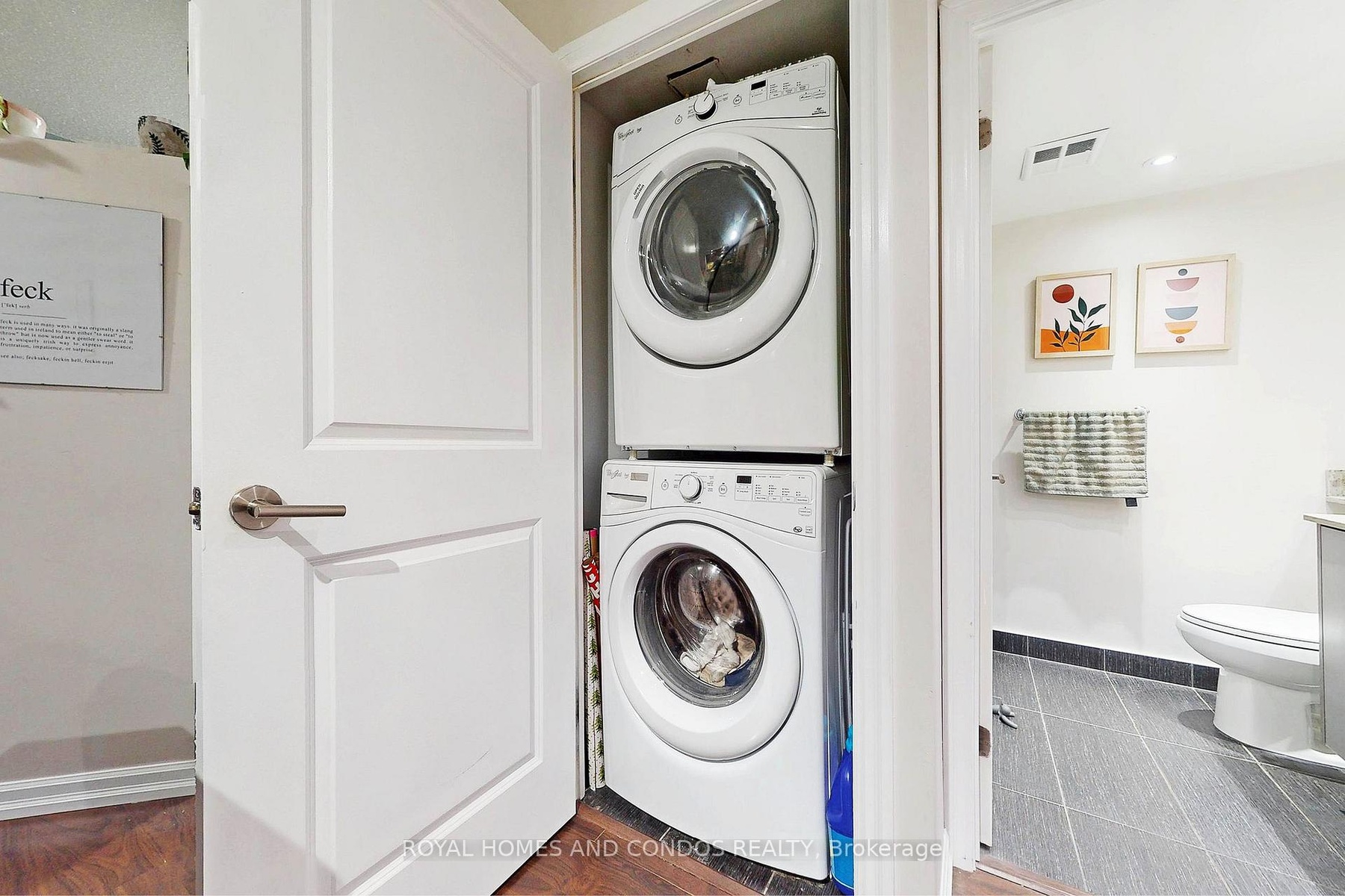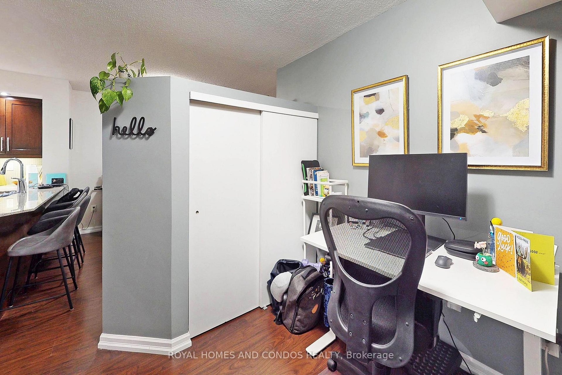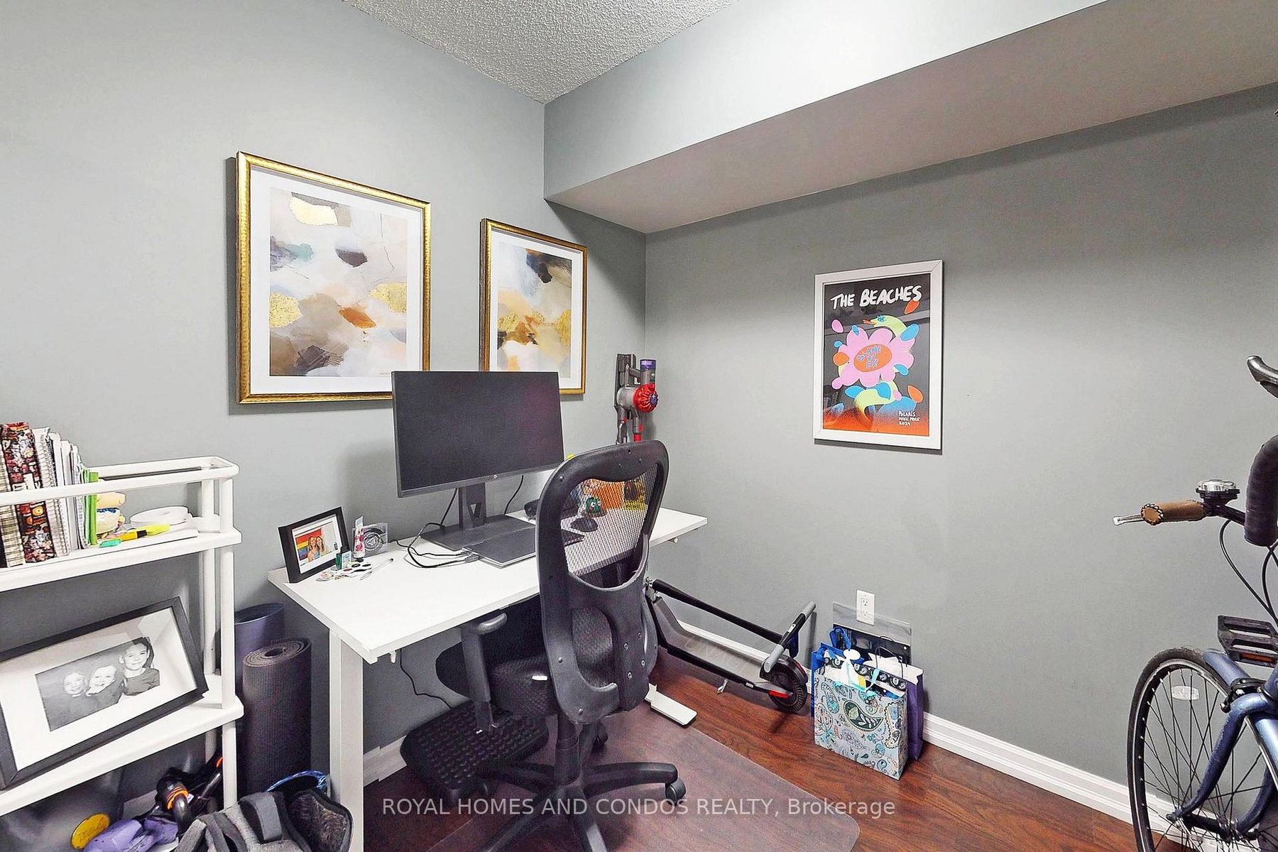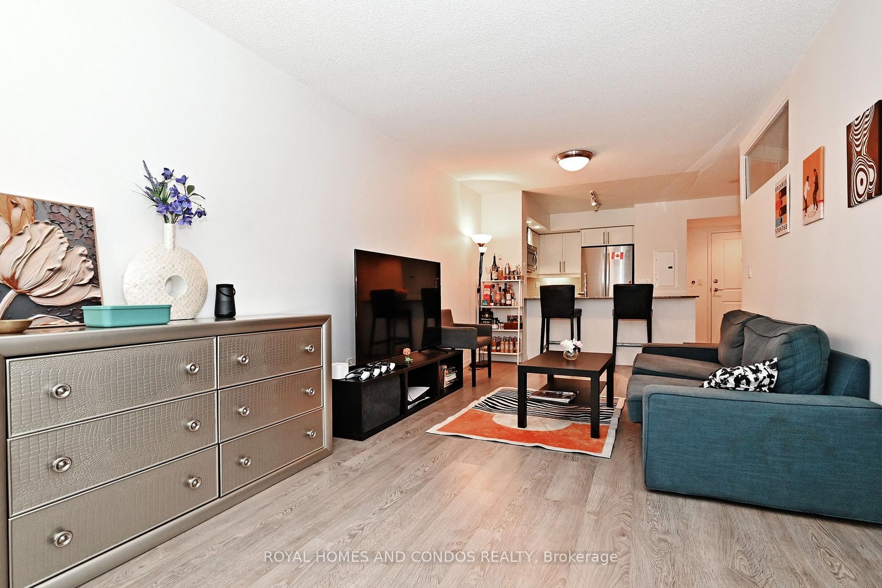 Welcome to Your Oasis in Liberty Village!This stunning condo features a functional, open-concept layout with no wasted space. The enclosed den includes a large closet and easily serves as a second bedroom or home office. The modern kitchen offers full-sized stainless steel appliances, ample storage, and generous counter space - a dream for any home chef. Enjoy two full bathrooms, perfect for couples or guests seeking comfort and privacy.Floor-to-ceiling windows overlook the quiet interior courtyard, providing a peaceful retreat in the heart of vibrant Liberty Village. Located on the 7th floor, you'll love the convenience of quick access-no long elevator waits!Steps to grocery stores, LCBO, cafes, restaurants, gyms, pet care, parks, and transit. Unit 713 offers the best of both worlds - urban convenience with a sense of calm and comfort.