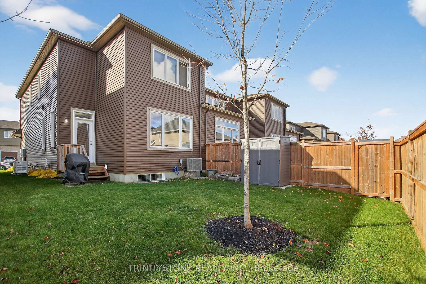 Welcome to this stunning 3-bedroom end-unit townhome located in the Millers Crossing community of Carleton Place. Offering the perfect blend of comfort, convenience, and modern design, this property is ideal for families, professionals, or anyone looking for a move-in-ready home in a great location. From the moment you arrive, you'll be greeted by a charming covered front porch. Step inside to a lovely front foyer with a convenient powder room and a bright, open-concept main level designed for modern living. Beautiful floors flow throughout the main space, complementing the neutral tones and large windows that fill the home with natural light. The kitchen is both stylish and functional, featuring modern cabinetry and stainless steel appliances. The open layout seamlessly connects the kitchen to the dining and living areas, making it ideal for entertaining or spending time with family. Upstairs, the large primary bedroom offers a peaceful retreat complete with a walk-in closet and a luxurious ensuite. Two additional bedrooms provide plenty of room for family or guests, and the versatile upper level den space makes a perfect home office, study area, or second TV room. Convenient second-level laundry adds to the ease of everyday living.The bright lower level offers plenty of potential - a second family room, a home gym, recreation room, and lots of additional storage. Outside, you'll enjoy a partly fenced backyard with room to garden, play, or unwind. Newer shed included for bonus storage. This home also includes a Generac generator for peace of mind, and is located steps away from a family-friendly splash pad and playground. Just minutes from Walmart, Independent, and Home Depot, and with quick access to Highway 7, this location makes commuting to Ottawa simple while keeping all the conveniences of Carleton Place close to home.