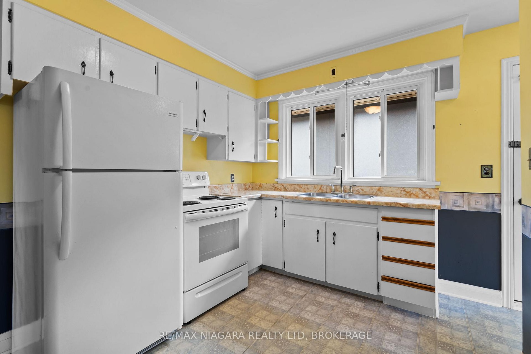 This solid brick 3-bedroom bungalow is located in a highly desirable Niagara Falls neighborhood, close to public transit, schools, shopping, and highway access. This home offers a fantastic layout and endless potential for the right buyer. Features include a large L-shaped living and dining room, a bright and spacious kitchen, and three generous-sized bedrooms. There are two bathrooms, one 4-piece on the main level and one 3-piece in the basement, providing convenience for family living. The finished basement is ideal for a recreation room, guest space or in-law capability. Outside, enjoy a beautifully landscaped backyard - the true highlight of this property - along with a front deck perfect for relaxing outdoors. Additional features include a detached garage, a separate entrance to basement and lots of driveway space for parking. This character-filled home is ready for your updates and personal touch. Don't miss this opportunity to create your dream home in a sought-after area in Niagara Falls.