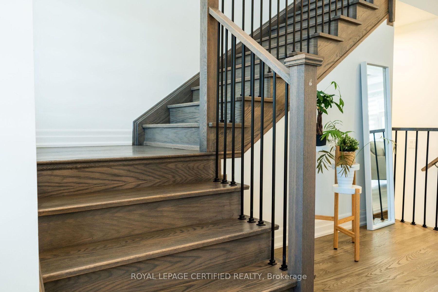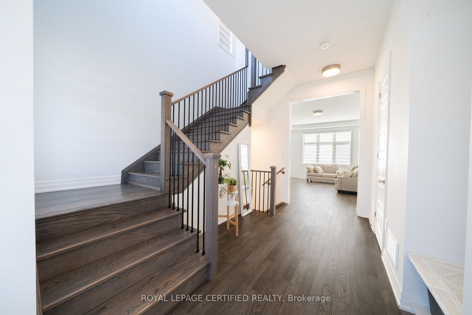 Welcome to this stunning one-year-old detached home sitting on premium lot Infront of pond and scenic trail in the highly sought-after Upper Joshua Creek community of Oakville. As you step inside, the main floor impresses with 10-foot ceilings, creating a bright and open living space. The modern kitchen features quartz countertops, a large island, premium cabinetry, and stainless steel appliances - perfect for family living and entertaining. The second floor offers 4 spacious bedrooms, including a luxurious primary suite with a walk-in closet and a spa-like ensuite. Enjoy the fully fenced backyard, ideal for kids, pets, and summer gatherings. Side entrance to the basement waiting for your touches. This home combines contemporary design, quality finishes, and a prime location close to top-rated schools, parks, shopping, and major highways.