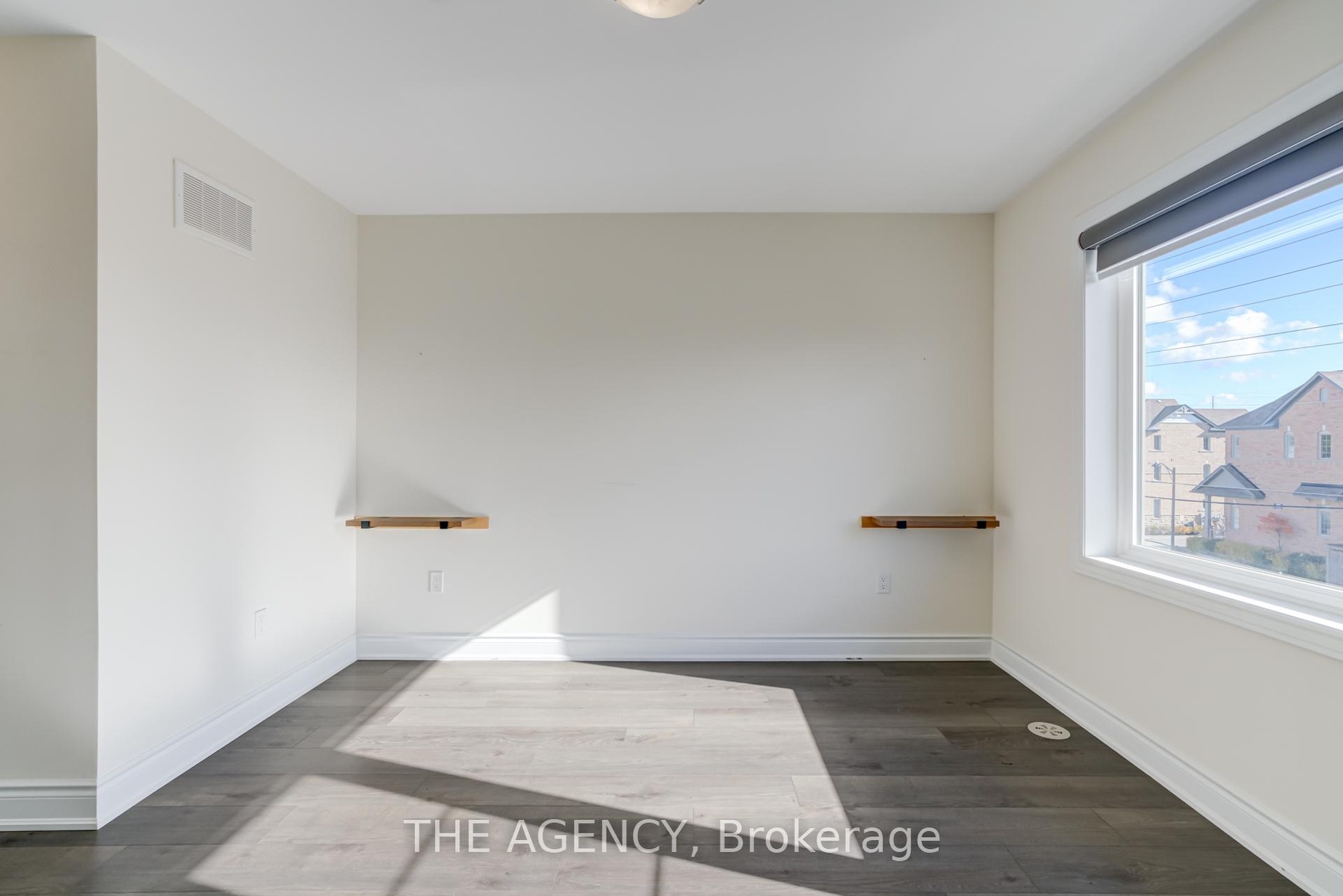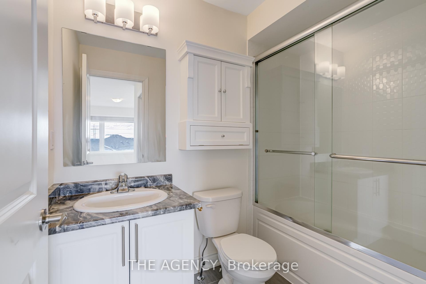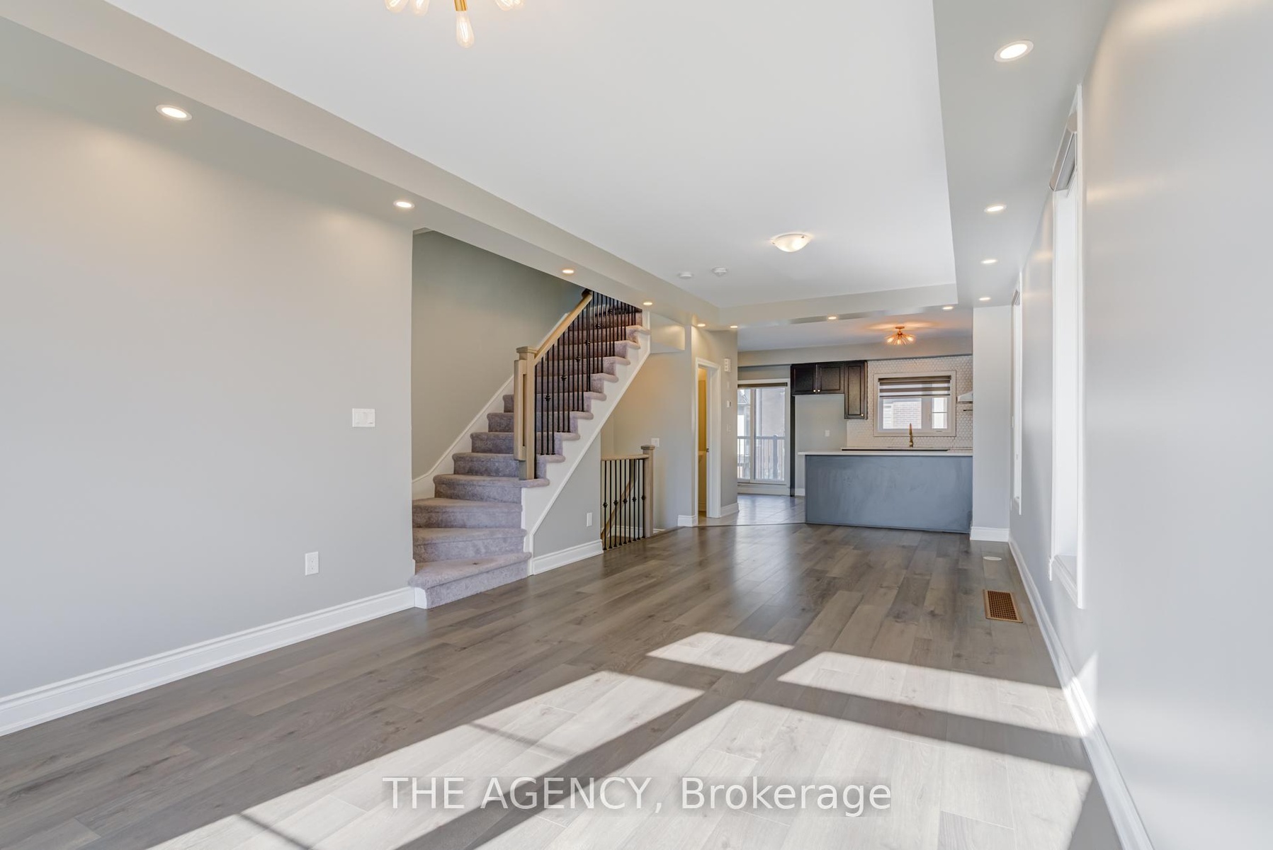 Welcome to this end unit freehold townhouse in the highly sought after Rouge Park community, built by Icon Homes. open concept living space, this 3 Bedroom home is designed with modern elegance and stylish finishes throughout. Bright and spacious principal rooms are filled with natural light, featuring a grand open layout perfect for entertaining and comfortable family living. Enjoy a modern kitchen with quartz countertops, breakfast/dining area with walkout to a large balcony, and combined living and dining room enhanced with pot lights and Windows. Upstairs laundry room adds everyday convenience. The primary suite offers a walk in closet a 4pc ensuite with sliding glass door bathtub, while the guest bathroom also features a sliding glass door bathtub. Direct access to a 2-car garage from the ground floor with an accent wall in large office space with closet. Located close to highly rated schools (Elizabeth B. Phin P.S.), parks, trails, shops, and with easy access to Hwy 401/407.