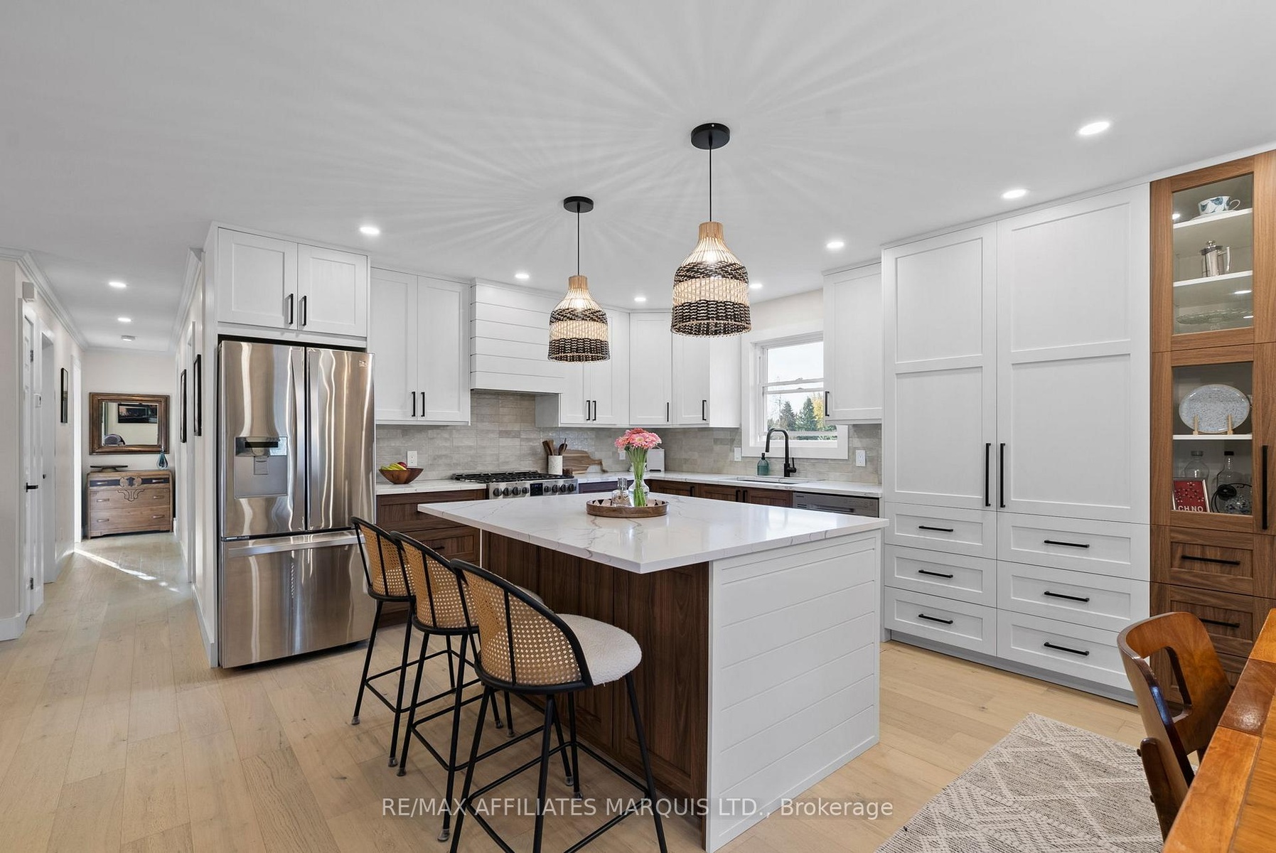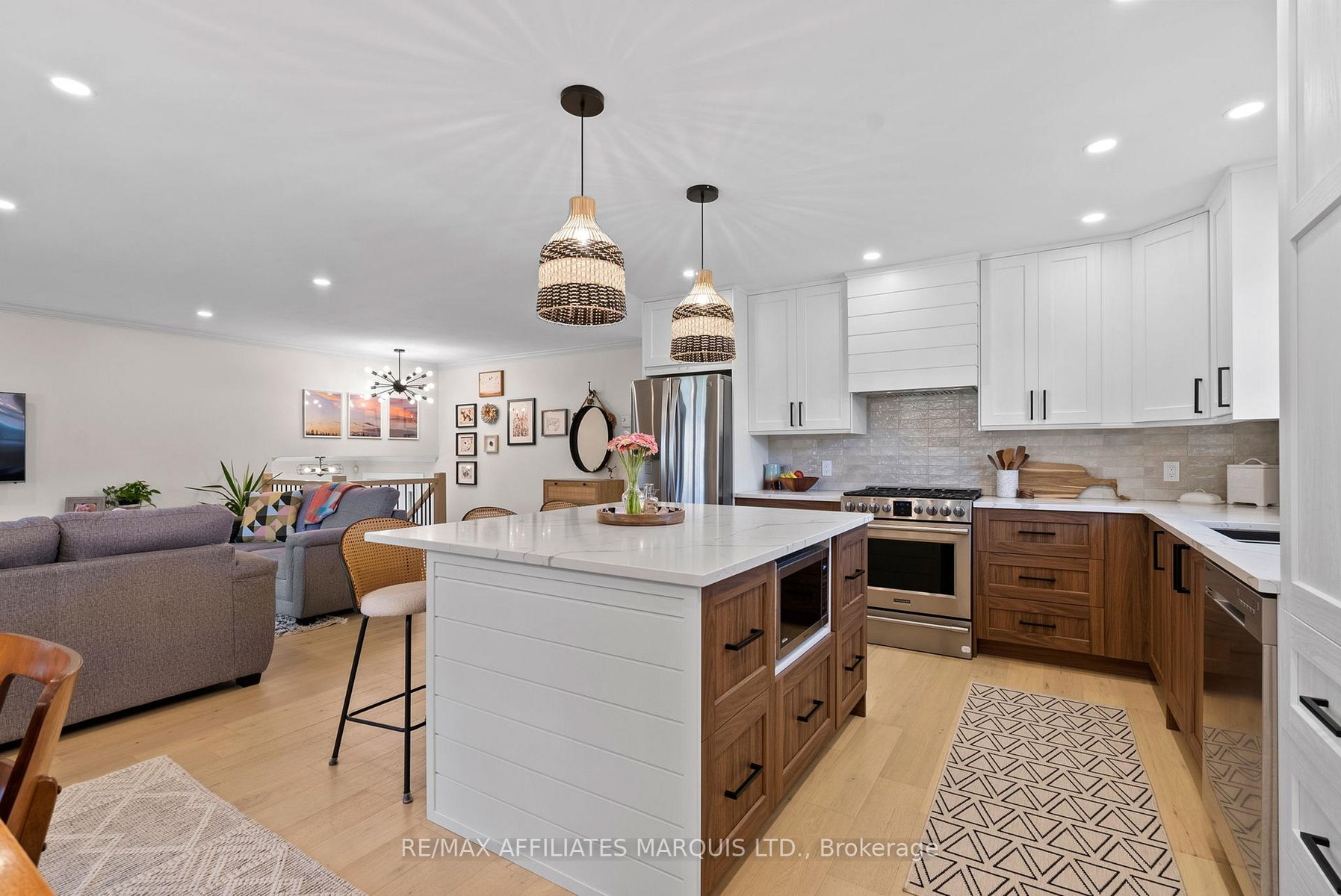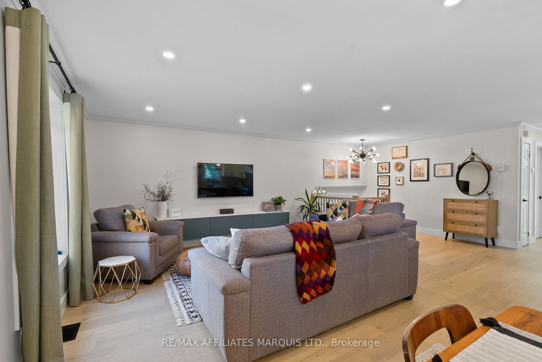 Welcome to this stylish and personality-filled 3+2 bedroom, 2 bathroom home offering approximately 1400 square feet of beautifully finished main floor living space plus a fully finished basement. From the moment you step inside, you'll notice the light-toned hardwood flooring that flows seamlessly throughout the main level, creating an inviting and airy feel. The recently renovated custom kitchen is truly a showpiece, featuring a large island with extra storage, quartz countertops, a stunning glass tile backsplash, boho lighting and thoughtfully designed cabinetry with modern conveniences. The open-concept layout connects the kitchen to both the living room and the bright three-season sunroom, perfect for morning coffee or quiet evenings overlooking the backyard. The dining area exudes modern charm, complete with a striking feature wall and space for a cozy coffee bar setup. Each of the three main-floor bedrooms is generously sized and tastefully decorated with accent walls that add warmth and character. The main bathroom is a spa-like retreat, offering a freestanding soaker tub and a walk-in glass shower. Downstairs, the fully finished basement extends your living space with a spacious rec room featuring a gas fireplace - ideal for movie nights or family gatherings - along with two additional bedrooms and an updated second bathroom. Outside, enjoy the large backyard with a hot tub, fire pit, and plenty of space for entertaining or relaxing under the stars. The attached double garage adds convenience, and the home is located in an excellent family-oriented neighborhood just minutes from Cornwall - the perfect blend of modern comfort and small-town charm. 48 hour irrevocable on all offers.