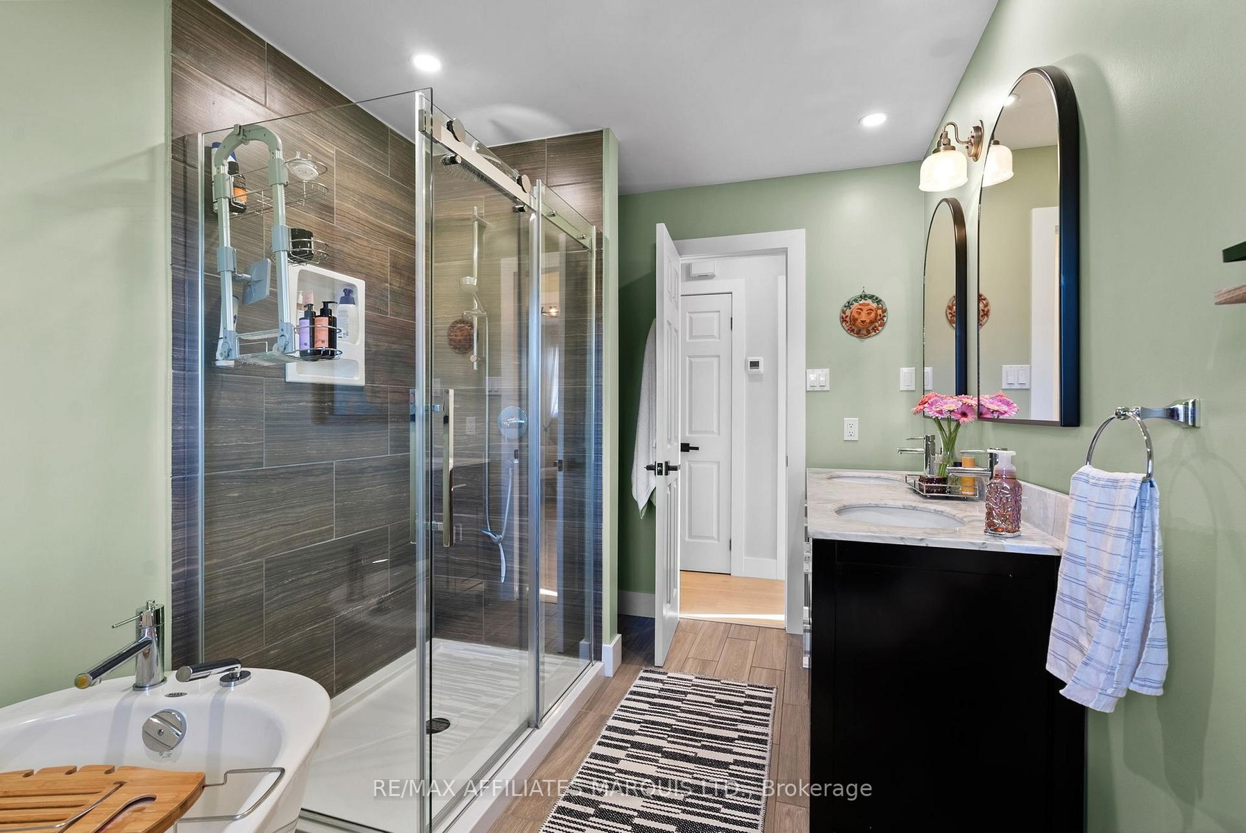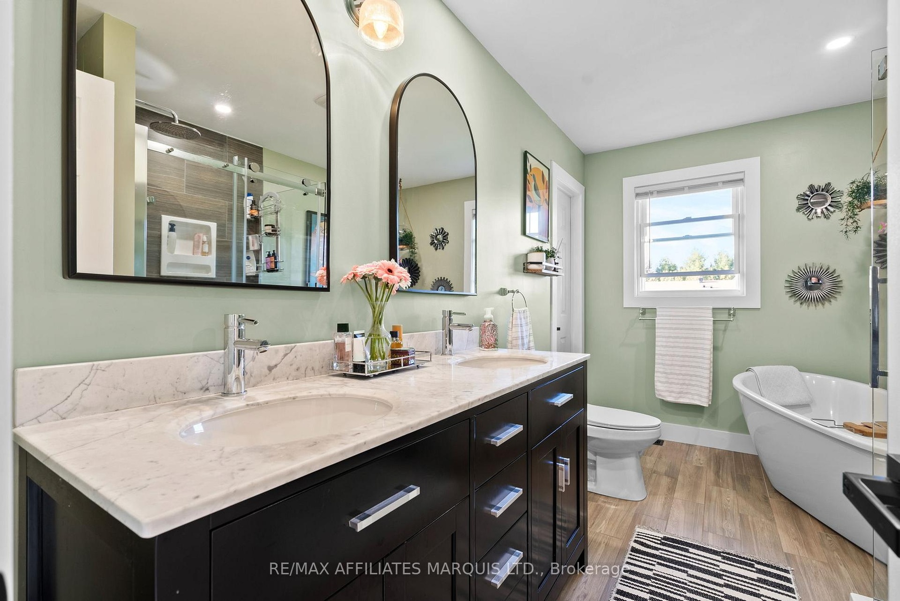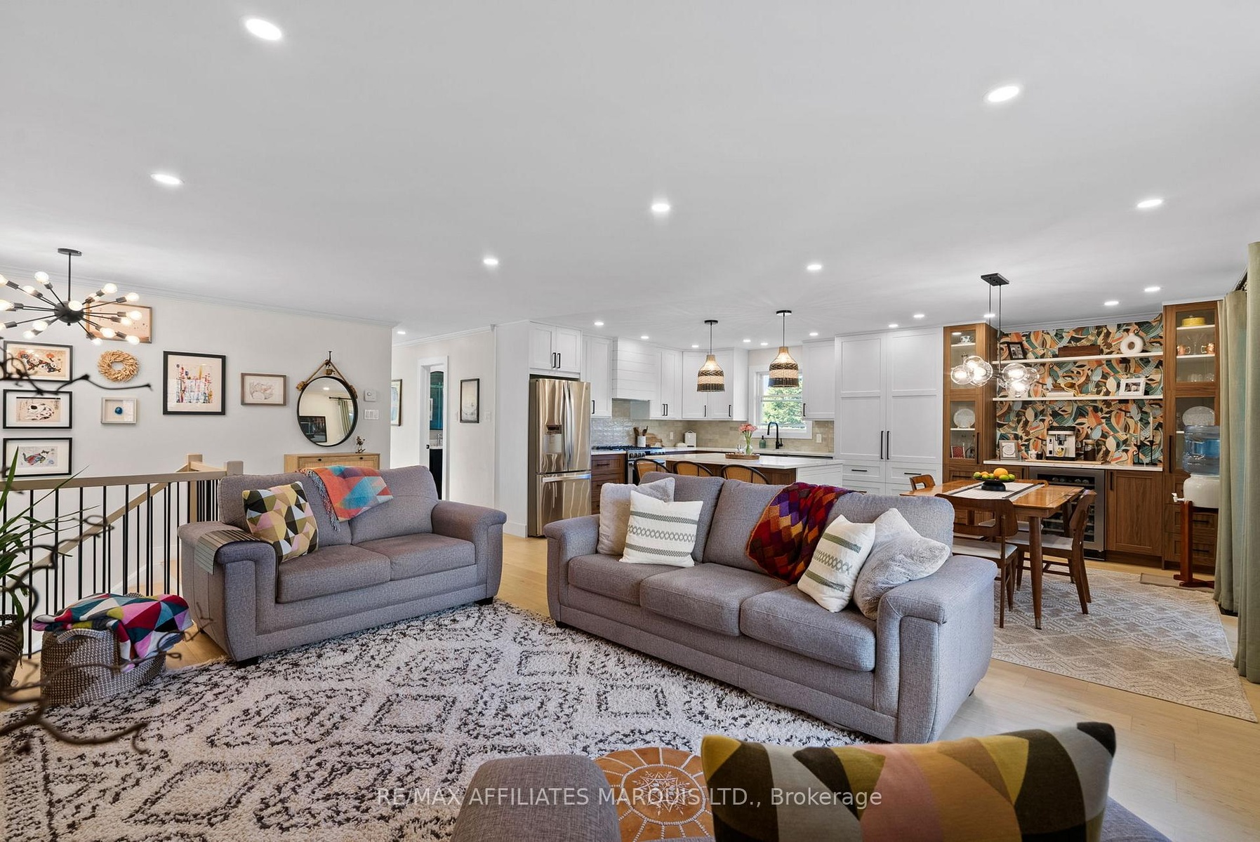 Welcome to this stylish and personality-filled 3+2 bedroom, 2 bathroom home offering approximately 1400 square feet of beautifully finished main floor living space plus a fully finished basement. From the moment you step inside, you'll notice the light-toned hardwood flooring that flows seamlessly throughout the main level, creating an inviting and airy feel. The recently renovated custom kitchen is truly a showpiece, featuring a large island with extra storage, quartz countertops, a stunning glass tile backsplash, boho lighting and thoughtfully designed cabinetry with modern conveniences. The open-concept layout connects the kitchen to both the living room and the bright three-season sunroom, perfect for morning coffee or quiet evenings overlooking the backyard. The dining area exudes modern charm, complete with a striking feature wall and space for a cozy coffee bar setup. Each of the three main-floor bedrooms is generously sized and tastefully decorated with accent walls that add warmth and character. The main bathroom is a spa-like retreat, offering a freestanding soaker tub and a walk-in glass shower. Downstairs, the fully finished basement extends your living space with a spacious rec room featuring a gas fireplace - ideal for movie nights or family gatherings - along with two additional bedrooms and an updated second bathroom. Outside, enjoy the large backyard with a hot tub, fire pit, and plenty of space for entertaining or relaxing under the stars. The attached double garage adds convenience, and the home is located in an excellent family-oriented neighborhood just minutes from Cornwall - the perfect blend of modern comfort and small-town charm. 48 hour irrevocable on all offers.