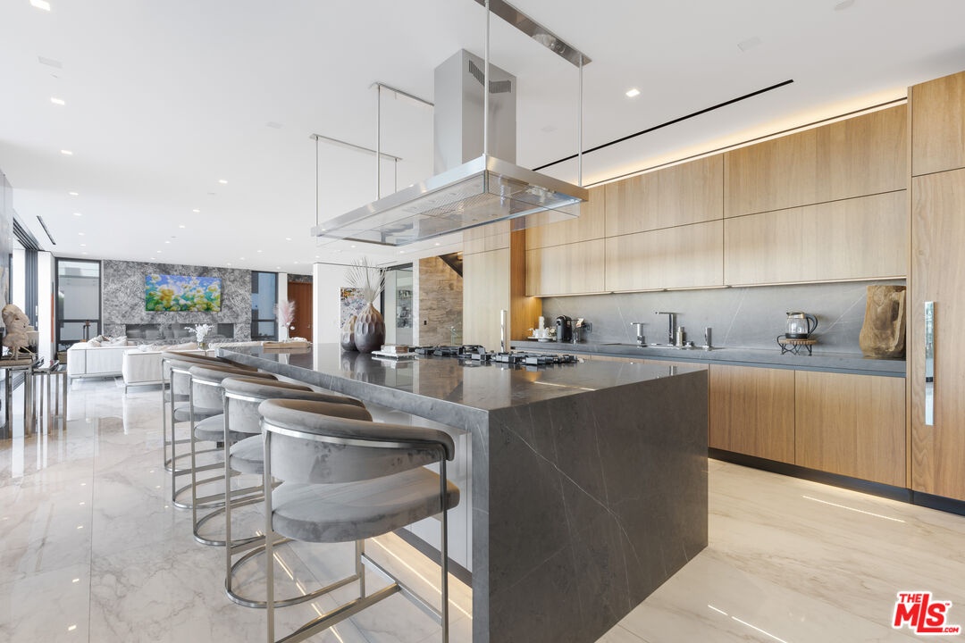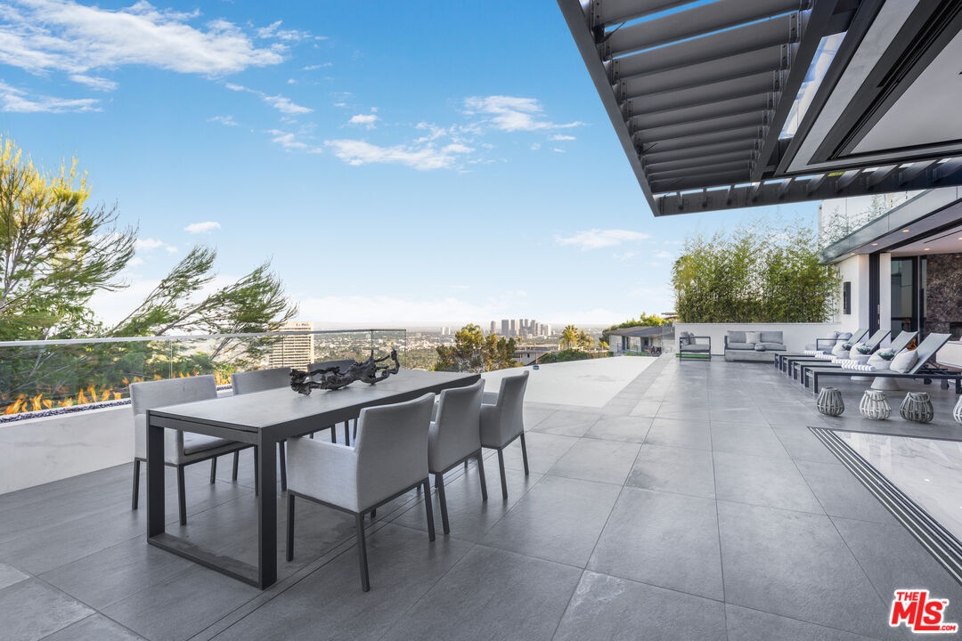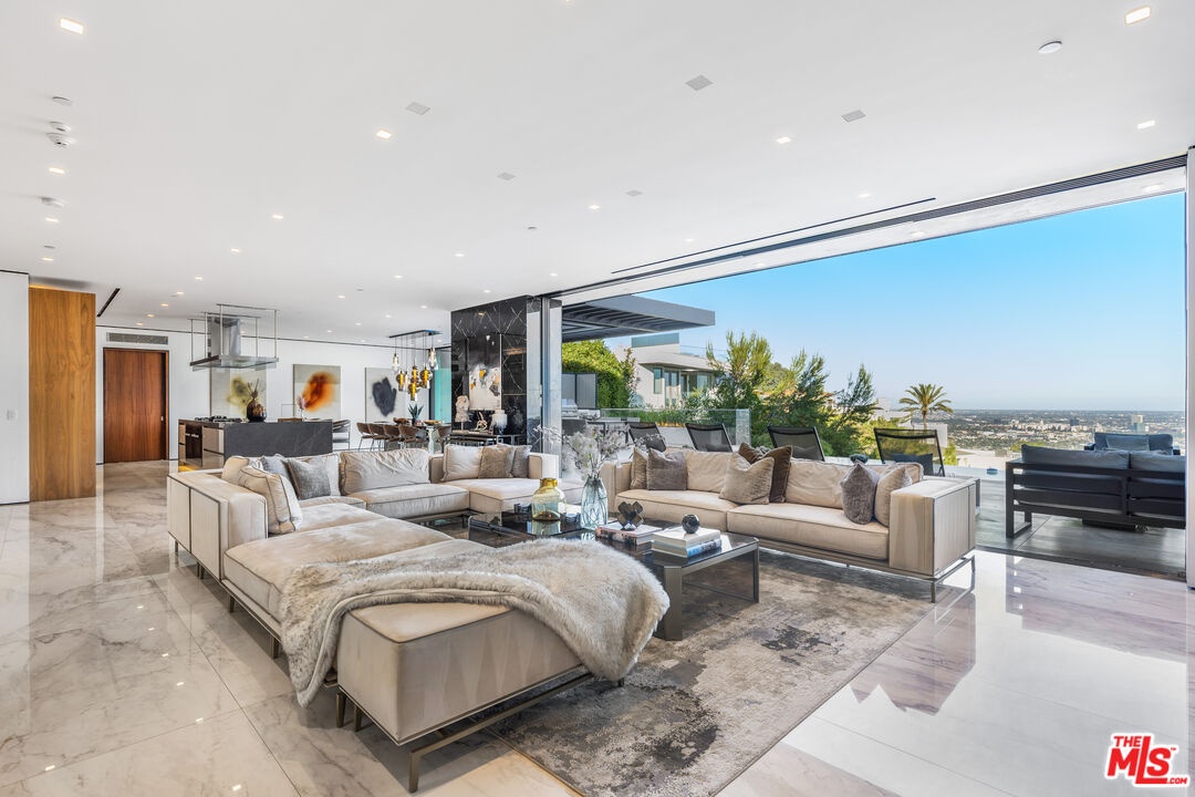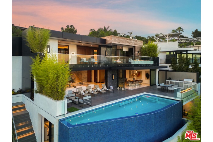 A rare architectural triumph, this estate exudes timeless sophistication and contemporary grace at every turn. From the moment you enter through the grand entry, you are immersed in a private realm of design excellence and tranquil opulence. Perfectly positioned in the prestigious Bird Streets of the Hollywood Hills, this modern showpiece showcases sweeping city and ocean views. Conceived by renowned architect Ameen Ayoub, the residence harmonizes bold modern architecture with inviting warmth achieving a seamless fusion of innovation and livability. Every element reflects masterful attention to detail. The gourmet kitchen is equipped with Miele appliances and refined bespoke finishes. Entertain in style beside the dramatic aquarium bar and infinity-edge pool, or display your collection in the striking honeycomb quartz wine gallery. Additional amenities include a sound-isolated theater, showcase garage, and a fully equipped wellness studio with sauna and steam shower. The primary suite offers an atmosphere of calm sophistication, featuring a statement fireplace, private terrace, dual spa-inspired baths, and a couture-quality dressing room. More than a residence, this property defines a lifestyle an expression of modern artistry, elevated comfort, and the quintessential Los Angeles experience.