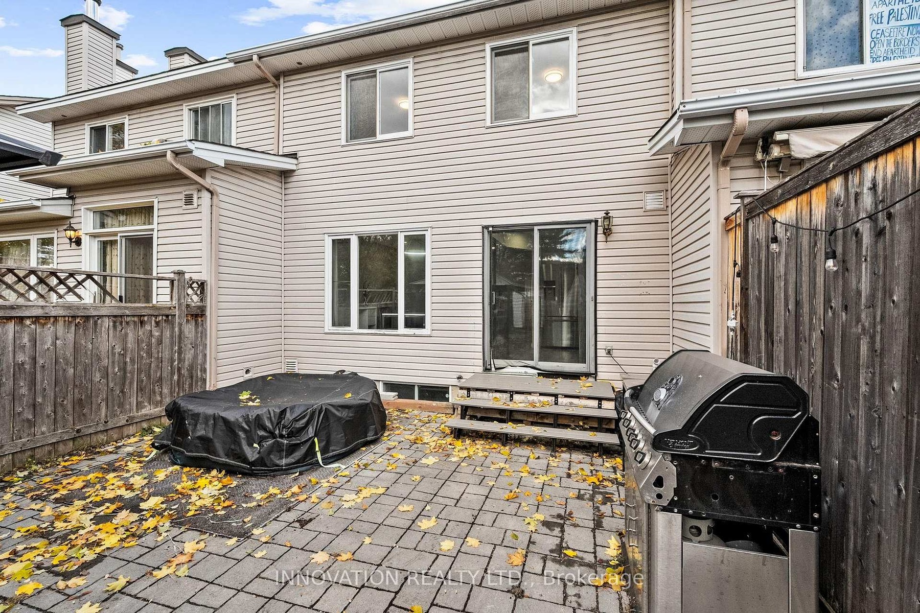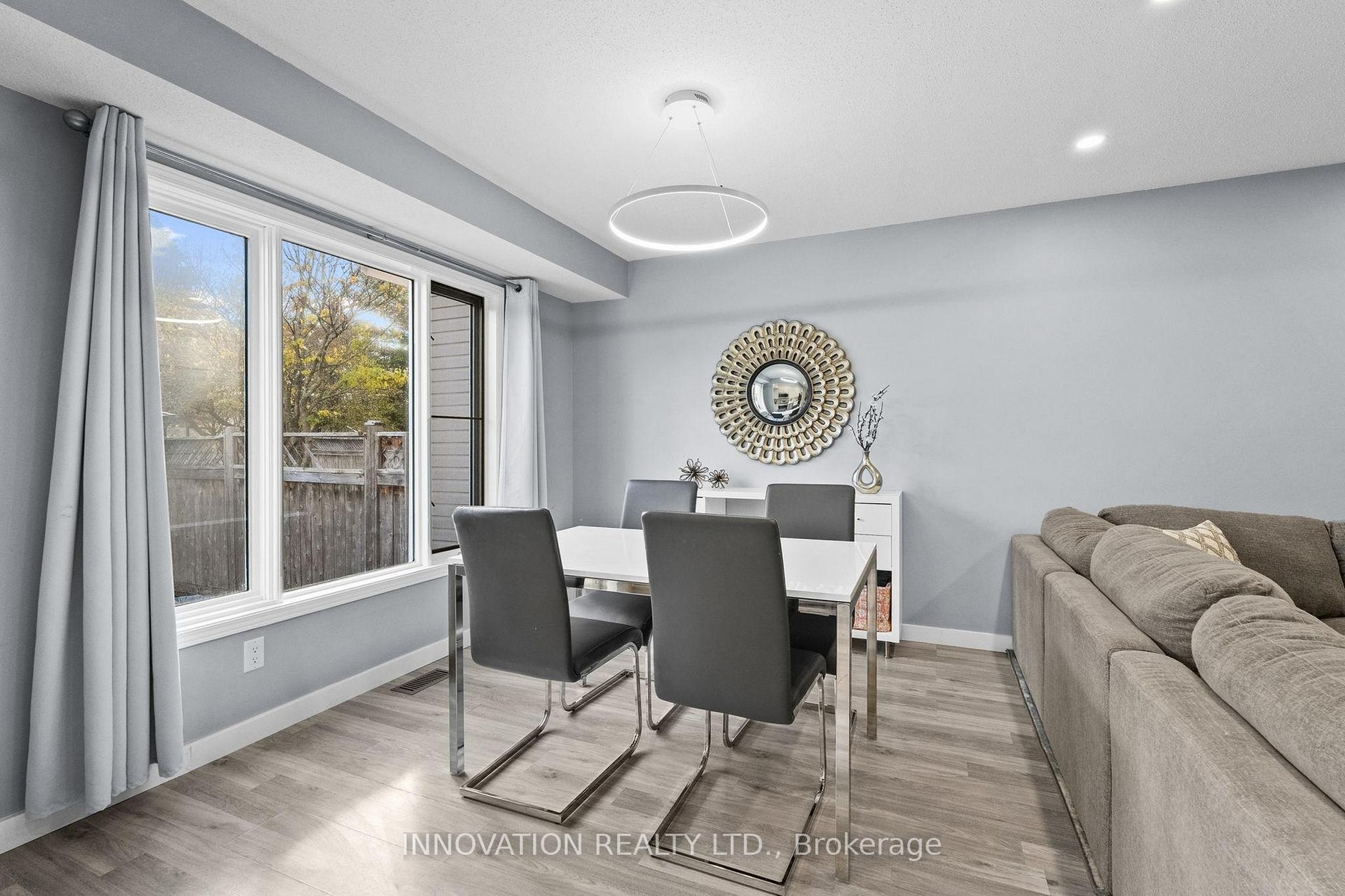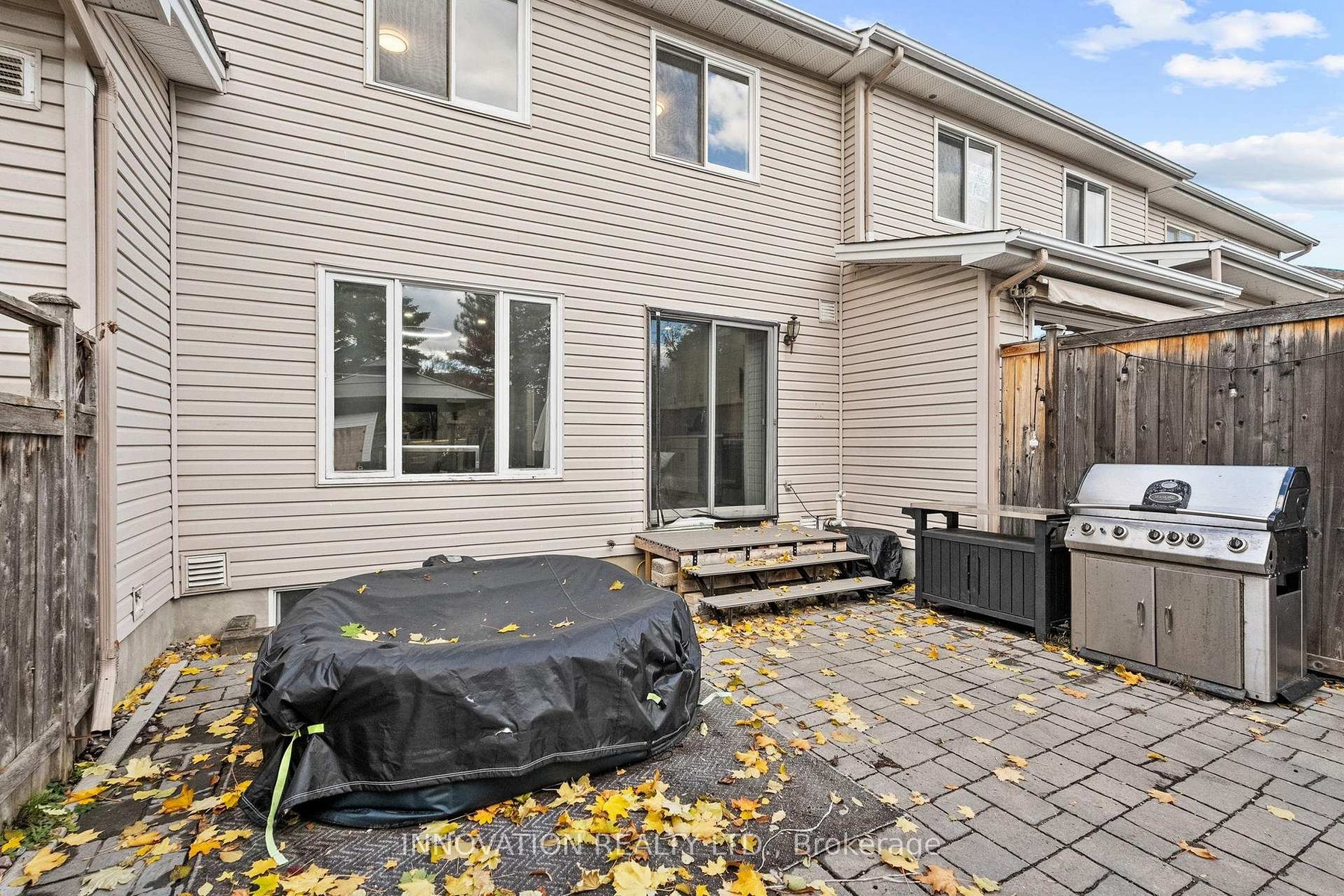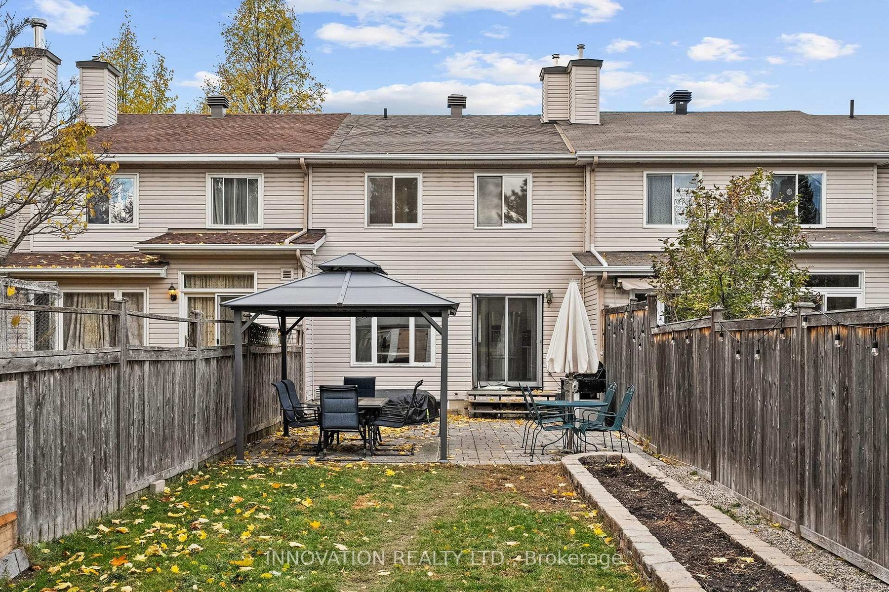 OPEN HOUSE SUNDAY NOVEMBER 16, 2-4PM. Updated three bedroom townhome backing on McKinley Park in Kanata North, close to the Kanata Technology Research Park, and walking distance to shopping, restaurants! Updated kitchen with stainless steel appliances. Updated powder room and 4-piece cheater bathroom, laminate flooring throughout. Fully fenced yard. Just move in! Open concept Living/Dining room with Large picture window to gorgeous extra deep, fully fenced rear yard with large patio, gazebo and storage shed. Head upstairs to three bedrooms with an updated four piece bathroom. Primary bedroom with walk-in closet and reading nook. Finished basement features vinyl flooring and secondary storage room. Central vac is roughed in. Furnace and tankless hot water (2020), rear patio (2023), kitchen reno (2020)