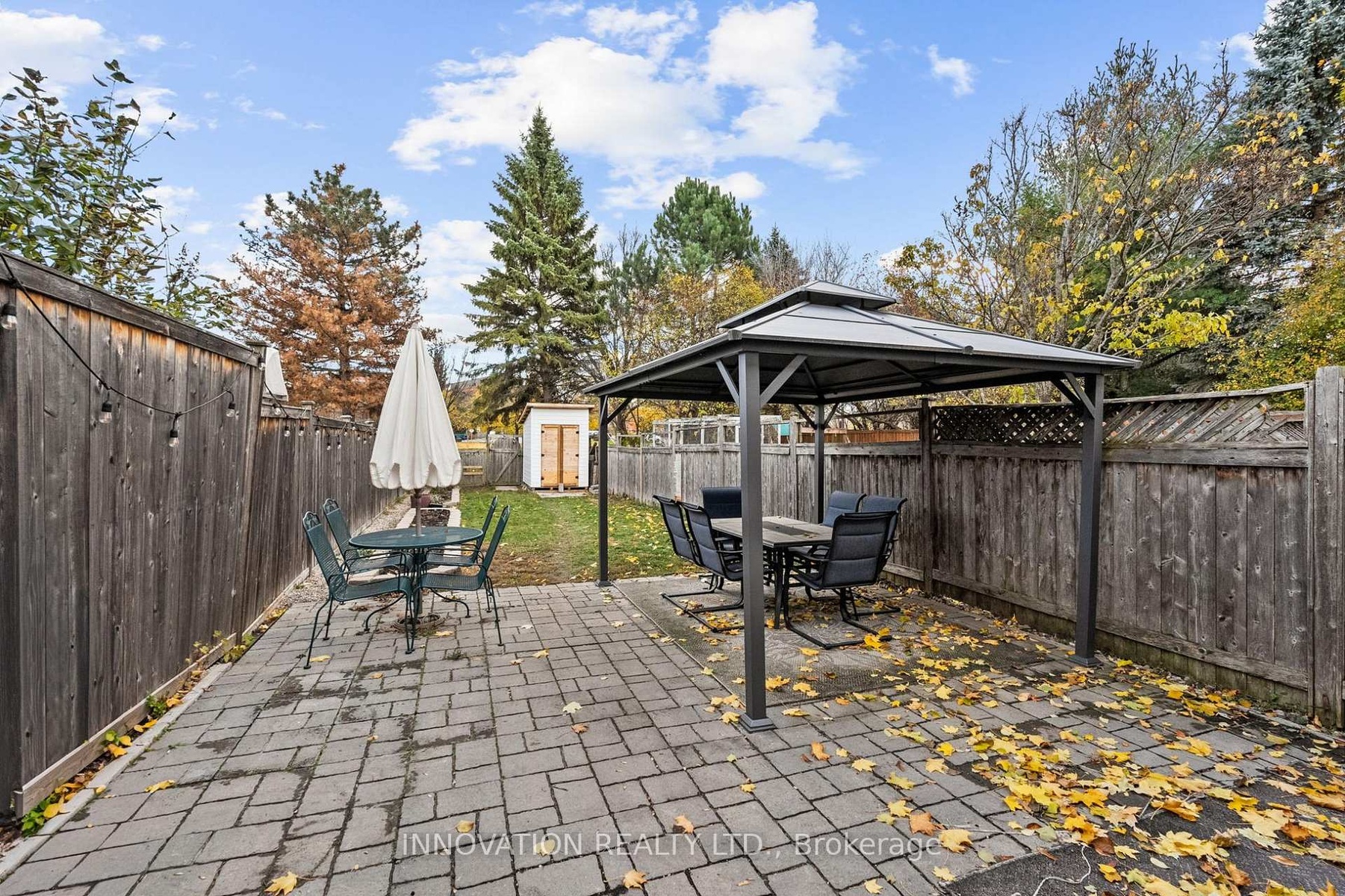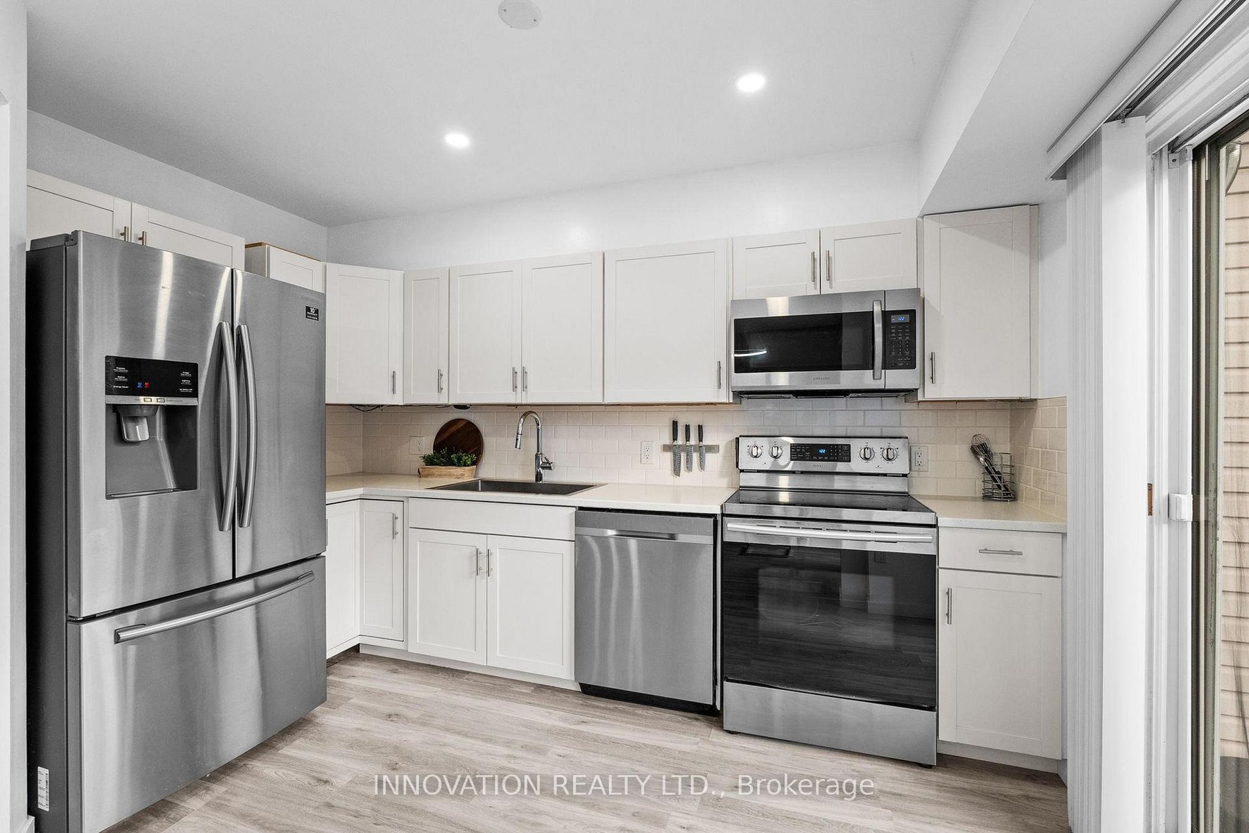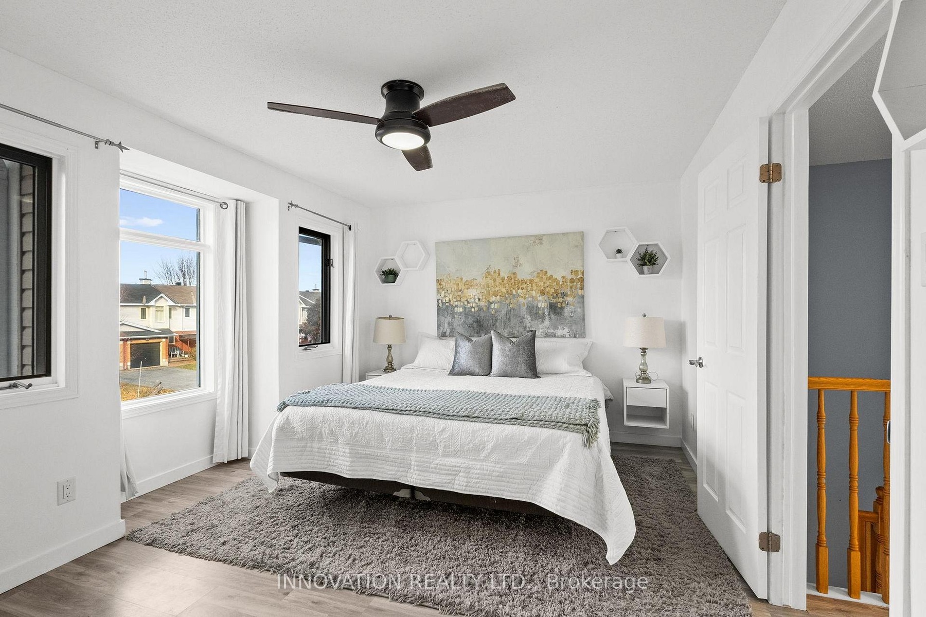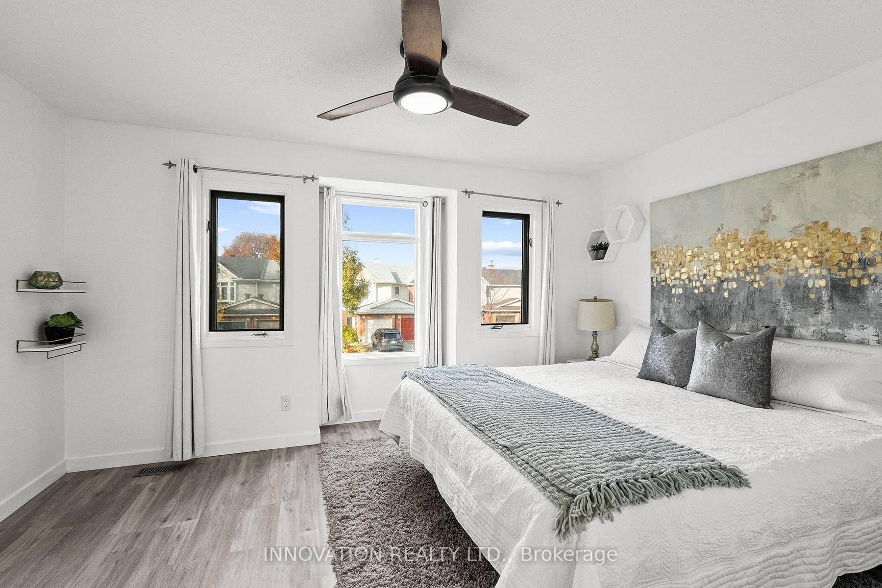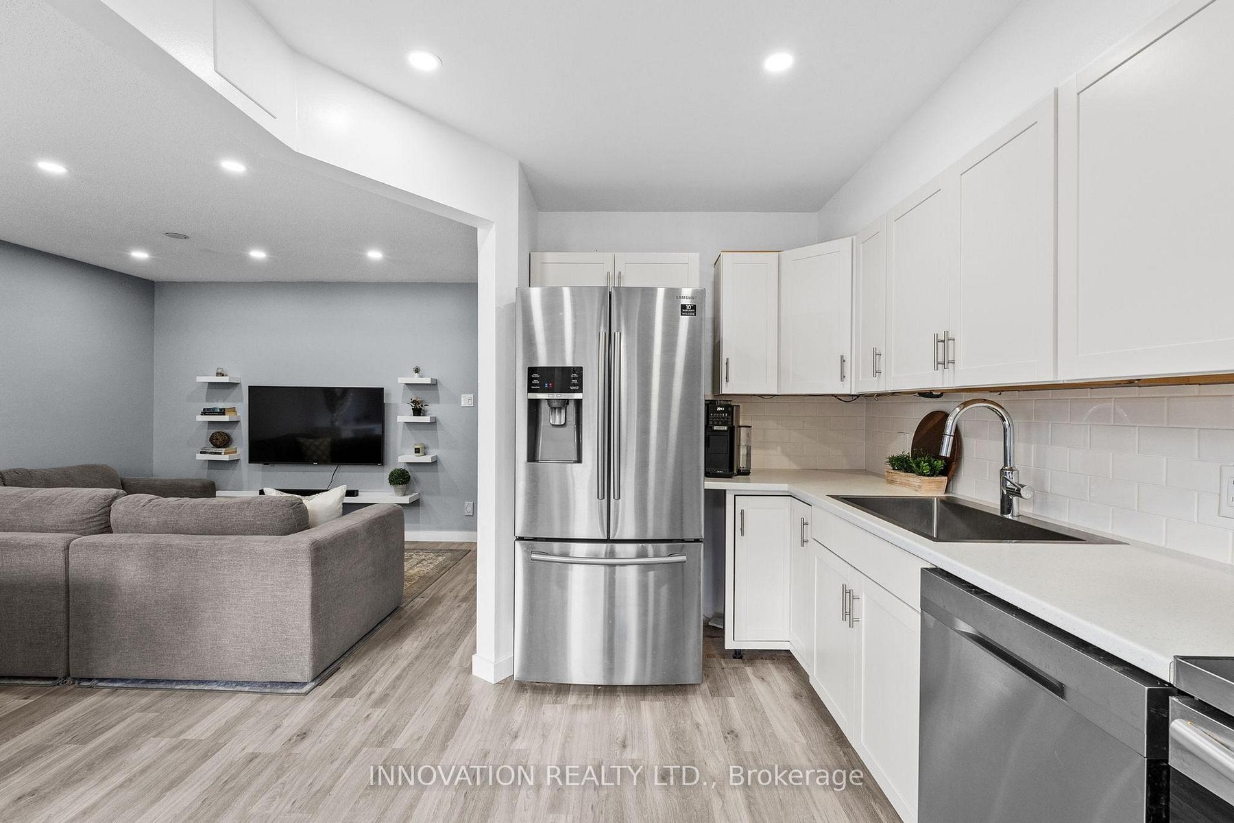 OPEN HOUSE SUNDAY NOVEMBER 16, 2-4PM. Updated three bedroom townhome backing on McKinley Park in Kanata North, close to the Kanata Technology Research Park, and walking distance to shopping, restaurants! Updated kitchen with stainless steel appliances. Updated powder room and 4-piece cheater bathroom, laminate flooring throughout. Fully fenced yard. Just move in! Open concept Living/Dining room with Large picture window to gorgeous extra deep, fully fenced rear yard with large patio, gazebo and storage shed. Head upstairs to three bedrooms with an updated four piece bathroom. Primary bedroom with walk-in closet and reading nook. Finished basement features vinyl flooring and secondary storage room. Central vac is roughed in. Furnace and tankless hot water (2020), rear patio (2023), kitchen reno (2020)