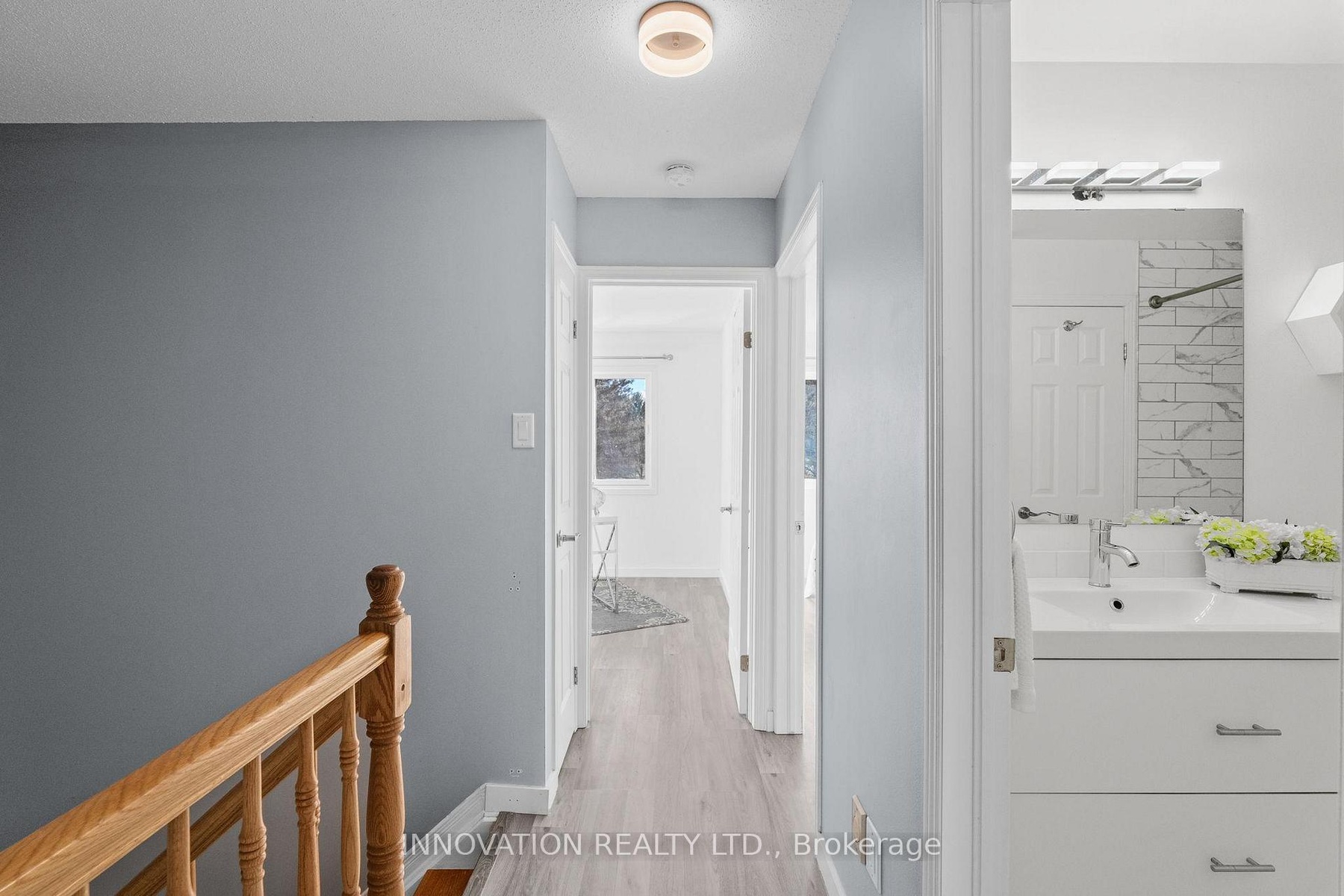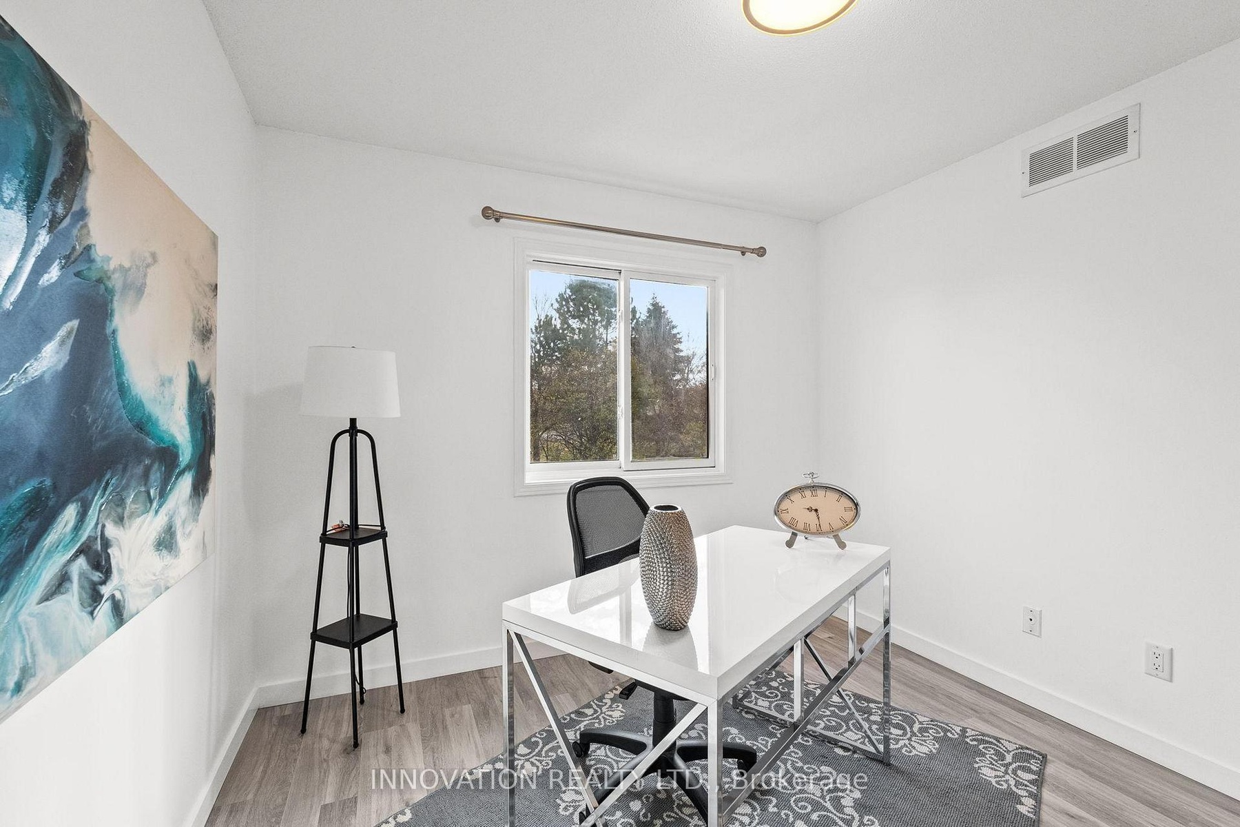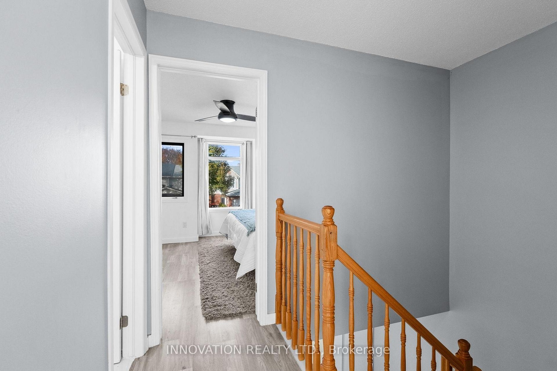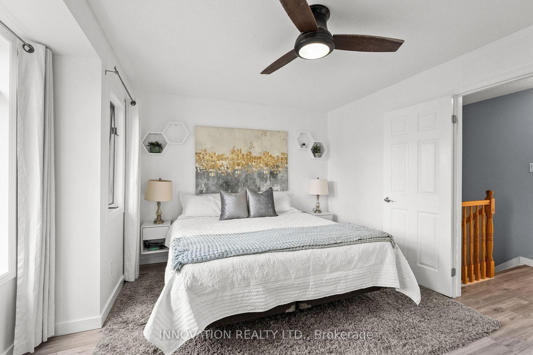 OPEN HOUSE SUNDAY NOVEMBER 16, 2-4PM. Updated three bedroom townhome backing on McKinley Park in Kanata North, close to the Kanata Technology Research Park, and walking distance to shopping, restaurants! Updated kitchen with stainless steel appliances. Updated powder room and 4-piece cheater bathroom, laminate flooring throughout. Fully fenced yard. Just move in! Open concept Living/Dining room with Large picture window to gorgeous extra deep, fully fenced rear yard with large patio, gazebo and storage shed. Head upstairs to three bedrooms with an updated four piece bathroom. Primary bedroom with walk-in closet and reading nook. Finished basement features vinyl flooring and secondary storage room. Central vac is roughed in. Furnace and tankless hot water (2020), rear patio (2023), kitchen reno (2020)