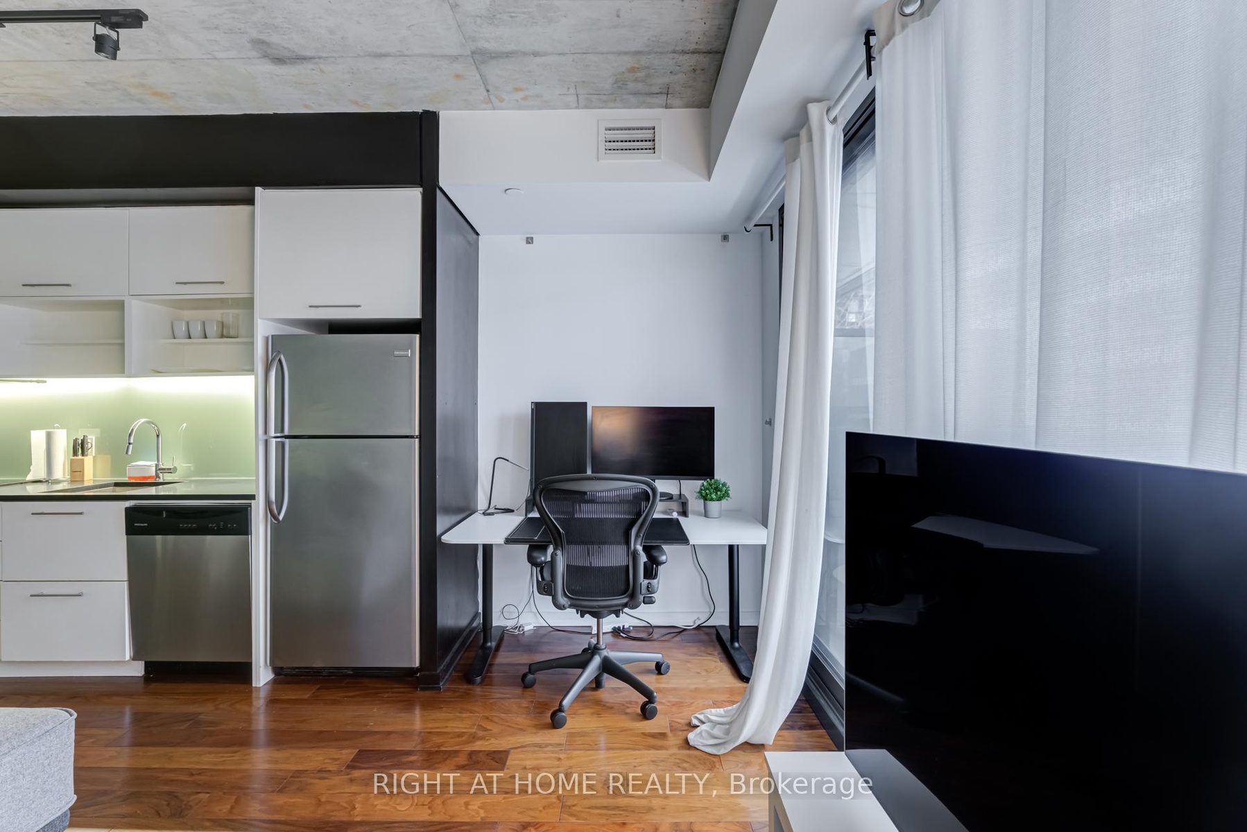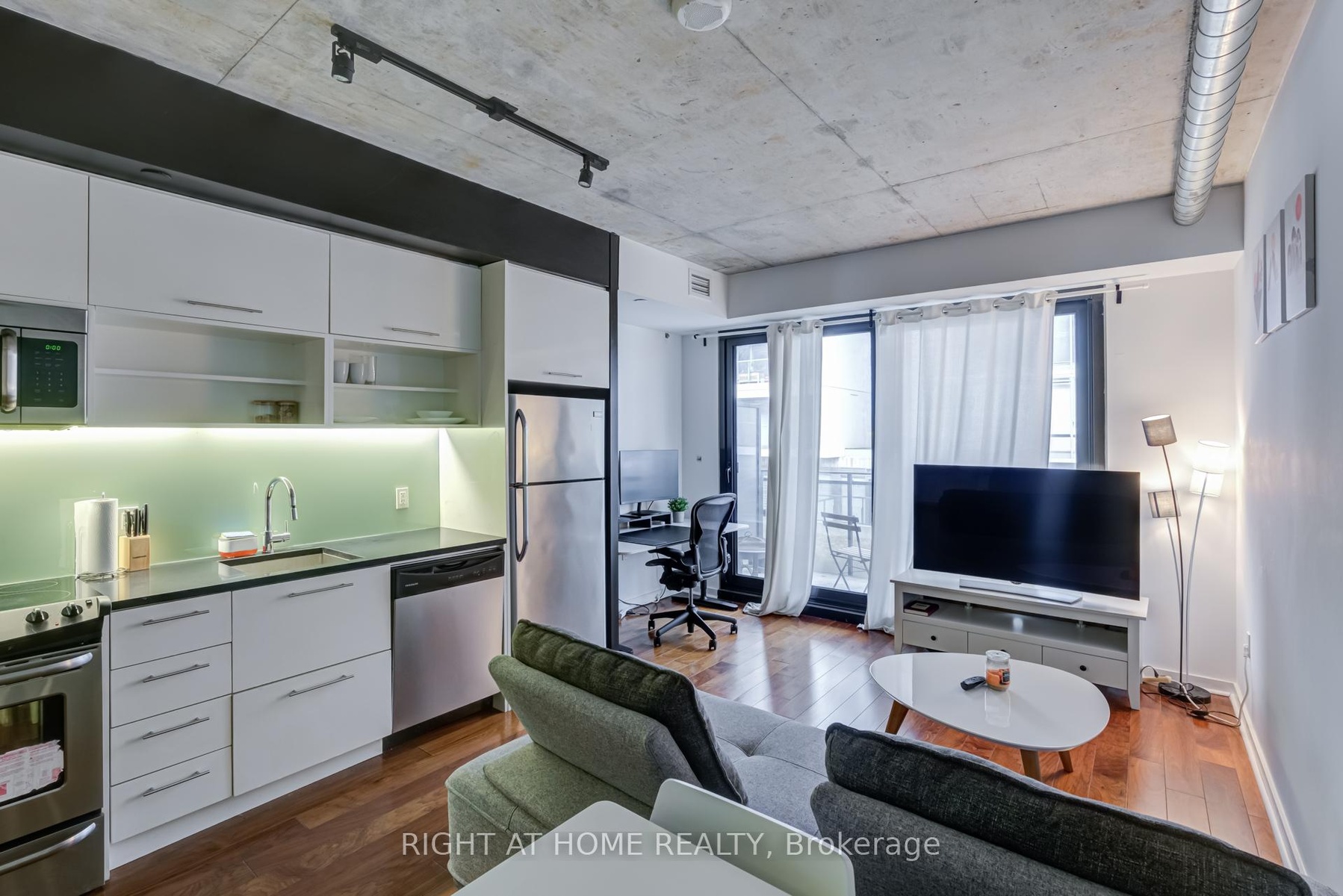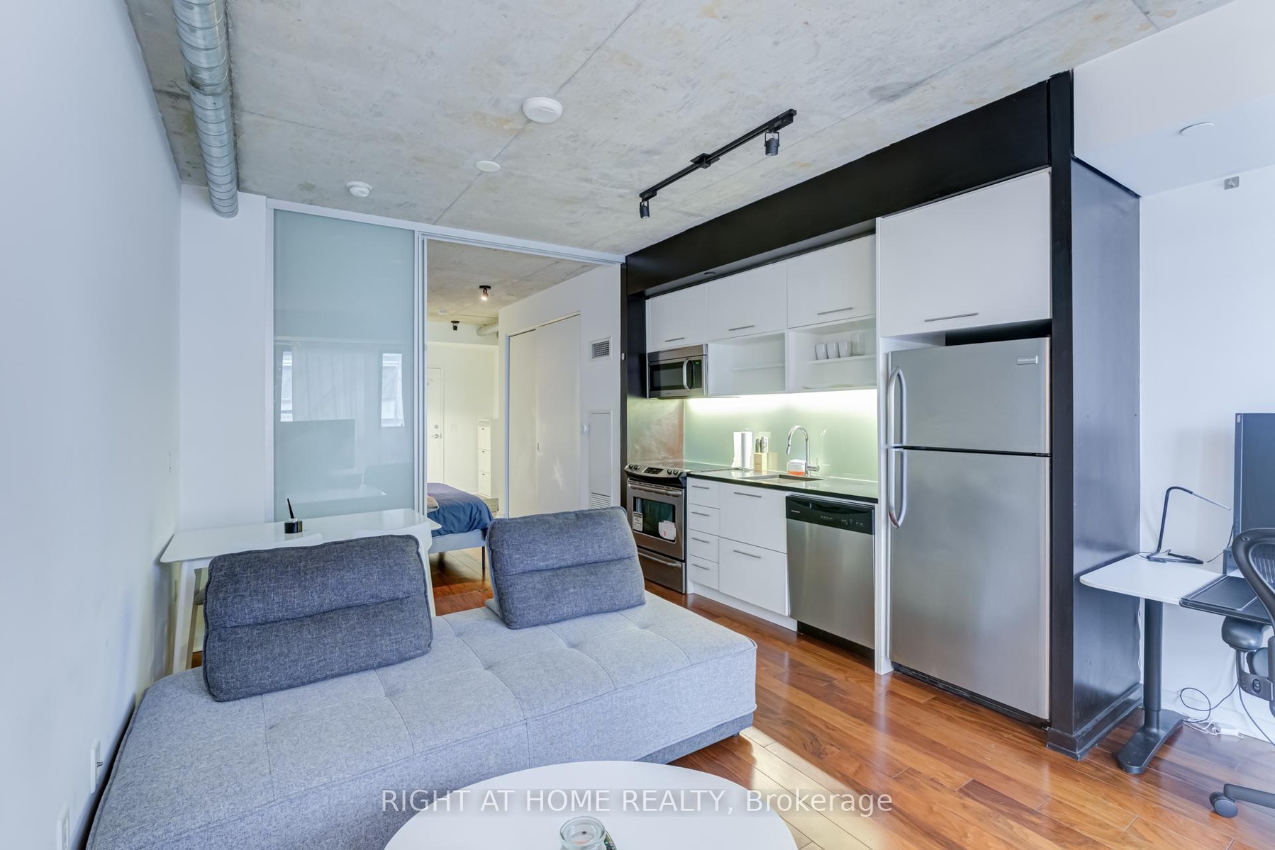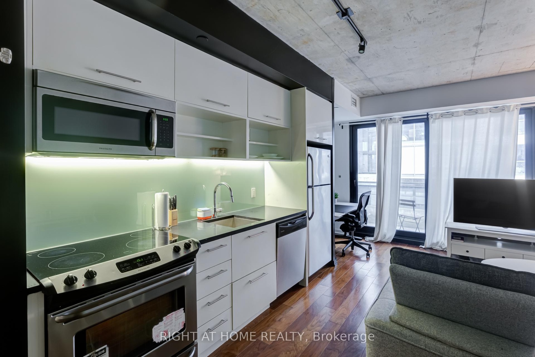 Welcome to 47 Lower River Street, a stylish and modern 1-bedroom condo in the heart of Corktown! This unit offers a smartly designed open-concept layout with floor-to-ceiling windows, flooding the space with natural light. A beautiful view overlooking the outdoor pool, creating a resort-like atmosphere especially in the summer!Located just a short walk from the Distillery District, St. Lawrence Market, and the Riverside neighborhood, this condo is perfect for urban dwellers. With an impressive Walk Score of 93, Transit Score of 99, and Bike Score of 100, you have unbeatable access to transit, parks, cafes, and waterfront trails. The sleek European-style kitchen features stainless steel appliances, quartz countertops, and ample storage, while the bedroom offers a frosted sliding door for privacy and a built-in closet. Residents enjoy top-tier amenities, including a fully equipped gym, outdoor pool, rooftop terrace with BBQs, concierge service, and visitor parking.Perfect for young professional,, this is a rare opportunity to live in a beautifully designed condo with a stunning pool view in one of Toronto's most sought-after locations. **EXTRAS** Frigidaire S/S Fridge, Stove, Dishwasher, Washer/Dryer, ELFs, All Window Coverings. Available for short term and month to month