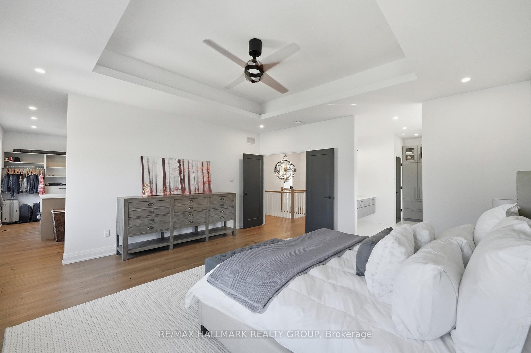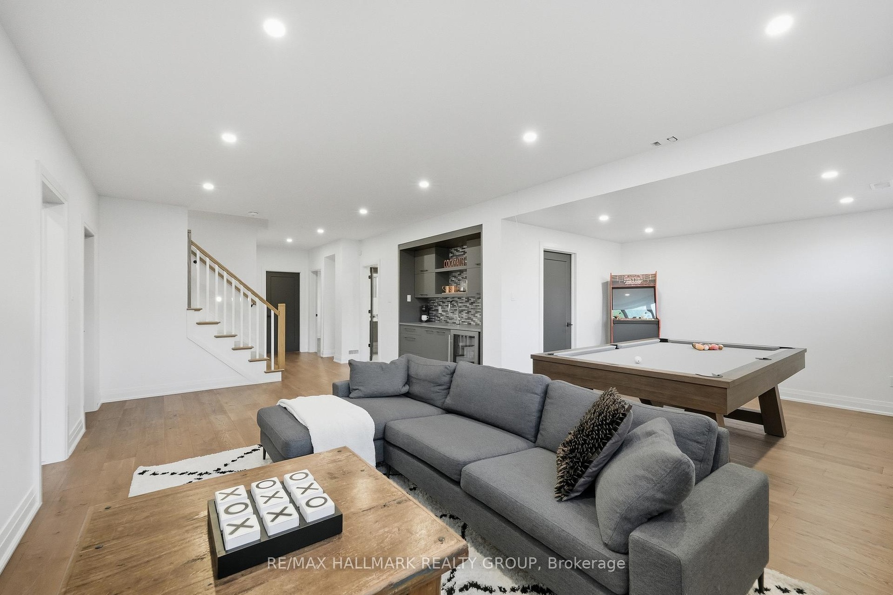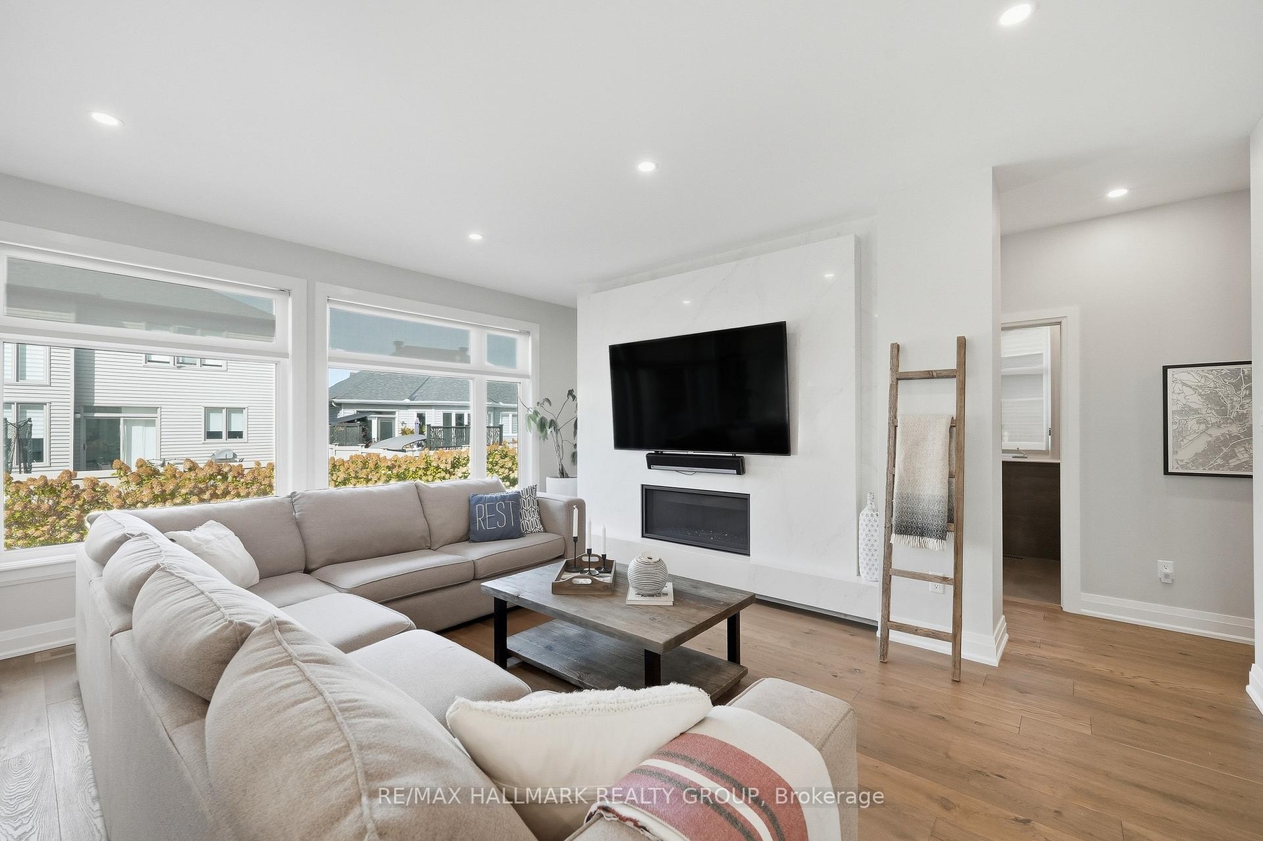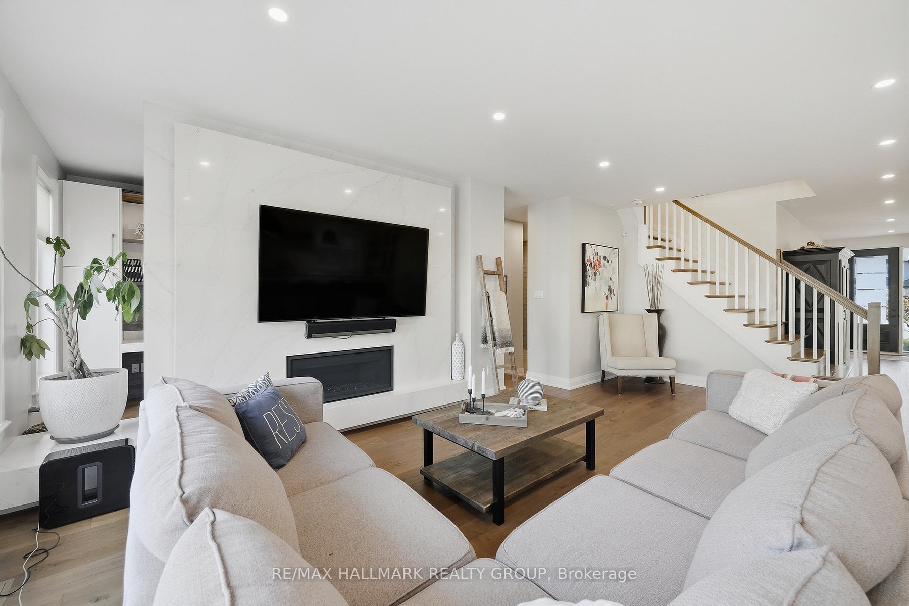 **OPEN HOUSE SUNDAY, NOVEMBER 9, BETWEEN 2-4PM** This stunning 5 bedroom home blends architectural sophistication with modern comfort, set in one of Orleans' most prestigious communities of Trails Edge. Its striking stone-and-brick exterior, modern landscaping and triple-car garage make an unforgettable first impression. Step outside to your backyard oasis - an entertainer's paradise featuring an inground pool, sleek stone patio, and a rustic-style covered pavilion with exposed beams, built-in gas BBQ, gas fireplace, TV area, and ample space to dine or lounge in style. Professionally landscaped for elegance and low maintenance, this outdoor retreat is perfect for summer gatherings and entertaining. Inside, rich hardwood flows throughout, complemented by pot lights and expansive windows that flood the home with natural light. The main level features a living room with gas fireplace, a private office with built-ins, and a chef's kitchen designed to impress - high-end appliances, gas stove, oversized island with seating for six, custom drawers, accent wood beams, and a convenient butler style service kitchen with two mini fridges, perfect for coffee, cocktails, or entertaining guests. Upstairs, the lavish primary suite boasts a boutique-style walk-in closet with island and a spa-inspired 5-piece ensuite with soaking tub, glass shower with rain head, and floating dual-sink vanity. Each secondary bedroom offers a walk-in closet and ensuite bath, while a generous laundry room with built-in storage completes the upper level. The finished lower level expands living space with a recreation area, wet bar, two bedrooms, a full bath, and abundant storage, creating an ideal retreat for family and guests. Combining modern elegance, sophisticated living, and exceptional walking access to top elementary and secondary schools, parks, and amenities, this home delivers the ultimate in comfort and style.