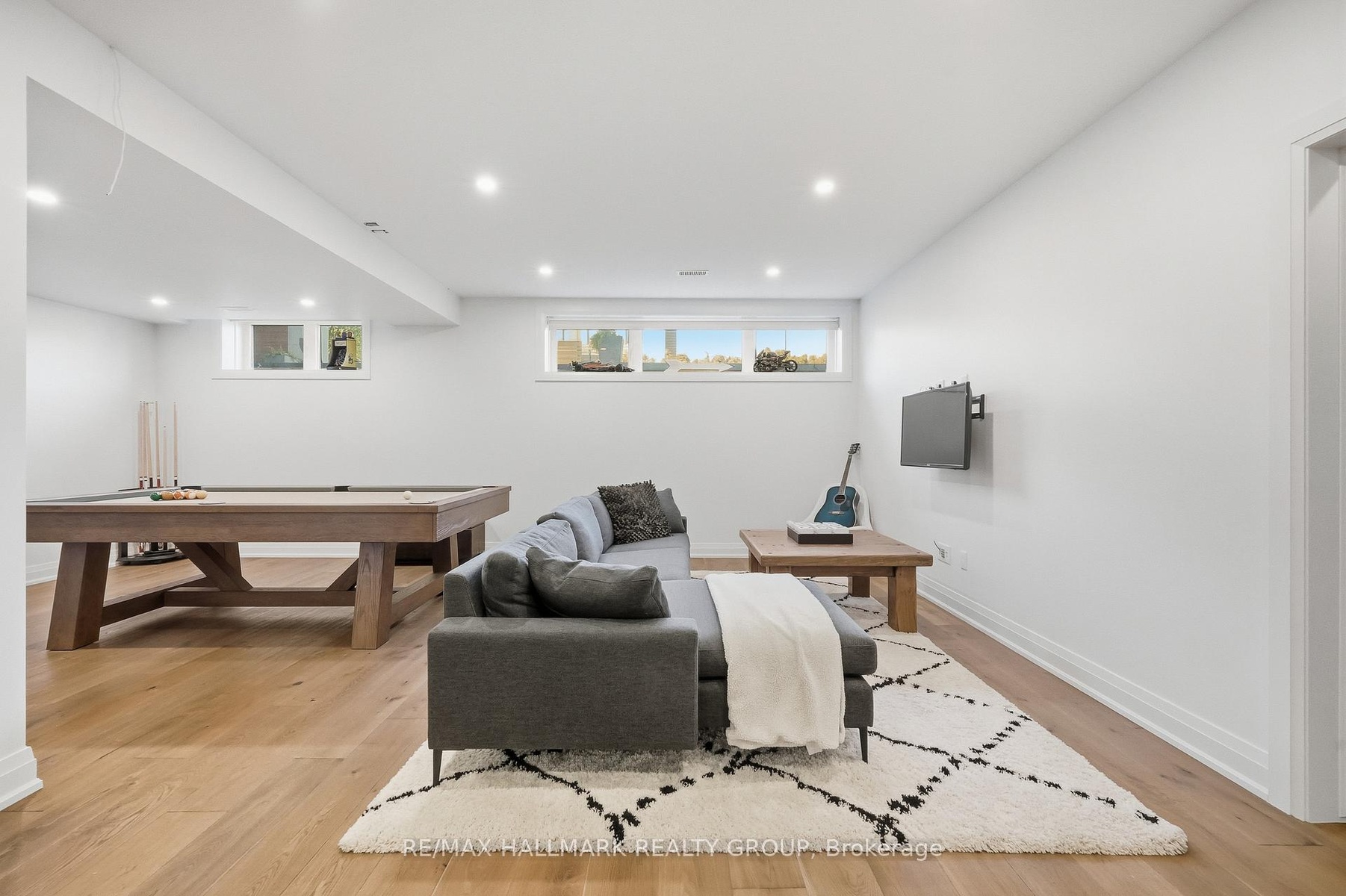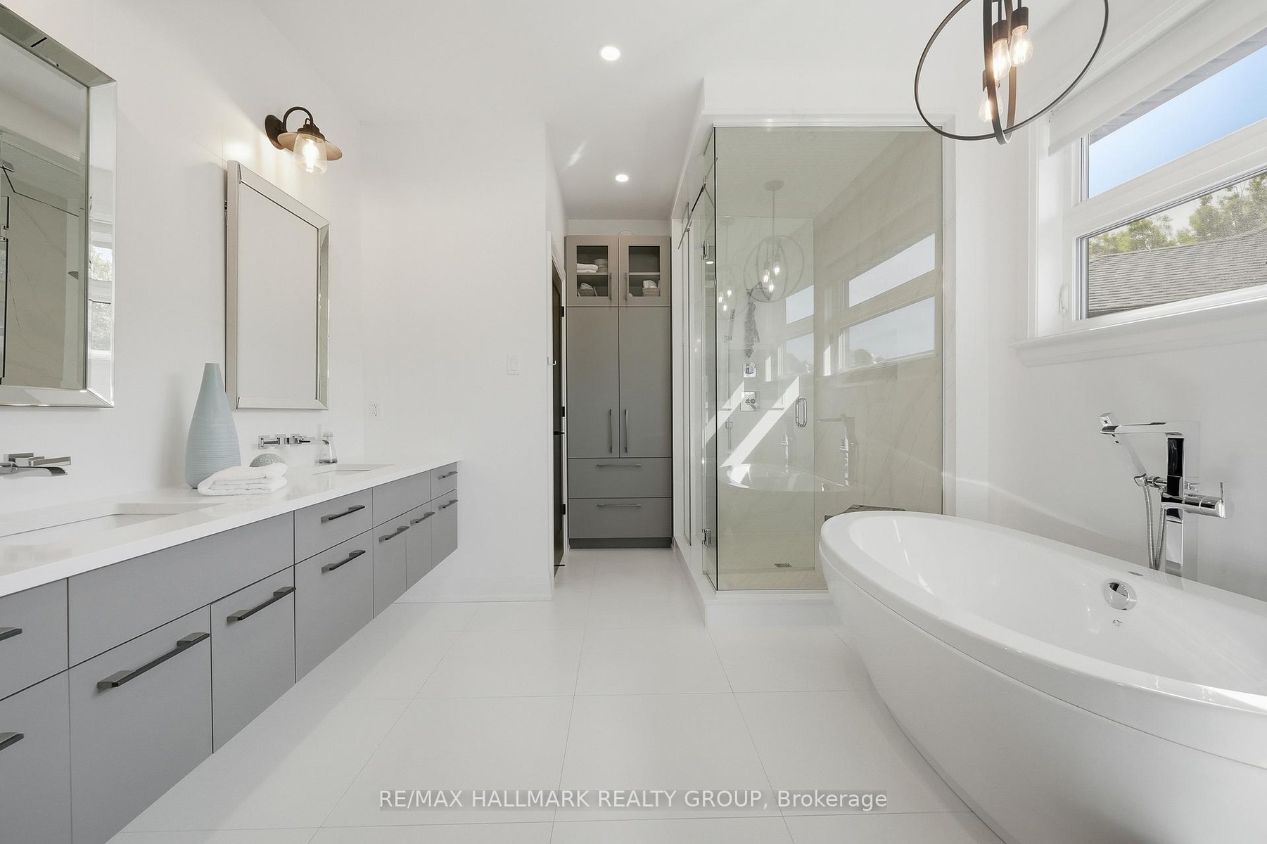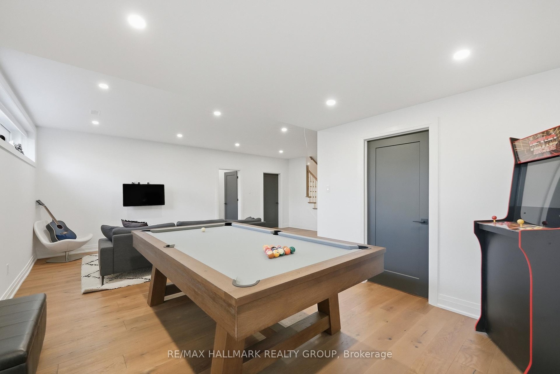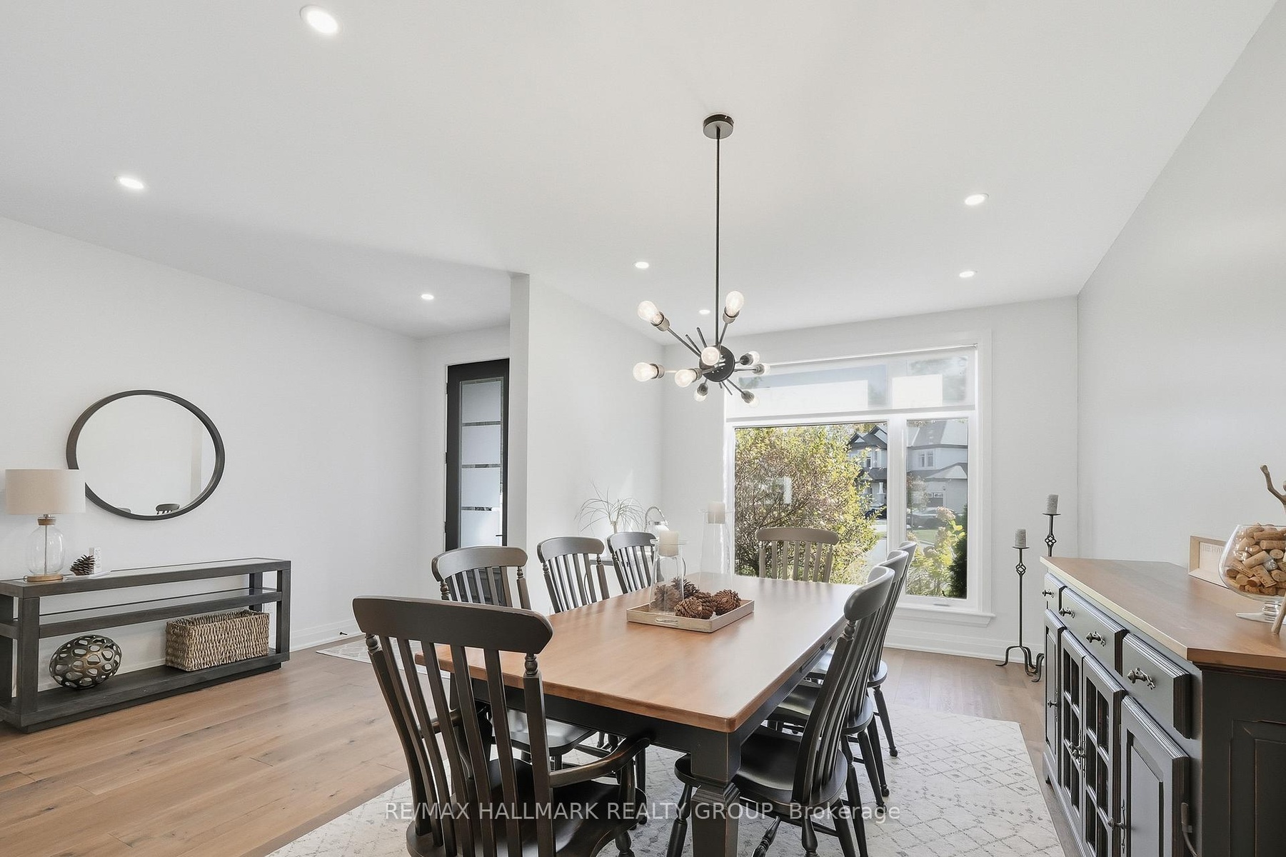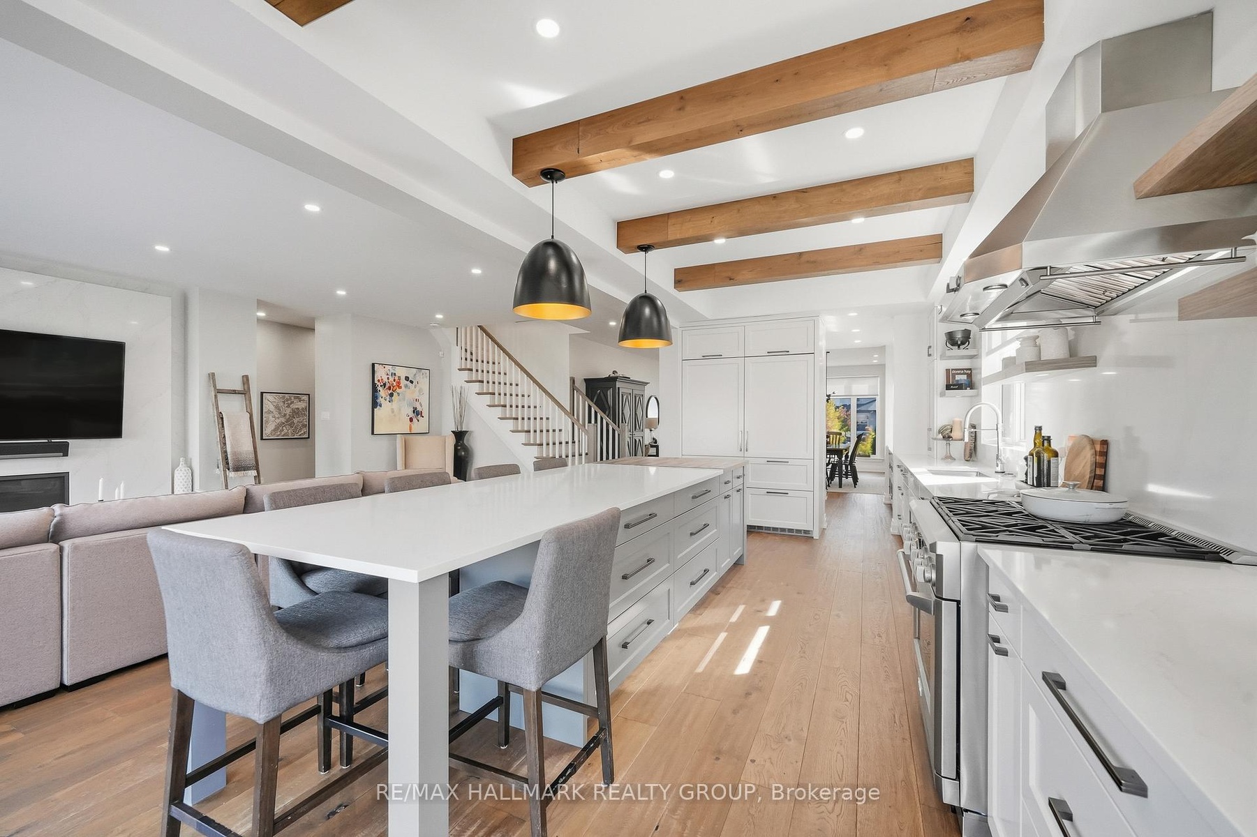 **OPEN HOUSE SUNDAY, NOVEMBER 9, BETWEEN 2-4PM** This stunning 5 bedroom home blends architectural sophistication with modern comfort, set in one of Orleans' most prestigious communities of Trails Edge. Its striking stone-and-brick exterior, modern landscaping and triple-car garage make an unforgettable first impression. Step outside to your backyard oasis - an entertainer's paradise featuring an inground pool, sleek stone patio, and a rustic-style covered pavilion with exposed beams, built-in gas BBQ, gas fireplace, TV area, and ample space to dine or lounge in style. Professionally landscaped for elegance and low maintenance, this outdoor retreat is perfect for summer gatherings and entertaining. Inside, rich hardwood flows throughout, complemented by pot lights and expansive windows that flood the home with natural light. The main level features a living room with gas fireplace, a private office with built-ins, and a chef's kitchen designed to impress - high-end appliances, gas stove, oversized island with seating for six, custom drawers, accent wood beams, and a convenient butler style service kitchen with two mini fridges, perfect for coffee, cocktails, or entertaining guests. Upstairs, the lavish primary suite boasts a boutique-style walk-in closet with island and a spa-inspired 5-piece ensuite with soaking tub, glass shower with rain head, and floating dual-sink vanity. Each secondary bedroom offers a walk-in closet and ensuite bath, while a generous laundry room with built-in storage completes the upper level. The finished lower level expands living space with a recreation area, wet bar, two bedrooms, a full bath, and abundant storage, creating an ideal retreat for family and guests. Combining modern elegance, sophisticated living, and exceptional walking access to top elementary and secondary schools, parks, and amenities, this home delivers the ultimate in comfort and style.