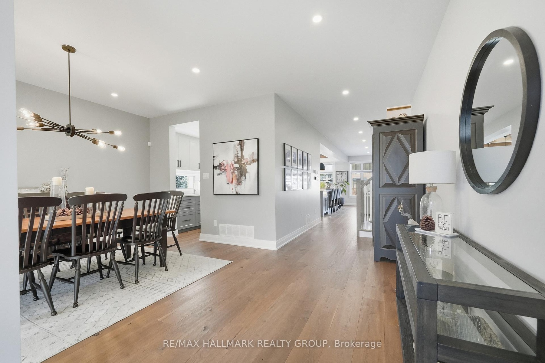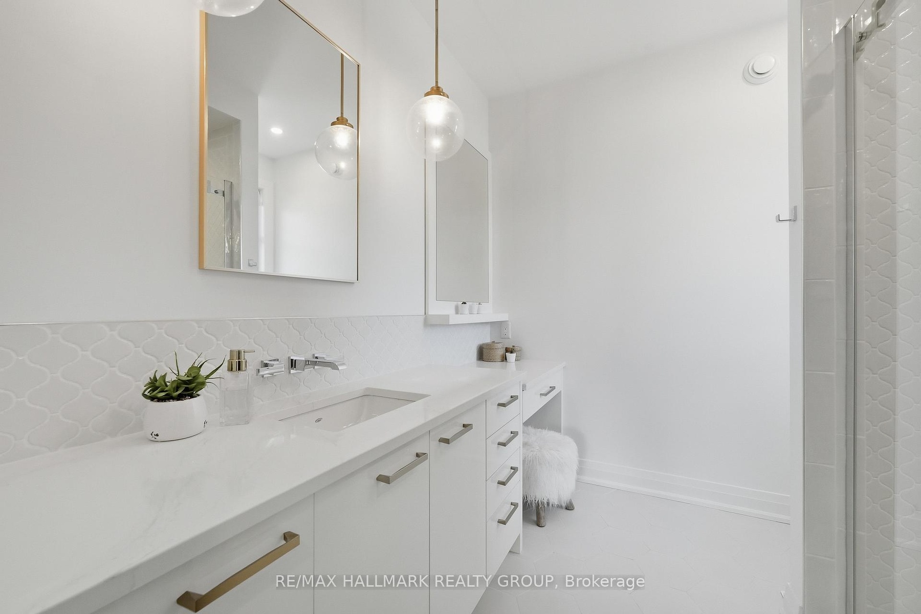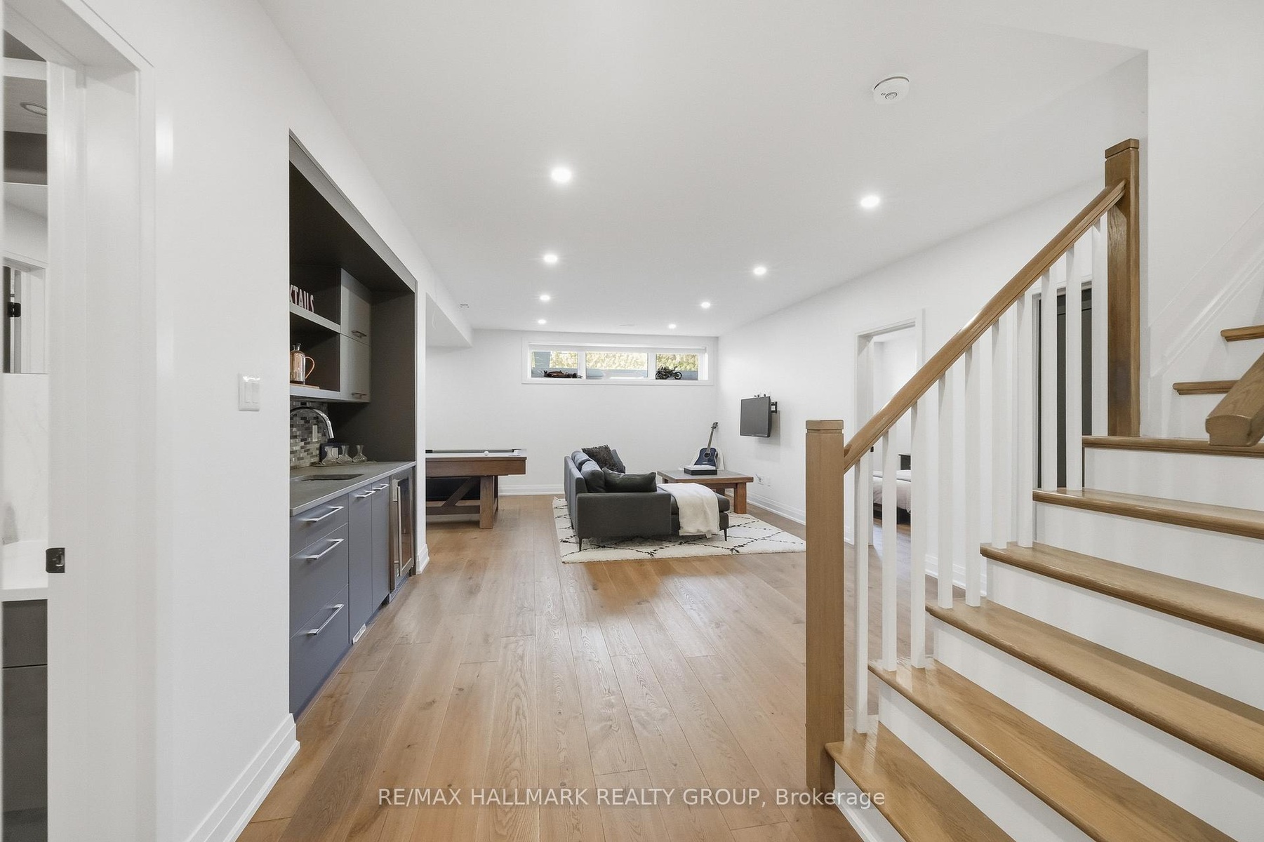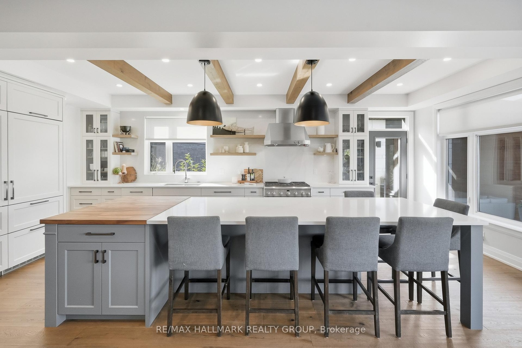 **OPEN HOUSE SUNDAY, NOVEMBER 9, BETWEEN 2-4PM** This stunning 5 bedroom home blends architectural sophistication with modern comfort, set in one of Orleans' most prestigious communities of Trails Edge. Its striking stone-and-brick exterior, modern landscaping and triple-car garage make an unforgettable first impression. Step outside to your backyard oasis - an entertainer's paradise featuring an inground pool, sleek stone patio, and a rustic-style covered pavilion with exposed beams, built-in gas BBQ, gas fireplace, TV area, and ample space to dine or lounge in style. Professionally landscaped for elegance and low maintenance, this outdoor retreat is perfect for summer gatherings and entertaining. Inside, rich hardwood flows throughout, complemented by pot lights and expansive windows that flood the home with natural light. The main level features a living room with gas fireplace, a private office with built-ins, and a chef's kitchen designed to impress - high-end appliances, gas stove, oversized island with seating for six, custom drawers, accent wood beams, and a convenient butler style service kitchen with two mini fridges, perfect for coffee, cocktails, or entertaining guests. Upstairs, the lavish primary suite boasts a boutique-style walk-in closet with island and a spa-inspired 5-piece ensuite with soaking tub, glass shower with rain head, and floating dual-sink vanity. Each secondary bedroom offers a walk-in closet and ensuite bath, while a generous laundry room with built-in storage completes the upper level. The finished lower level expands living space with a recreation area, wet bar, two bedrooms, a full bath, and abundant storage, creating an ideal retreat for family and guests. Combining modern elegance, sophisticated living, and exceptional walking access to top elementary and secondary schools, parks, and amenities, this home delivers the ultimate in comfort and style.