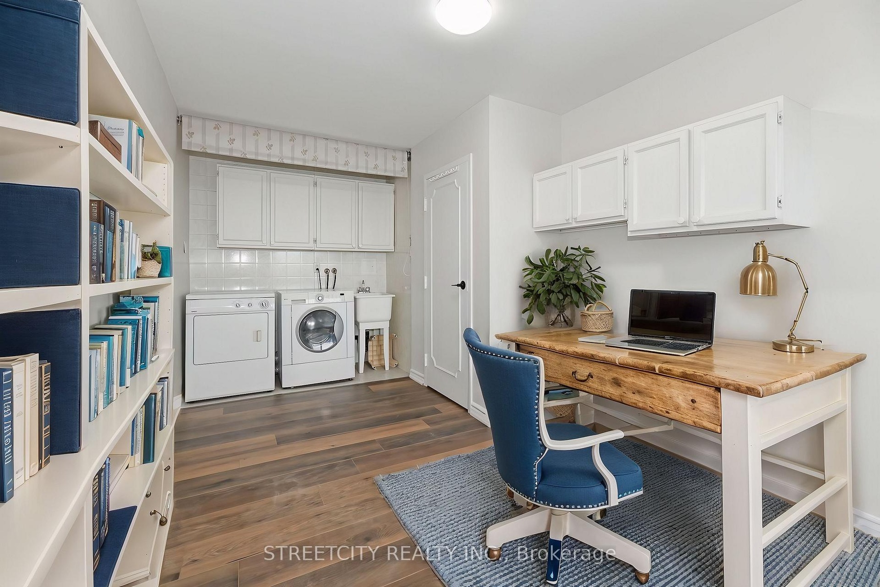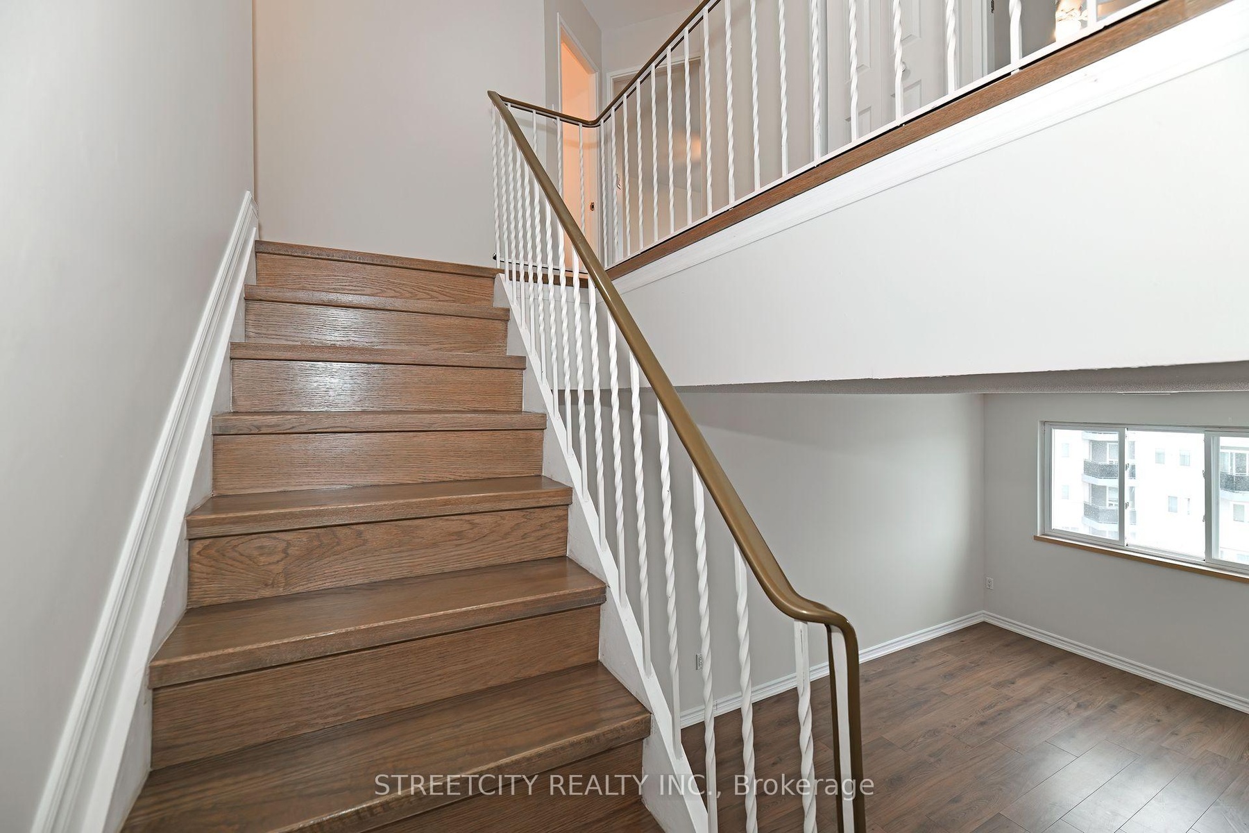 Welcome to this bright and spacious two-storey corner unit, ideally situated in the heart of vibrant Clarkson Village. Perfect for first-time buyers, families, investors, or renovators, this charming condo offers three bedrooms and two large balconies with peaceful views of the courtyard and beautifully maintained green space, creating a serene, sun-filled retreat. The open-concept main floor features a generous living and dining area, a functional kitchen, and a welcoming entrance, ideal for both entertaining and everyday living. Upstairs, you'll find three well-proportioned bedrooms, a four-piece bathroom, and convenient in-unit laundry with a washer, dryer, laundry tub, and a secondary private egress to the upper service hallway. Located in a well-managed, low-rise building with elevator access, this home offers an unbeatable lifestyle just steps from schools, parks, trails, Clarkson GO Station, the QEW, shopping, banks, and restaurants. Residents also enjoy access to impressive amenities including a heated indoor saltwater pool, fitness centre, sauna, underground car wash, children's playground, outdoor entertaining courtyard, party/meeting room, and ample visitor parking. Don't miss this incredible opportunity to own a versatile and well-appointed home in one of Mississauga's most connected and desirable communities. Some images have been virtually staged.