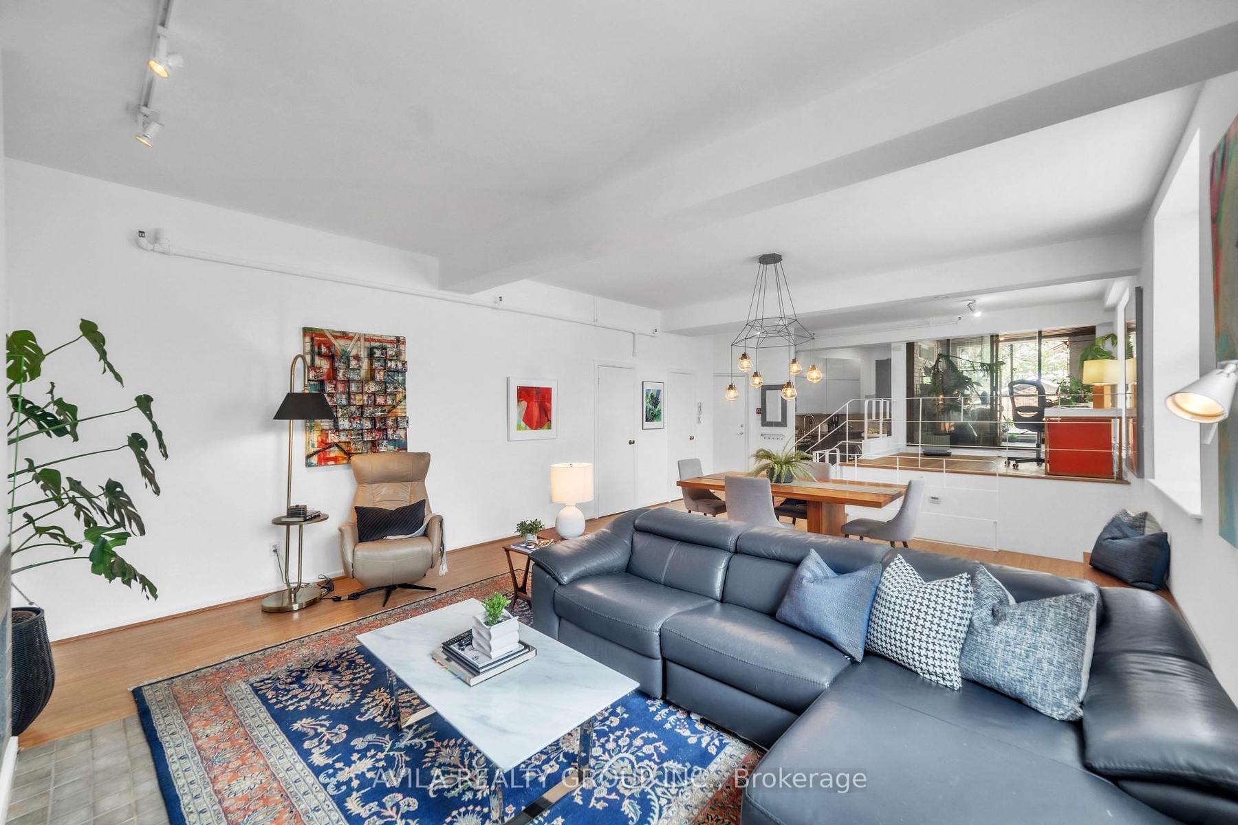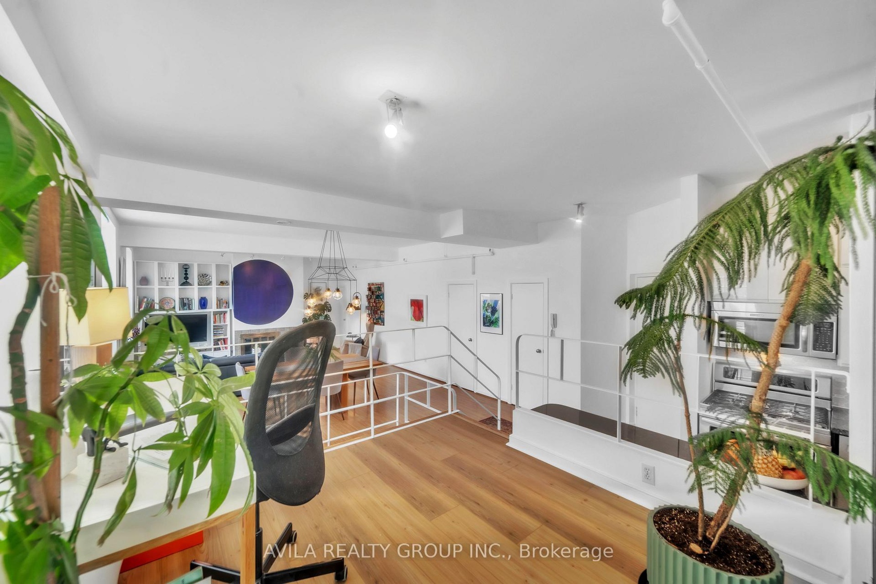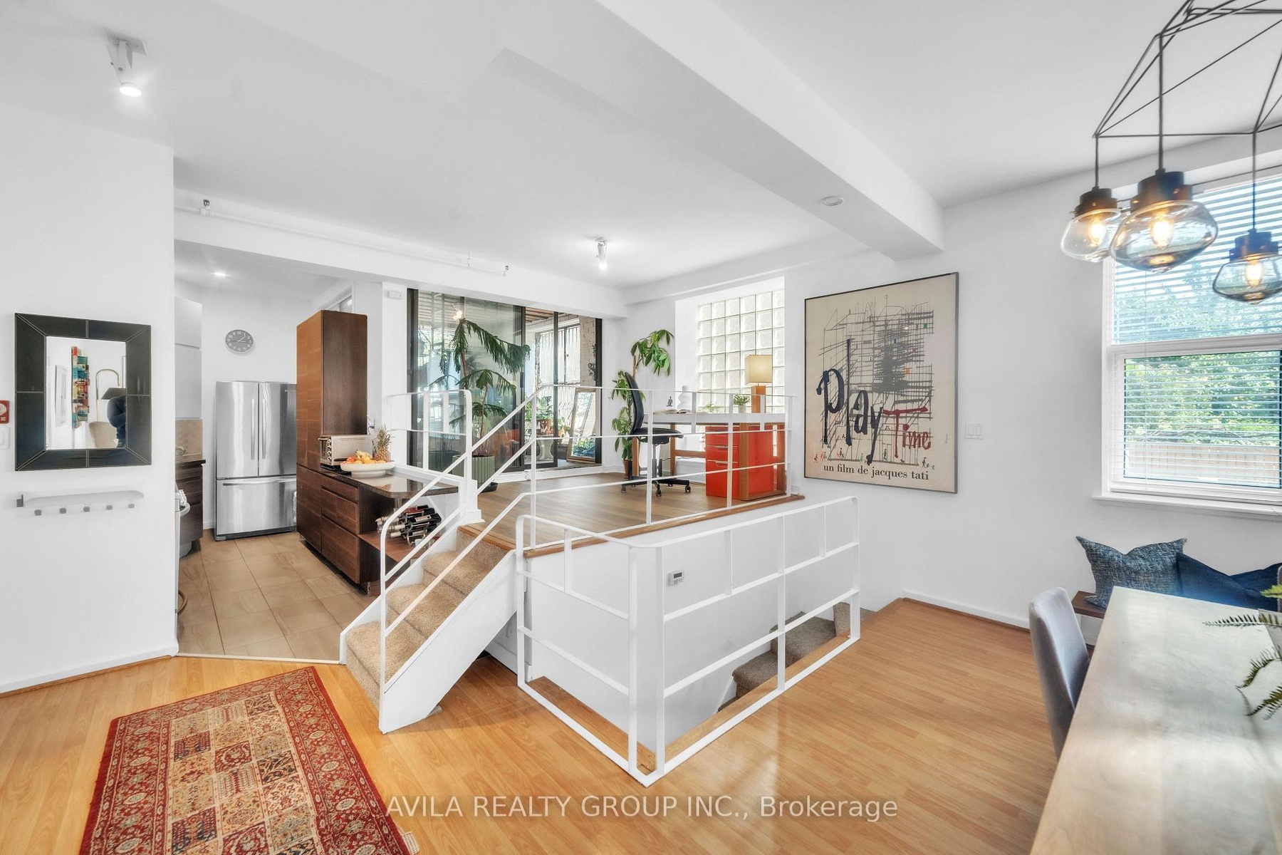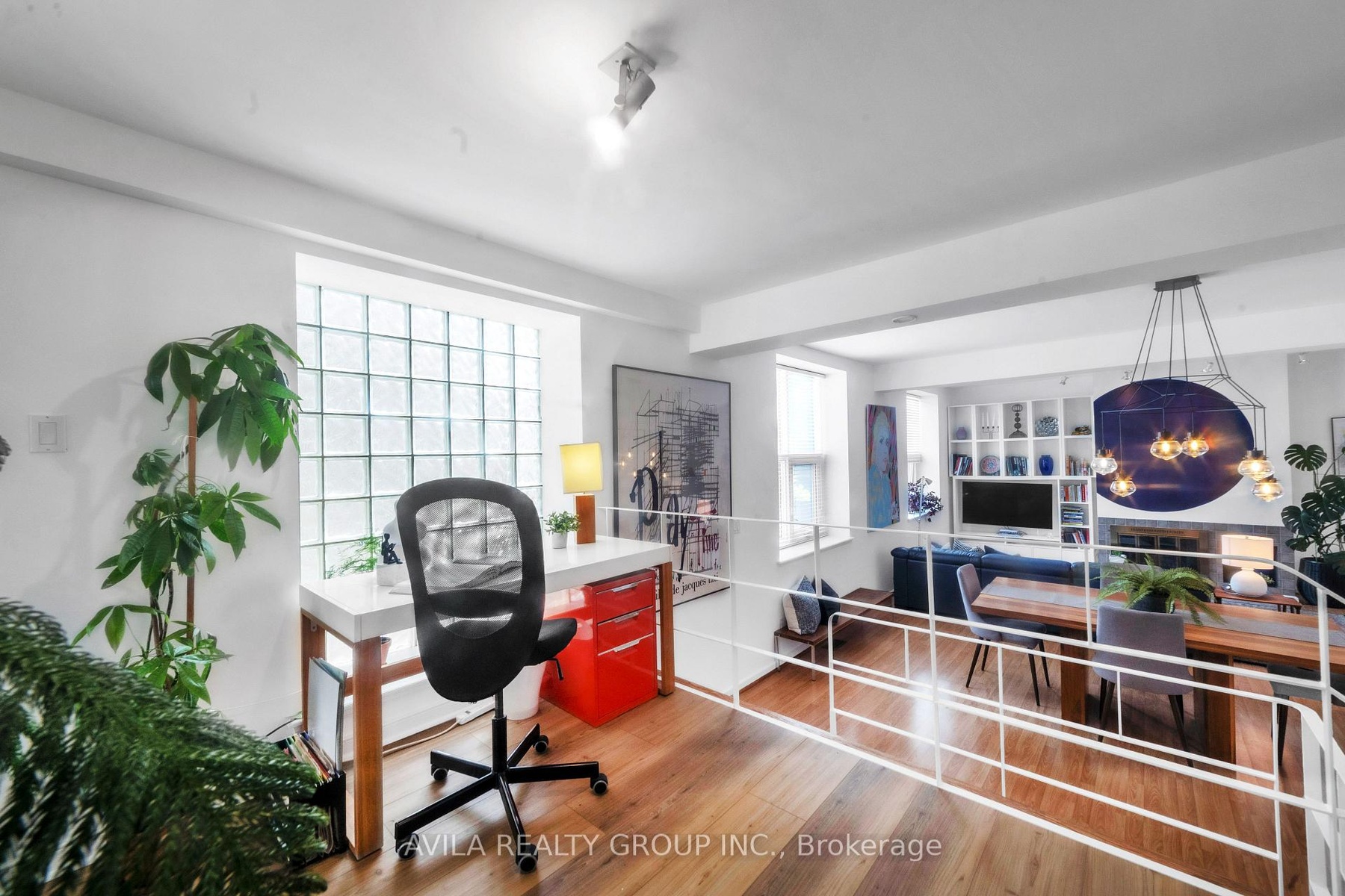 ONE-OF-A-KIND LOFT FOR SALE IN TORONTO'S TRINITY BELLWOODS. Welcome to The Oxford on Markham, an exceptional New York-style loft that blends authentic character with modern design. Once home to the historic Oxford Picture Frame Factory, this boutique building captures industrial charm with 10-ft ceilings, oversized gallery windows, and nearly 1,500 sq. ft. of bright, open living space. Featuring a reverse layout, both bedrooms are located on the lower level for ultimate privacy and quiet. The king-sized primary suite includes wall-to-wall closets and a tranquil full bath, while the second bedroom or office is ideal for guests or remote work. Upstairs, enjoy a flexible open-concept living area with soaring ceilings, abundant natural light, and space for both dining and lounging. The modern kitchen and bathrooms have been thoughtfully updated with sleek finishes, and a fireplace adds warmth and character to the upper level. Step outside to your private balcony or deck, a rare urban oasis perfect for morning coffee or unwinding after a long day. Parking included. Set in the heart of Trinity Bellwoods, one of Toronto's most vibrant and sought-after neighbourhoods, you're steps from Queen Street West, Bathurst, trendy cafés, art galleries, boutique shops, and leafy parks. Whether you're an entrepreneur working from home, a creative professional seeking inspiration, or a city dweller who loves to entertain, this unique loft offers unmatched flexibility and lifestyle appeal. Live inspired. Live here. Book your private showing calling your must trusted Realtor. More than a home, this one-of-a-kind loft captures the soul of downtown Toronto, where everything you love is just moments away.
