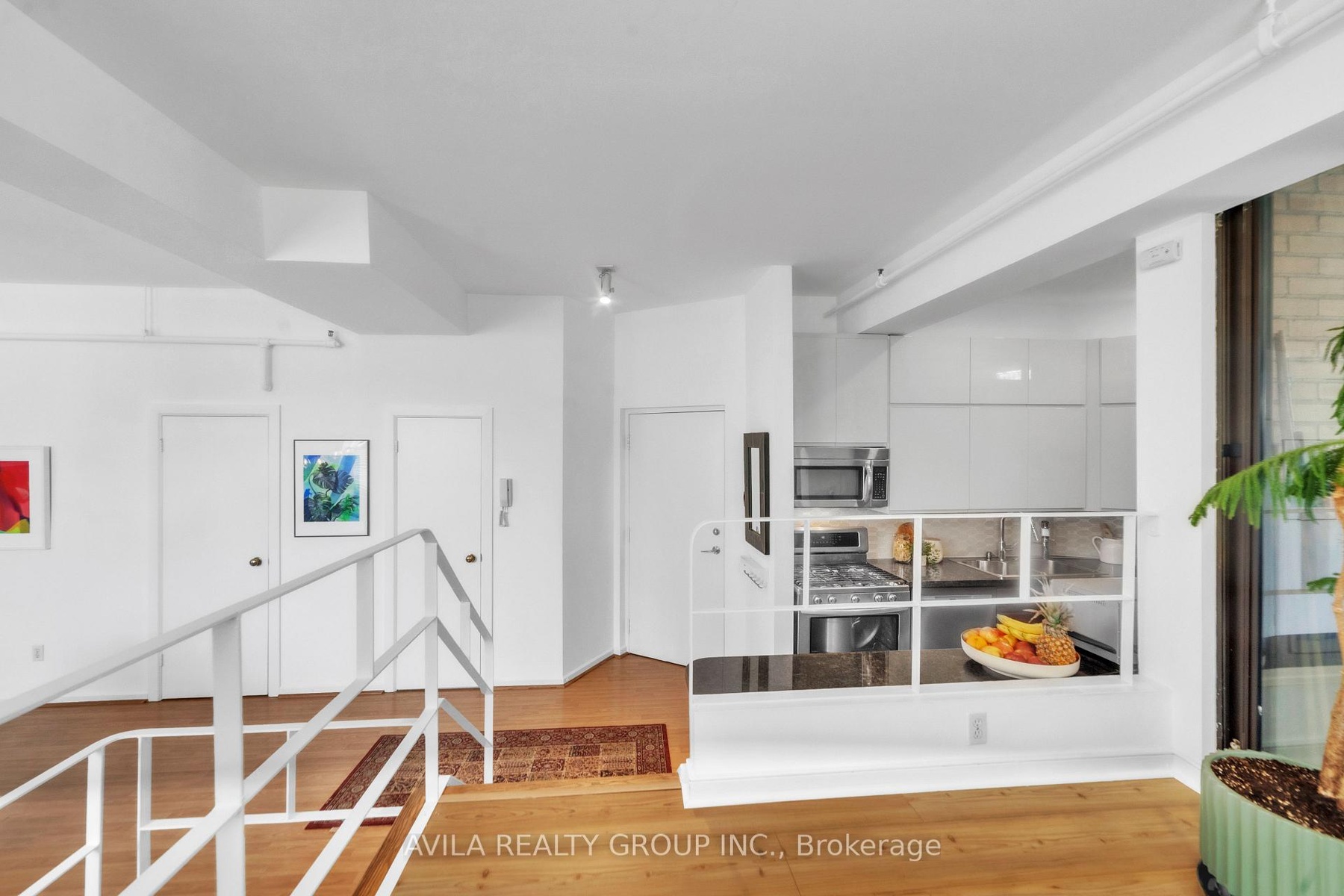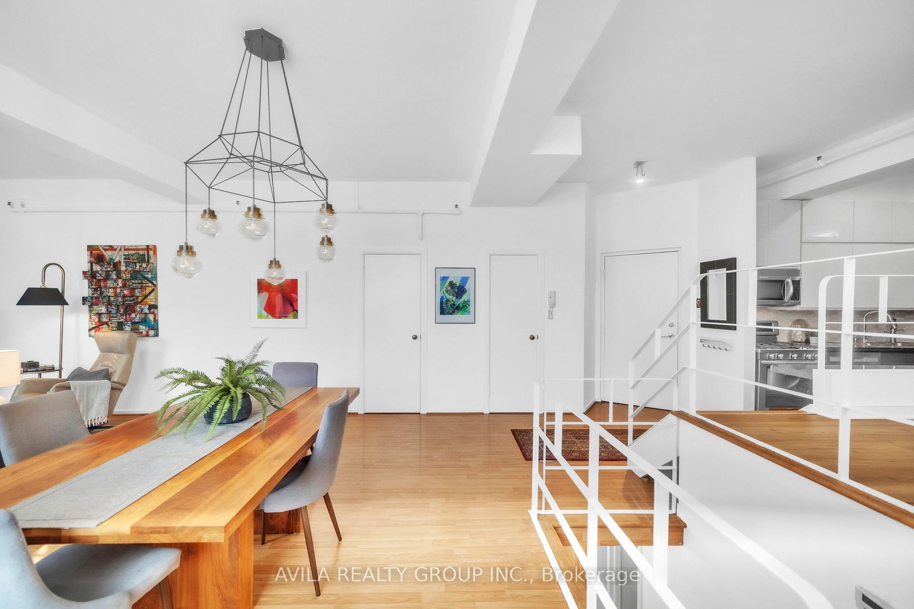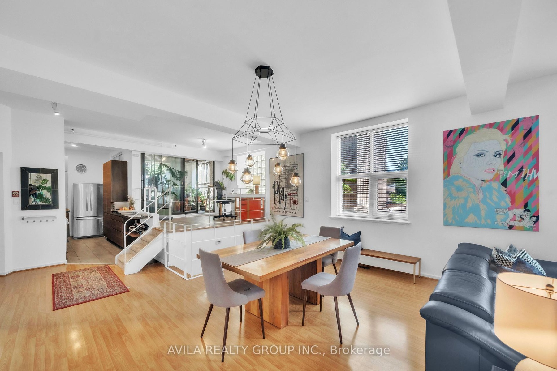 ONE-OF-A-KIND LOFT FOR SALE IN TORONTO'S TRINITY BELLWOODS. Welcome to The Oxford on Markham, an exceptional New York-style loft that blends authentic character with modern design. Once home to the historic Oxford Picture Frame Factory, this boutique building captures industrial charm with 10-ft ceilings, oversized gallery windows, and nearly 1,500 sq. ft. of bright, open living space. Featuring a reverse layout, both bedrooms are located on the lower level for ultimate privacy and quiet. The king-sized primary suite includes wall-to-wall closets and a tranquil full bath, while the second bedroom or office is ideal for guests or remote work. Upstairs, enjoy a flexible open-concept living area with soaring ceilings, abundant natural light, and space for both dining and lounging. The modern kitchen and bathrooms have been thoughtfully updated with sleek finishes, and a fireplace adds warmth and character to the upper level. Step outside to your private balcony or deck, a rare urban oasis perfect for morning coffee or unwinding after a long day. Parking included. Set in the heart of Trinity Bellwoods, one of Toronto's most vibrant and sought-after neighbourhoods, you're steps from Queen Street West, Bathurst, trendy cafés, art galleries, boutique shops, and leafy parks. Whether you're an entrepreneur working from home, a creative professional seeking inspiration, or a city dweller who loves to entertain, this unique loft offers unmatched flexibility and lifestyle appeal. Live inspired. Live here. Book your private showing calling your must trusted Realtor. More than a home, this one-of-a-kind loft captures the soul of downtown Toronto, where everything you love is just moments away.