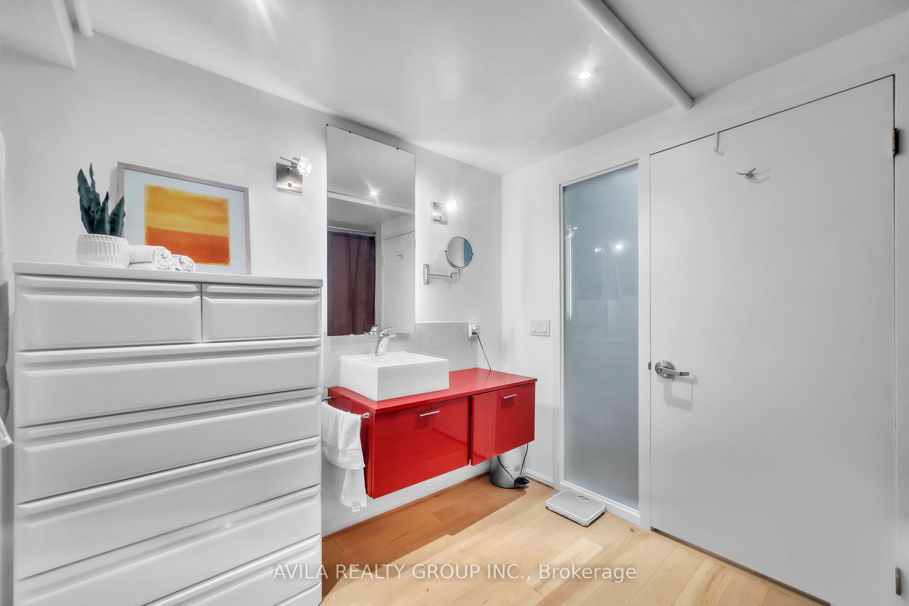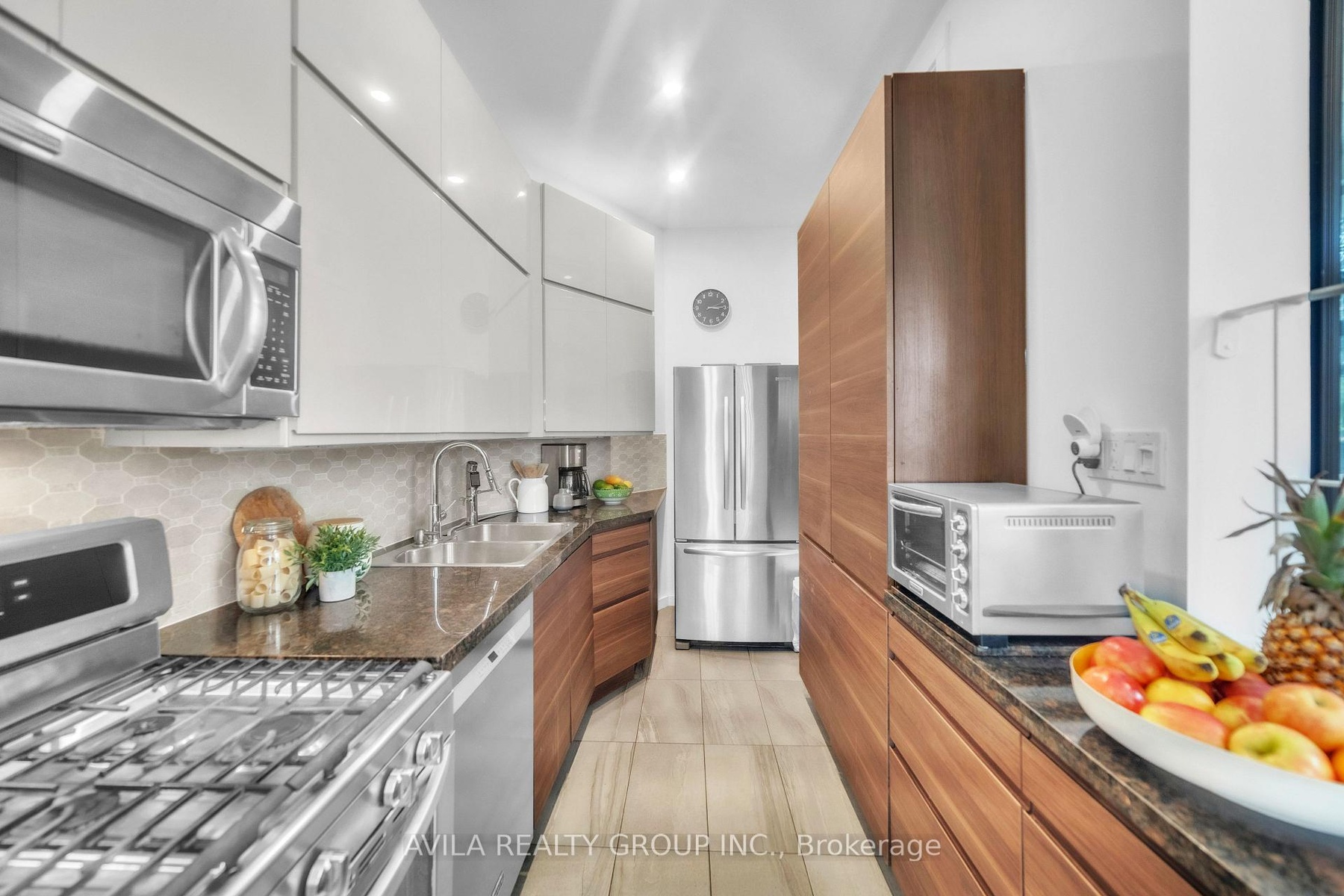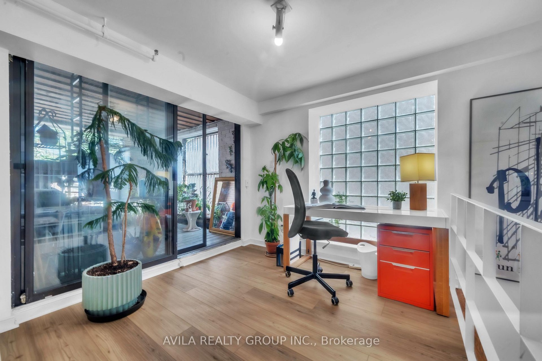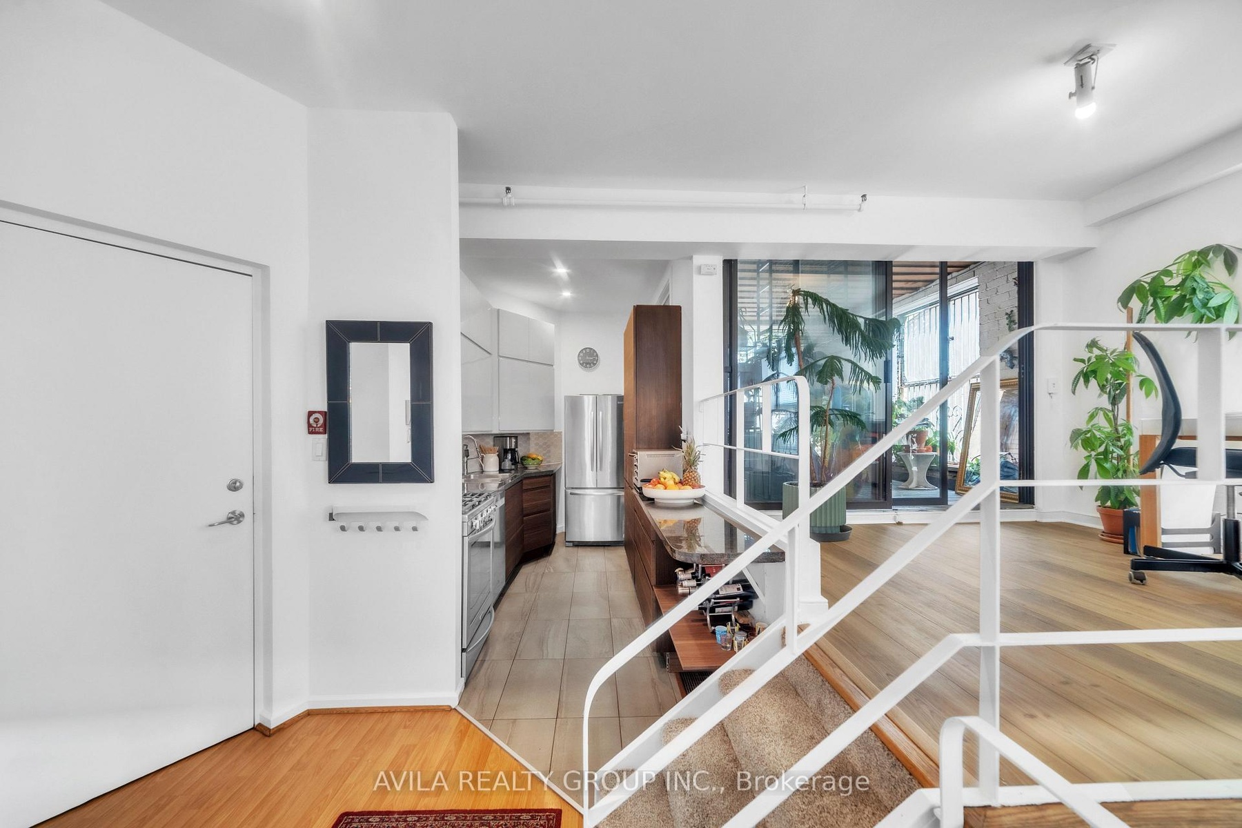 ONE-OF-A-KIND LOFT FOR SALE IN TORONTO'S TRINITY BELLWOODS. Welcome to The Oxford on Markham, an exceptional New York-style loft that blends authentic character with modern design. Once home to the historic Oxford Picture Frame Factory, this boutique building captures industrial charm with 10-ft ceilings, oversized gallery windows, and nearly 1,500 sq. ft. of bright, open living space. Featuring a reverse layout, both bedrooms are located on the lower level for ultimate privacy and quiet. The king-sized primary suite includes wall-to-wall closets and a tranquil full bath, while the second bedroom or office is ideal for guests or remote work. Upstairs, enjoy a flexible open-concept living area with soaring ceilings, abundant natural light, and space for both dining and lounging. The modern kitchen and bathrooms have been thoughtfully updated with sleek finishes, and a fireplace adds warmth and character to the upper level. Step outside to your private balcony or deck, a rare urban oasis perfect for morning coffee or unwinding after a long day. Parking included. Set in the heart of Trinity Bellwoods, one of Toronto's most vibrant and sought-after neighbourhoods, you're steps from Queen Street West, Bathurst, trendy cafés, art galleries, boutique shops, and leafy parks. Whether you're an entrepreneur working from home, a creative professional seeking inspiration, or a city dweller who loves to entertain, this unique loft offers unmatched flexibility and lifestyle appeal. Live inspired. Live here. Book your private showing calling your must trusted Realtor. More than a home, this one-of-a-kind loft captures the soul of downtown Toronto, where everything you love is just moments away.
