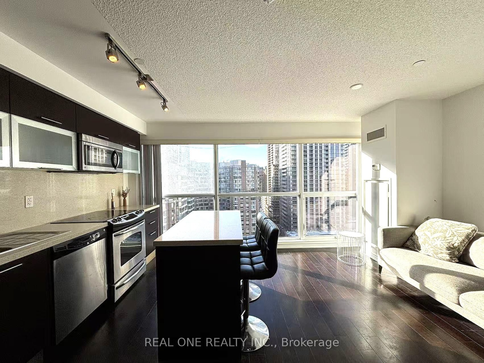 Luxury * Aura At College Park * Bright And Spacious Layout With Unobstructed City View. 1 Bedroom , Approx 550 Sqft, Luxury Finishing, Modern Style Open Concept, Floor To Ceiling Windows, 9' Ceilings, Contemporary Kitchen/Sophisticated Cabinetry Quartz Countertop. Centre Island. Hardwood Floor. World-Class Fitness Centre, Direct Access To Subway Station, Mins To Eaton Centre, Financial District, U Of T, Ryerson, Hospitals, & More.