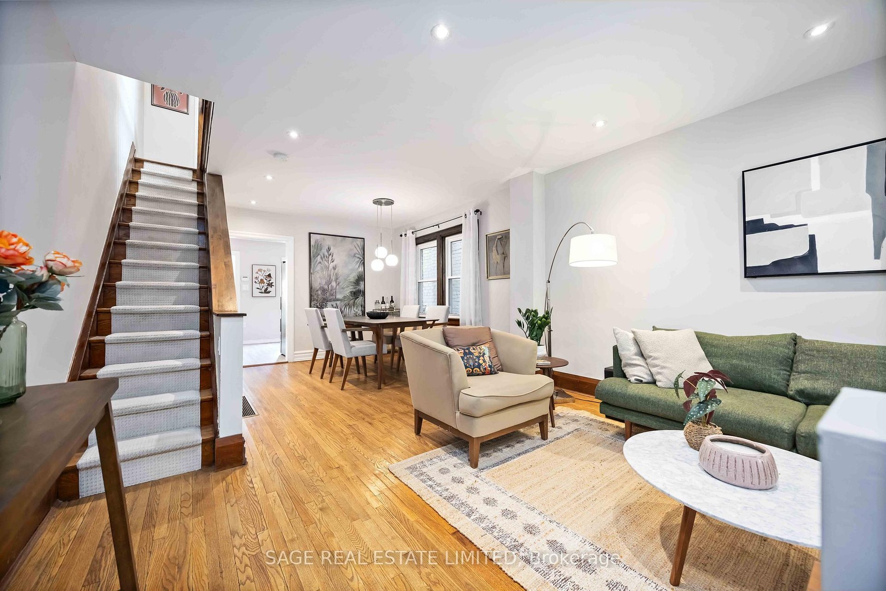 A walk in the park. This 3 bedroom, 2 bath semi has been beautifully renovated while preserving its century-home soul, with all the warmth and character you crave. Think original wood casings and trim, oak doors with vintage hardware, glass knobs, and sunlit rooms that feel instantly like home. Your storybook covered front porch leads you into the wide open living and dining rooms. The modern and spacious kitchen with a dual-fuel, dual-oven/range and quartz countertops is perfect for cooks and gatherers alike, flowing to a landscaped backyard with laneway parking. Not to be forgotten, the versatile rear addition gets all the glory, illuminated by its skylight, proving even practical spaces can have main character energy. Upstairs you have three full bedrooms with surprisingly deep closets and a magazine worthy, beautifully renovated bathroom featuring timeless finishes, elegant tile, heated floors and thoughtful design details throughout. The property has been lovingly updated, from the upgraded electrical panel (2023) with 220/240v EV charger, fresh paint, lighting, and fully fenced back garden. Set in a friendly, walkable pocket steps to Kingston Rd., Village Shops, parks like Blantyre, Bob Acton, and Glen Stewart Ravine to name a few, top-rated schools like the beloved Adam Beck Public School, GO/TTC, and Woodbine Beach. This is the kind of home and community people rarely want to leave.