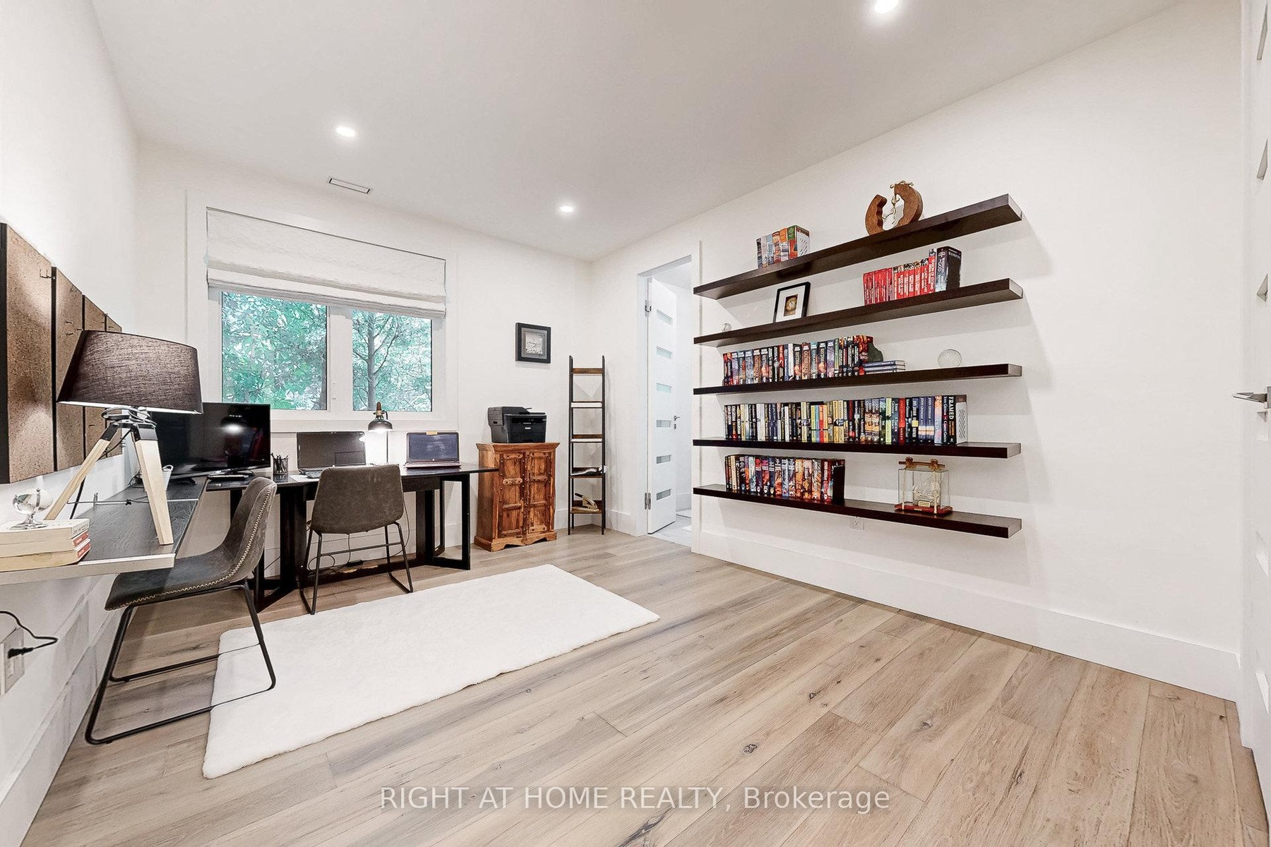 A truly spectacular opportunity in the prestigious West Shore community! This custom home showcases over 4,400 sq. ft. of refined luxury, designed for both grand entertaining and comfortable family living. From the striking curb appeal with black-framed windows and a timeless combination of natural stone and stucco, every detail speaks to quality and sophistication. Step inside to an impressive open-concept layout filled with natural light and elegant finishes. Expansive principal rooms on the main level feature soaring 10-ft ceilings, wide-plank hardwood floors, and a custom-crafted fireplace mantle that serves as a stunning focal point. The chefs kitchen is a culinary masterpiece with top-of-the-line appliances, quartz countertops, an oversized island, servery, and a walk-in pantry perfect for hosting gatherings in style. The upper level offers 9-ft ceilings and a private primary retreat complete with a bar area, generous walk-in closet, and a spa-inspired ensuite with luxurious finishes. Additional spacious bedrooms, each with custom closet organizers, ensure comfort for family and guests, while the second-floor laundry room adds convenience. The fully finished lower level expands the living space with a gas fireplace, a full 3-piece bath, and endless possibilities for recreation or relaxation. Outside, the private backyard is designed for entertaining with a large patio and BBQ gas line, creating the ideal setting for summer evenings. Enjoy the unmatched lifestyle of West Shore steps to the lake, waterfront trails, parks, and top-rated schools, with easy access to shopping and Highway 401. This exceptional residence combines timeless elegance with modern convenience in one of the areas most coveted communities.