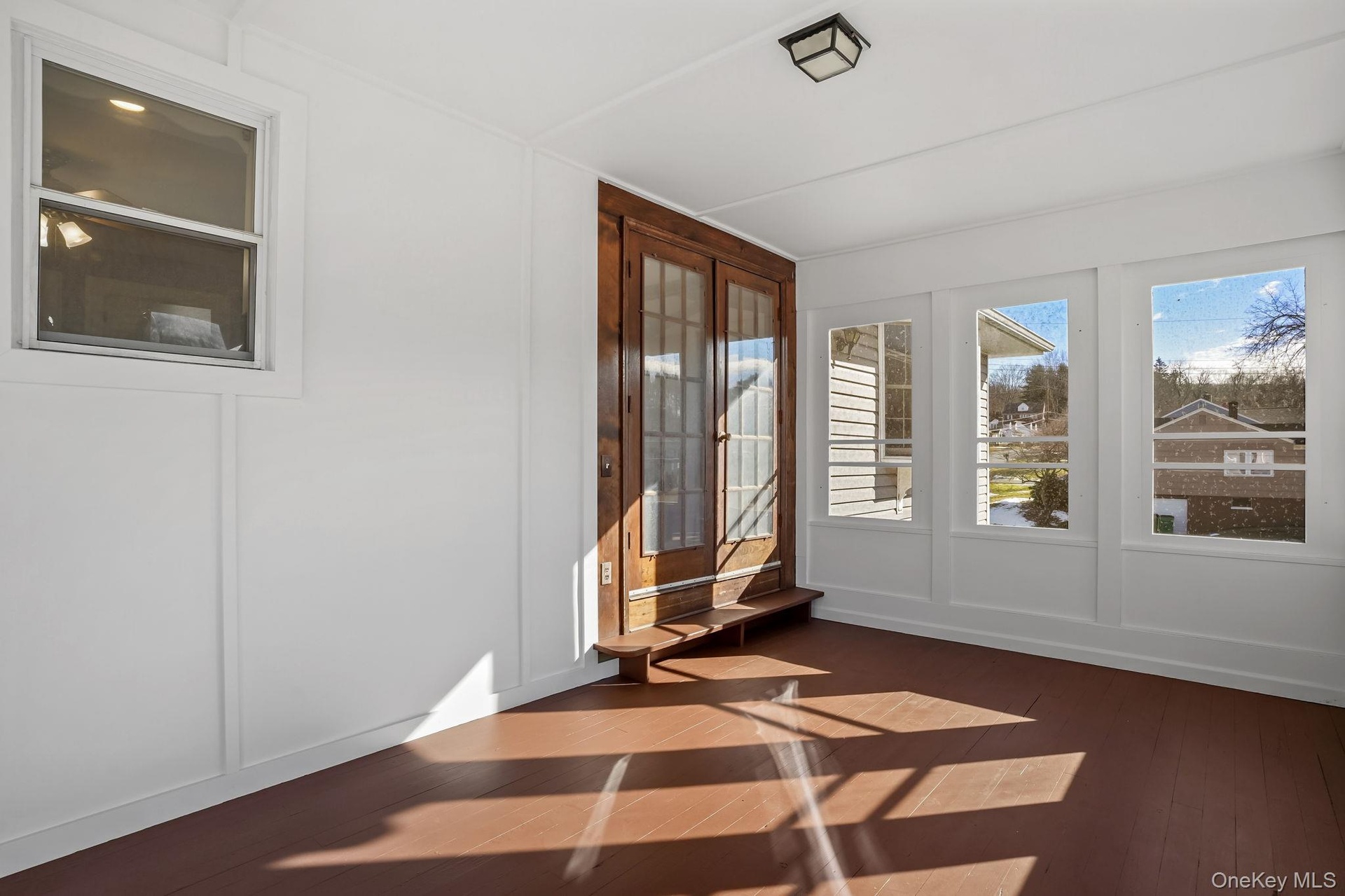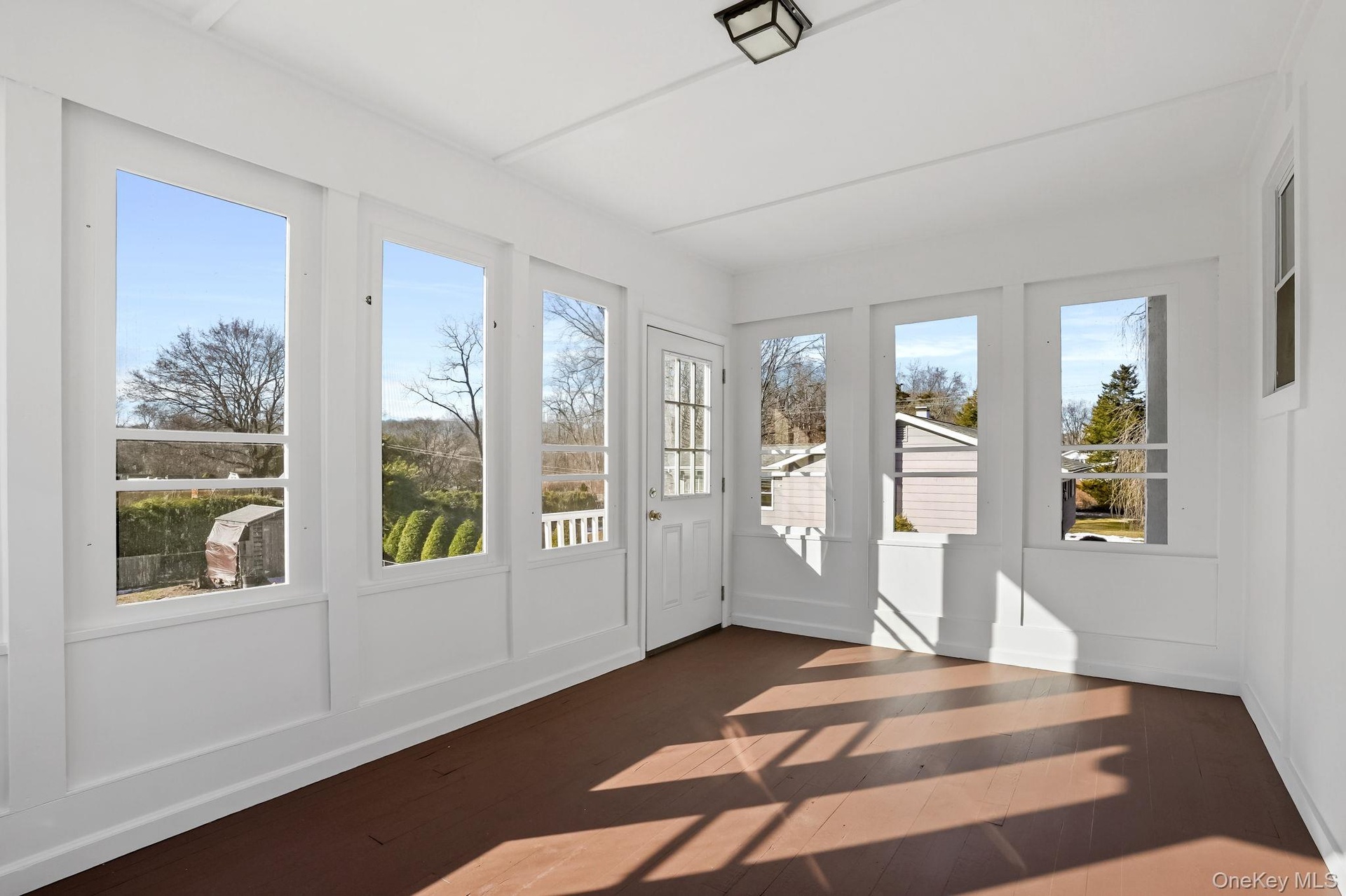 - Unfurnished sunroom with hardwood / wood-style flooring