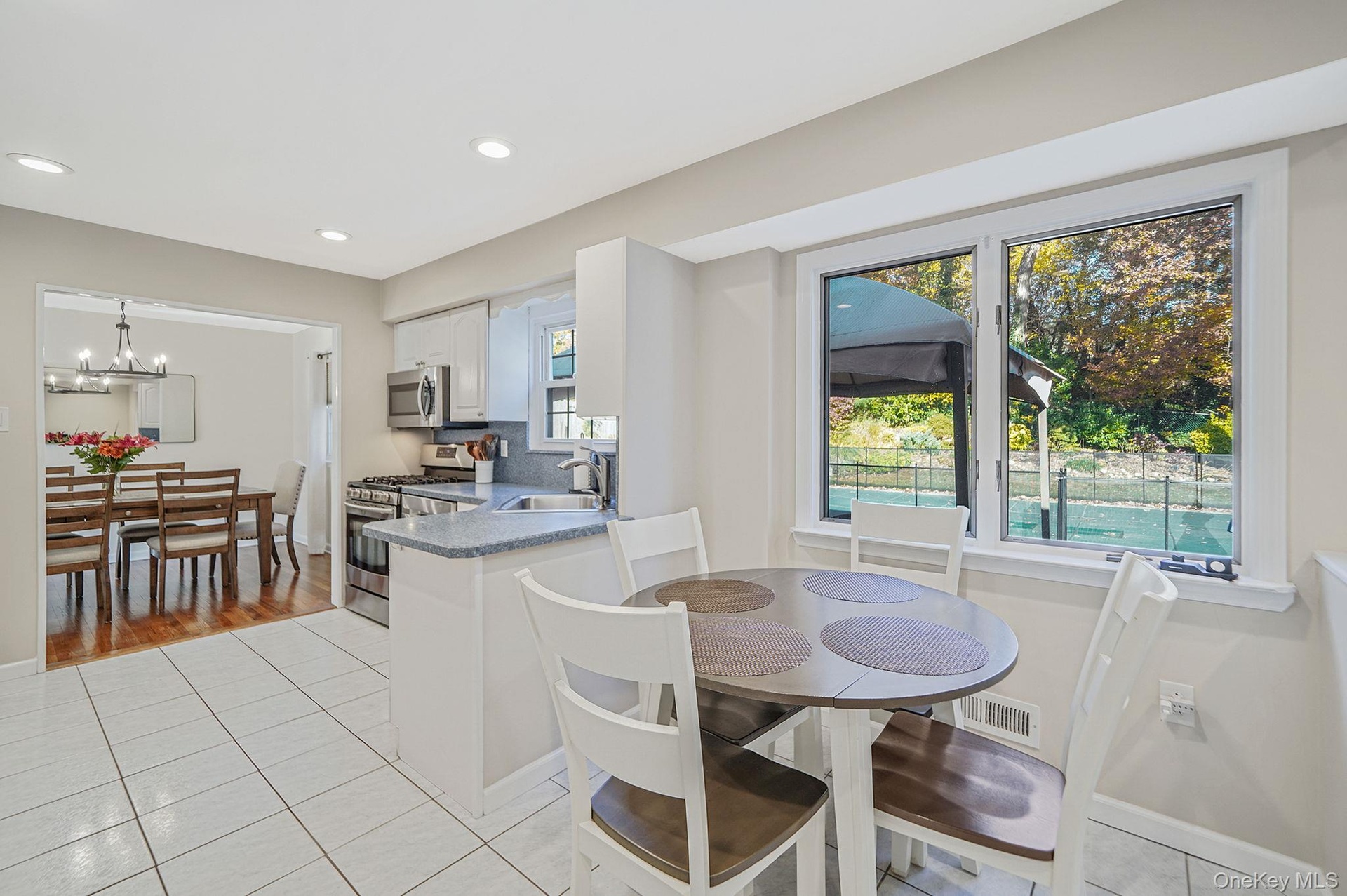 Nestled on .47 acres in the sought-after Bretton Woods section of Hauppauge, this beautifully updated and meticulously maintained colonial offers the perfect blend of comfort, style, and modern living with LOW taxes of just $10313.08 before STAR! Set on a quiet tree-lined street with stunning curb appeal and lush mature landscaping both front and back, this home is truly move-in ready. Step inside to a spacious living room featuring a large picture window, hardwood floors, recessed lighting, and a gas fireplace. The formal dining room flows seamlessly into the updated kitchen with ample cabinetry, counter space, stainless-steel appliances, gas cooking, and a charming breakfast nook overlooking your backyard oasis. A sunken den with sliders leads directly to your dream backyard—complete with a brand-new paver patio, saltwater in-ground pool with new liner and filter, PVC fencing, and an additional patio area with a built-in pergola—perfect for entertaining or relaxing all summer long! Upstairs, find a beautifully updated full bath featuring a dual vanity and radiant heated floors, connecting to the king-size primary bedroom with a large closet and hardwood floors. Two additional spacious bedrooms, also with hardwood floors, complete the 2nd level. New pull-down stairs lead to a full attic for extra storage. The finished basement offers even more living space, is projector/surround-sound ready, houses your laundry, utilities, and more storage! Additional features include an ADT alarm system with motion sensors & window breaks, a 200-amp electrical panel, Gas heat, Rheem hot water heater (5 years young), HVAC System (approx 5 years young), Roof (approx. 10 years young), IGS front and back, CAC, new garage door opener, front door with sidelights, and cedar shake impression siding for timeless curb appeal! Located in the desirable Hauppauge School District, this home combines suburban tranquility with easy access to local shops, parks, restaurants, and highways for easy commute. Everything you’ve been waiting for in one perfect home—welcome to 11 Joyce Drive!