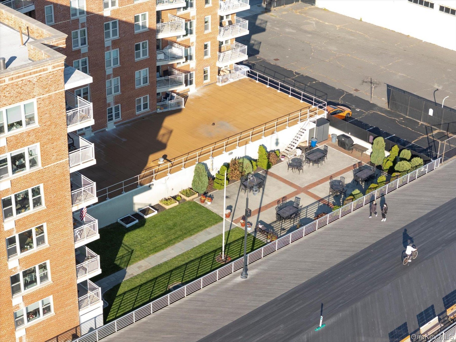 Prepare to be wowed! This beautifully renovated, sun-filled one bedroom features breathtaking panoramic ocean views from the living room and bedroom. Just move right in and enjoy oceanfront living at Seaview Terrace. Completely renovated in 2022 including a gorgeous custom eat-in kitchen with high end stainless appliances, quartz counters, pantry closet and a lovely dining area. In the spacious living room with a fantastic ocean view there is a custom office space perfect for remote work. Renovated full hall bath and a large bedroom with ample closet space. The low maintenance of $1057 a month includes heat, electric (one time summer surcharge for AC), gas, water, insurance, landscaping and on-premises super. There is plenty of storage including 3 closets in the unit, storage cubicle in garage, beach chair storage and bike racks (all included at no charge.) Ample street parking, 15 reserved first-come spots for SVT residents only plus a wait list for garage. The beautiful courtyard adjacent to the boardwalk includes patio tables, umbrellas and 2 gas grills for outdoor entertaining right on the ocean. Entrance to an epic surfing spot is right on Lindell Boulevard and there are even showers adjacent to the ground floor laundry so you can rinse off after the beach. Make your dream of ocean living a reality now!