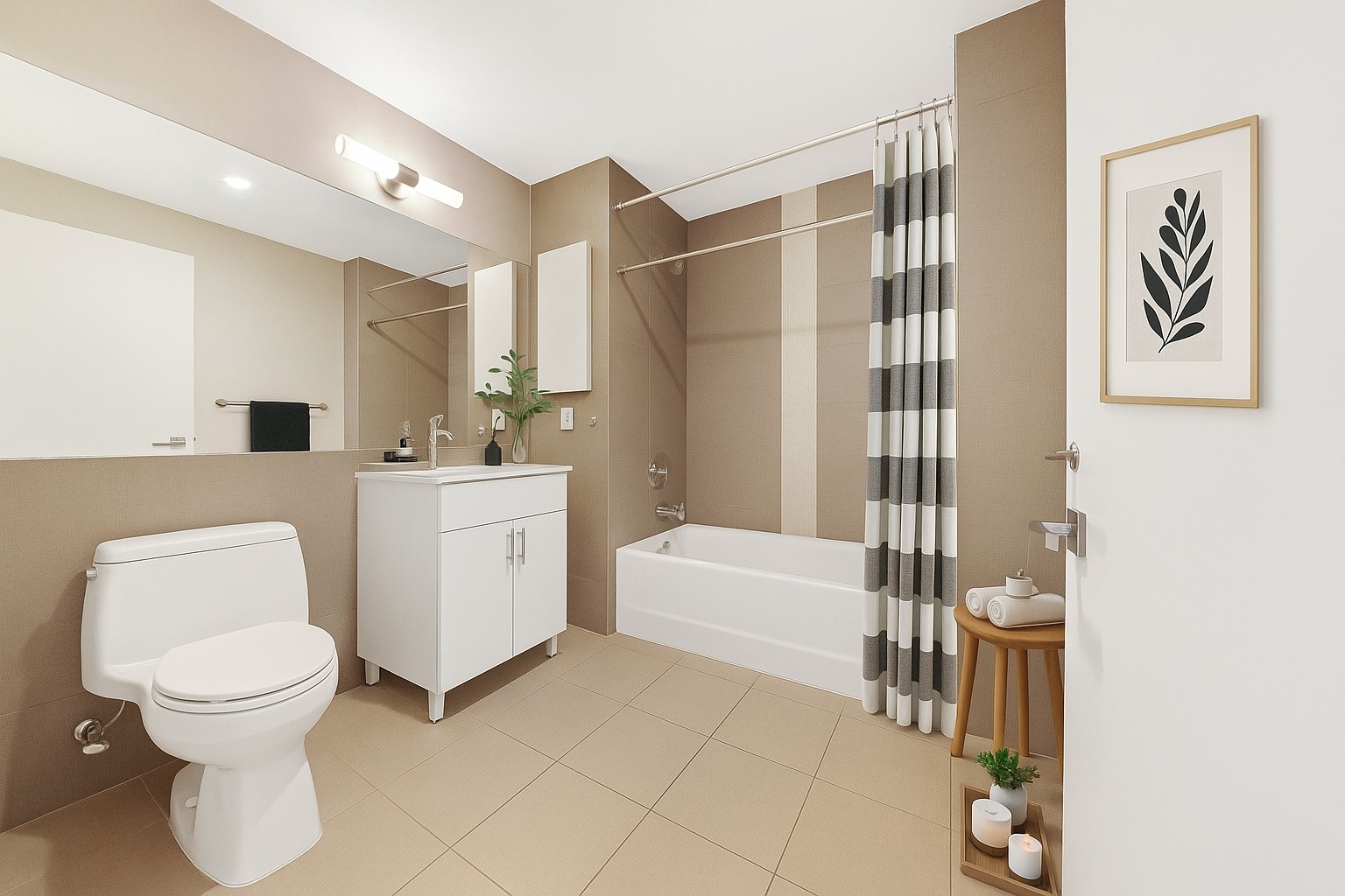 Inside, high ceilings, expansive layouts, and floor-to-ceiling windows flood each residence with natural light and sweeping city views. Every home is thoughtfully designed for comfort and style, featuring open-concept gourmet kitchens with stainless steel appliances, white oak cabinetry, dishwashers, charcoal water filtration, and stone countertops—a perfect blend of elegance and functionality for both cooking and entertaining.