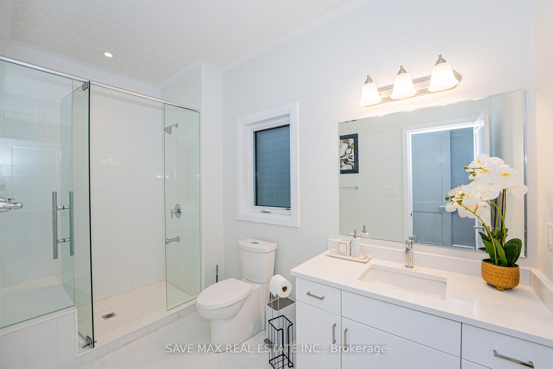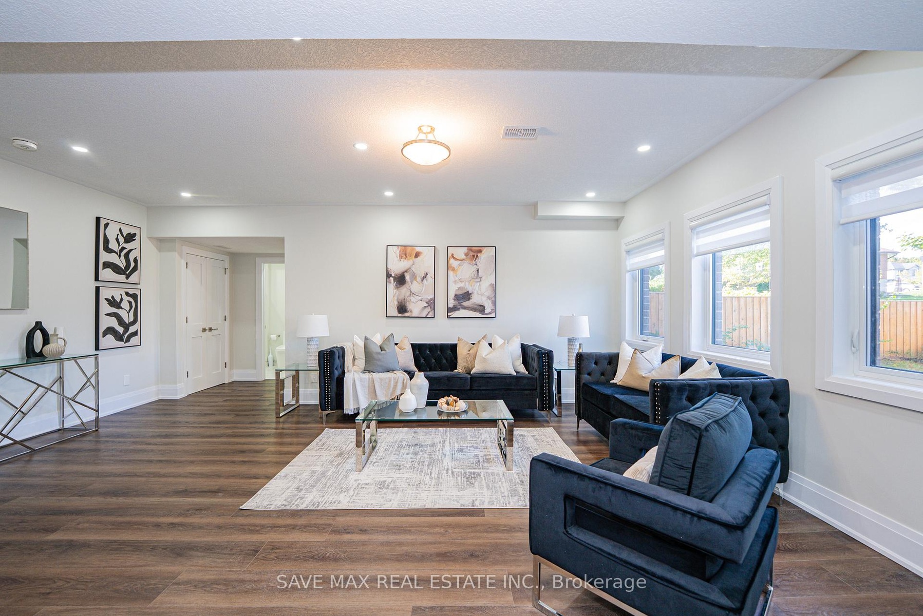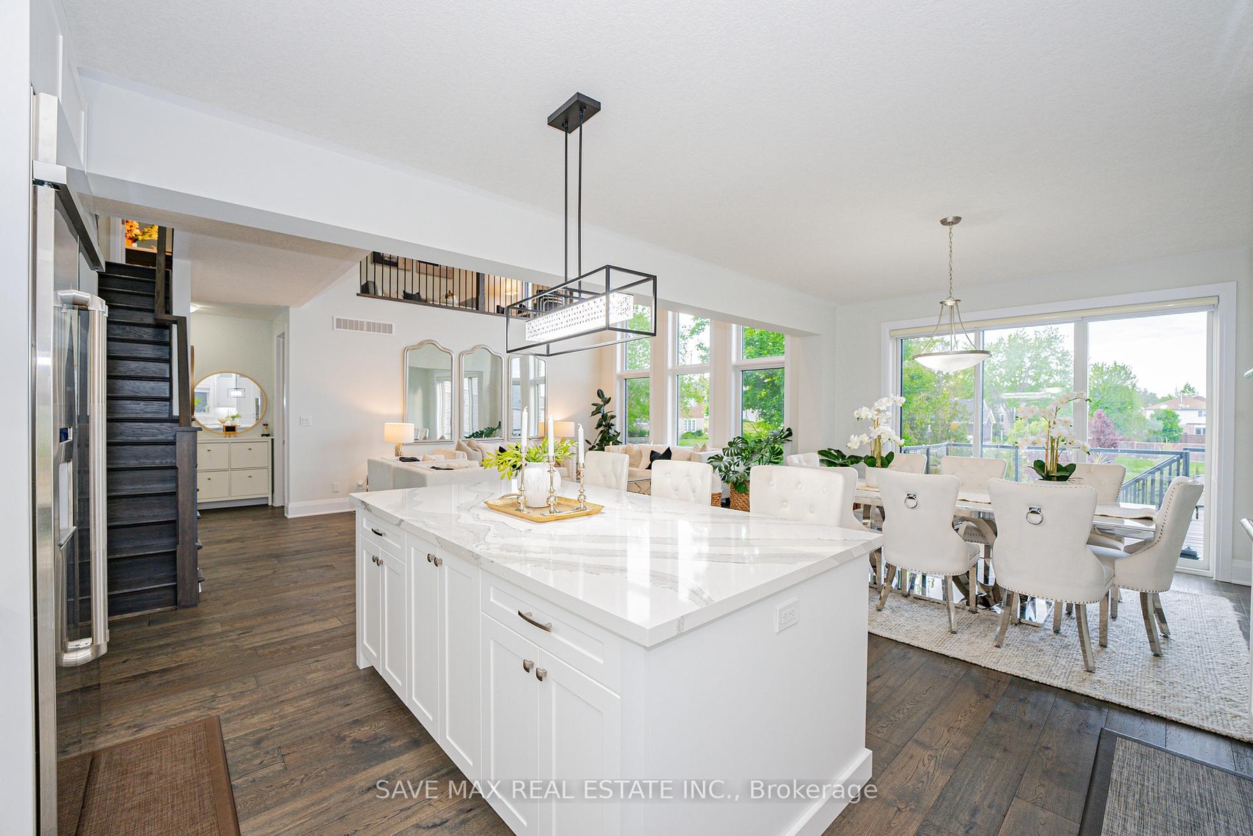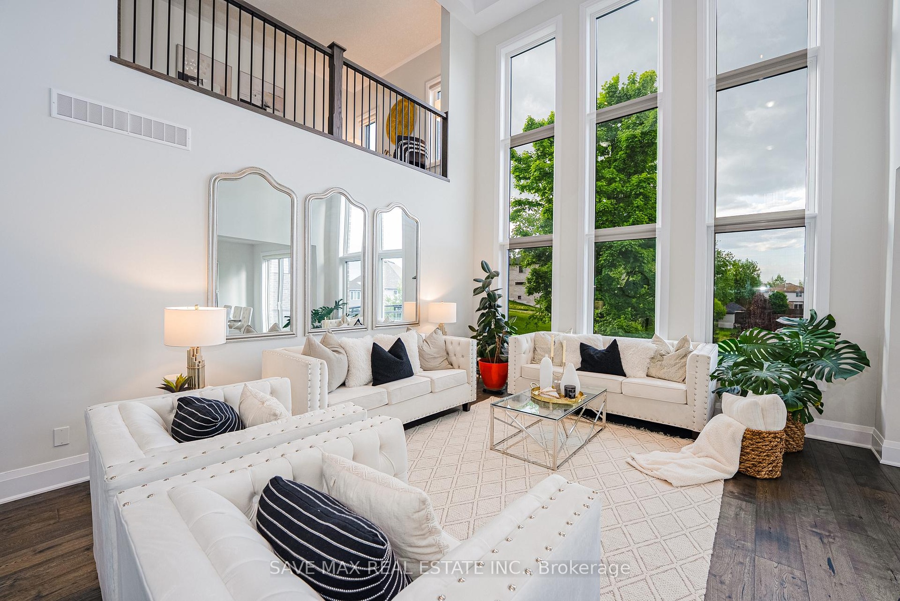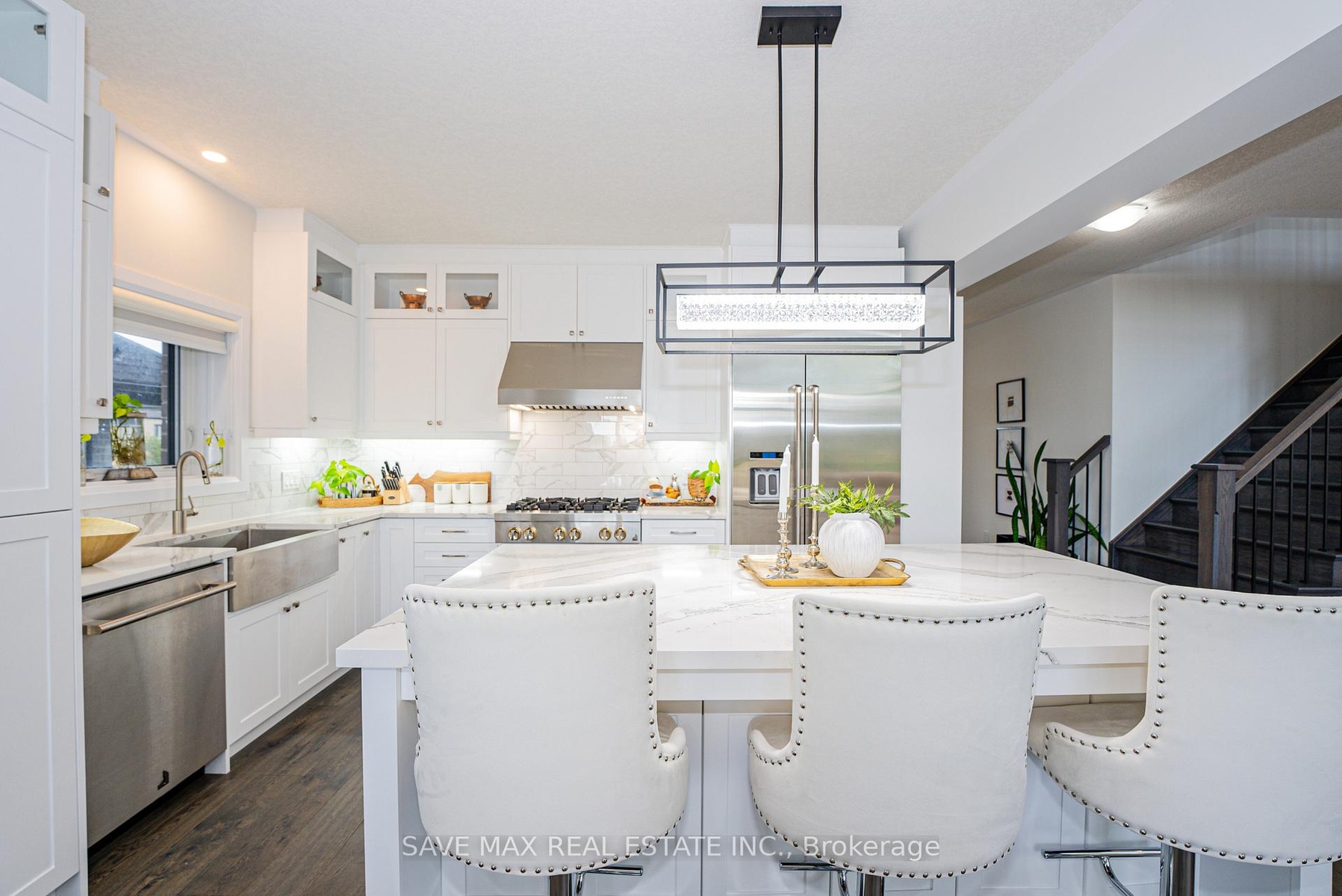 Step into a world of unparalleled luxury at 26 Falconridge Drive, in the heart of the prestigious Kiwanis Park community. This architectural masterpiece offers approximately 5,000 sq. ft. of living space, meticulously crafted with over $400,000 in high-end upgrades. Set on a 55-foot-wide lot that fronts onto a tranquil pond and backs onto estate homes, this home offers stunning views and unparalleled privacy. The exterior is a harmonious blend of full stone, brick, and stucco finishes, exuding timeless elegance. Inside, you'll be captivated by the 9-foot ceilings throughout and the magnificent open-to-above great room, bathed in natural light from 9 expansive windows that frame breathtaking views. The custom chefs kitchen is a culinary sanctuary, featuring Cambria quartz countertops, Jennair professional appliances, a charming farmhouse sink, and bespoke cabinetry. The main floor includes a bedroom with a full ensuite, perfect for guests or multigenerational living. Upstairs, discover 4 spacious bedrooms, 3 full washrooms, and an additional powder room for ultimate convenience. The fully legal 2-bedroom, 2-full washroom walkout basement apartment is an added jewel, currently occupied by AAA tenants paying $2,500/month, with flexibility to stay or vacate based on your preference. Seamlessly blending indoor and outdoor living, the great rooms extended patio door opens to an expansive composite deck with sleek glass panels and stairs, leading to a private outdoor oasis. For car enthusiasts, the oversized 2-car garage features one bay extended by 2 feet, offering ample space for luxury vehicles or extra storage. Additional highlights include a separate family living loft, a formal dining area, and a curated list of upgrades that elevate this home to a true luxury retreat. This is more than a home its a rare opportunity to own a masterpiece residence in one of Kitchener's most sought-after neighborhoods. Experience luxury living at its finest.