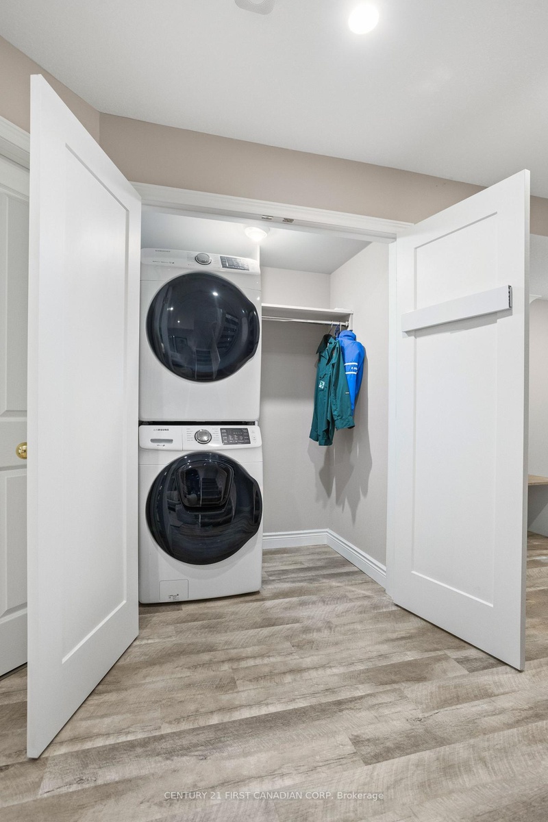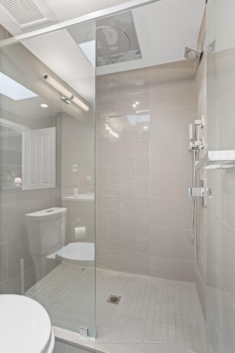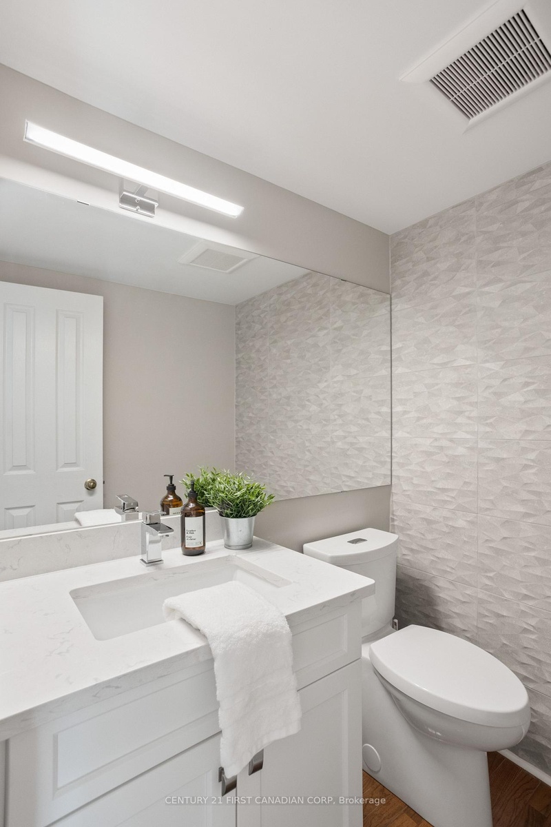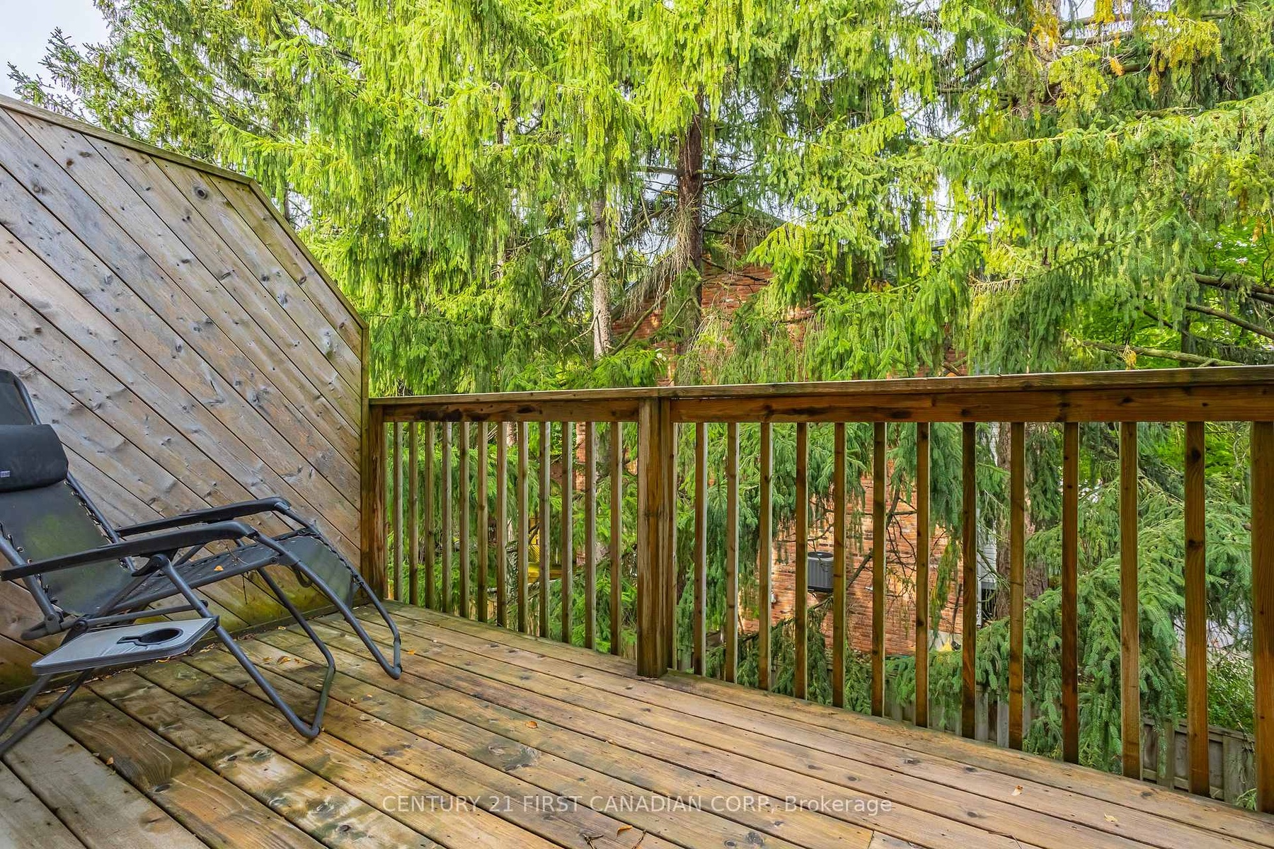 Welcome to 1399 Commissioners Road W., Unit 30, in the sought-after Byron neighbourhood of London. This three-storey townhome offers two spacious bedrooms, 1.5 bathrooms, and a single-car garage. The entry level features a versatile den or office space finished with luxury vinyl plank and provides access to a private patio through updated patio doors. The main floor showcases an open-concept design with hardwood flooring, a gas fireplace, and a private outdoor balcony space through updated patio doors off the living room. A central open staircase with a skylight from the third floor, combined with an abundance of windows throughout, fills the home with natural light. Upstairs, you'll find two generously sized bedrooms and a beautifully renovated three-piece bathroom completed with heated floors, tiled walls and floors, Grohe fixtures, and a 20 rainfall shower. The half bathroom on the main floor also includes Grohe fixtures and a gorgeous tile feature wall. The second and third floors are finished with hardwood, while the furnace room floor has been epoxied to match the luxury vinyl plank flooring. The home is further enhanced by an owned tankless water heater, increasing efficiency and comfort. The garage is finished with Gladiator Garage slat walls, baseboards, and an epoxy floor, offering excellent storage and durability. This condo community backs onto the Thames River and is just minutes on foot to Springbank Park and the heart of Byron, making it the perfect combination of nature, convenience, and lifestyle.