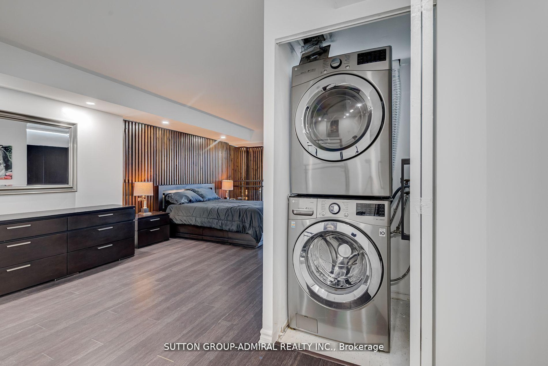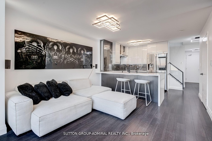 Recently renovated, fully furnished 2-storey loft at Mystic Point with an open concept layout. This tech-savvy residence offers smart home controls for easy monitoring from your phone. Features include LED lighting, Nest thermostat, smart fridge w/ internal camera, surround sound system. Reverse osmosis water filter system in kitchen. Living area offers brand-new natural gas fireplace and 75-inch TV. Balcony has natural gas BBQ outlet w/ outdoor seating. Master bedroom offers built-in closet cabinetry, flat screen TV, full bathroom w/towel warmer. 1 parking space & High Speed Bell Internet Included. Combining modern convenience with functional design, this lease opportunity is not to be missed! Some furniture can be removed if needed