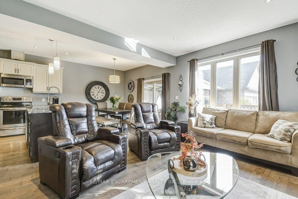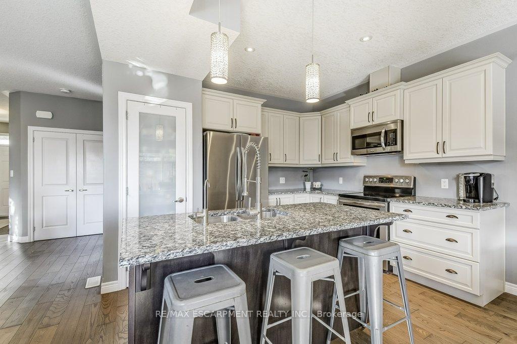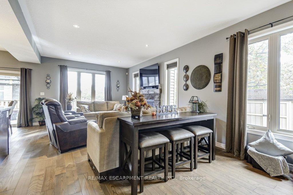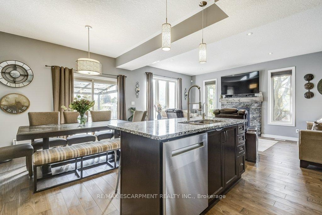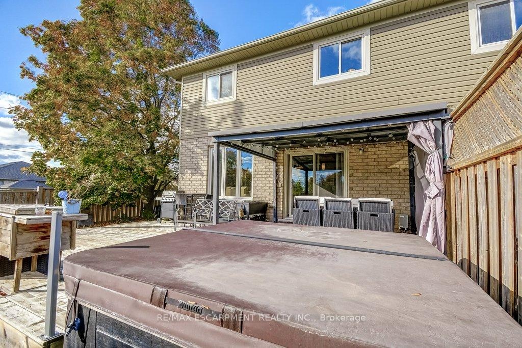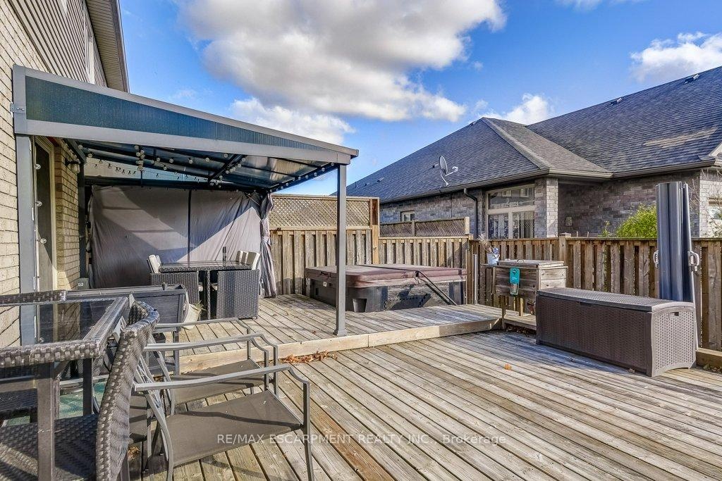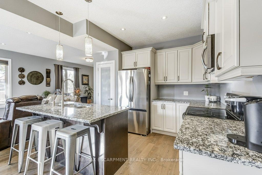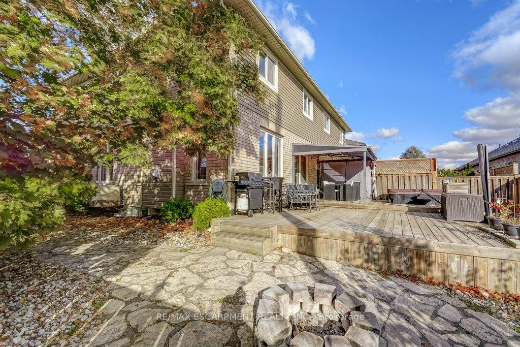 Stunning, move-in ready semi-detached home offering approximately 2,000 sq. ft. PLUS a finished basement in one of Paris' most desirable north-end neighbourhoods. Thoughtfully designed with comfort and style in mind, this home blends upscale finishes with a warm, inviting feel. The main level features an open-concept layout with 9-foot ceilings, large windows and a gorgeous stone fireplace as the focal point of the living room. The kitchen is the heart of this home with granite countertops, pantry, under mount double sink and a large island perfect for casual dining or entertaining. Hardwood and ceramic flooring are complemented by neutral tones and custom lighting. Upstairs, you'll find three spacious bedrooms, including a serene primary suite with a large walk-in closet and a spa- inspired ensuite featuring a double vanity with quartz counters and a stylish glass shower. A 4-piece main bath and a dedicated laundry room with a sink add everyday convenience. The finished lower level expands your living space with a bright and welcoming family room featuring sleek built-ins, accent lighting, and a modern fireplace. This level also includes a stylish 4-piece bath. This extra space is ideal for entertaining, movie nights, or hosting guests. Outside, enjoy a fully fenced backyard complete with a large deck, hot tub and stone patio area -whether the plan is to relax or entertain under the stars, this yard will satisfy those desires. Located close to parks, schools and all the charm downtown Paris has to offer, this home truly has it all-modern comfort, timeless design, and unbeatable location.