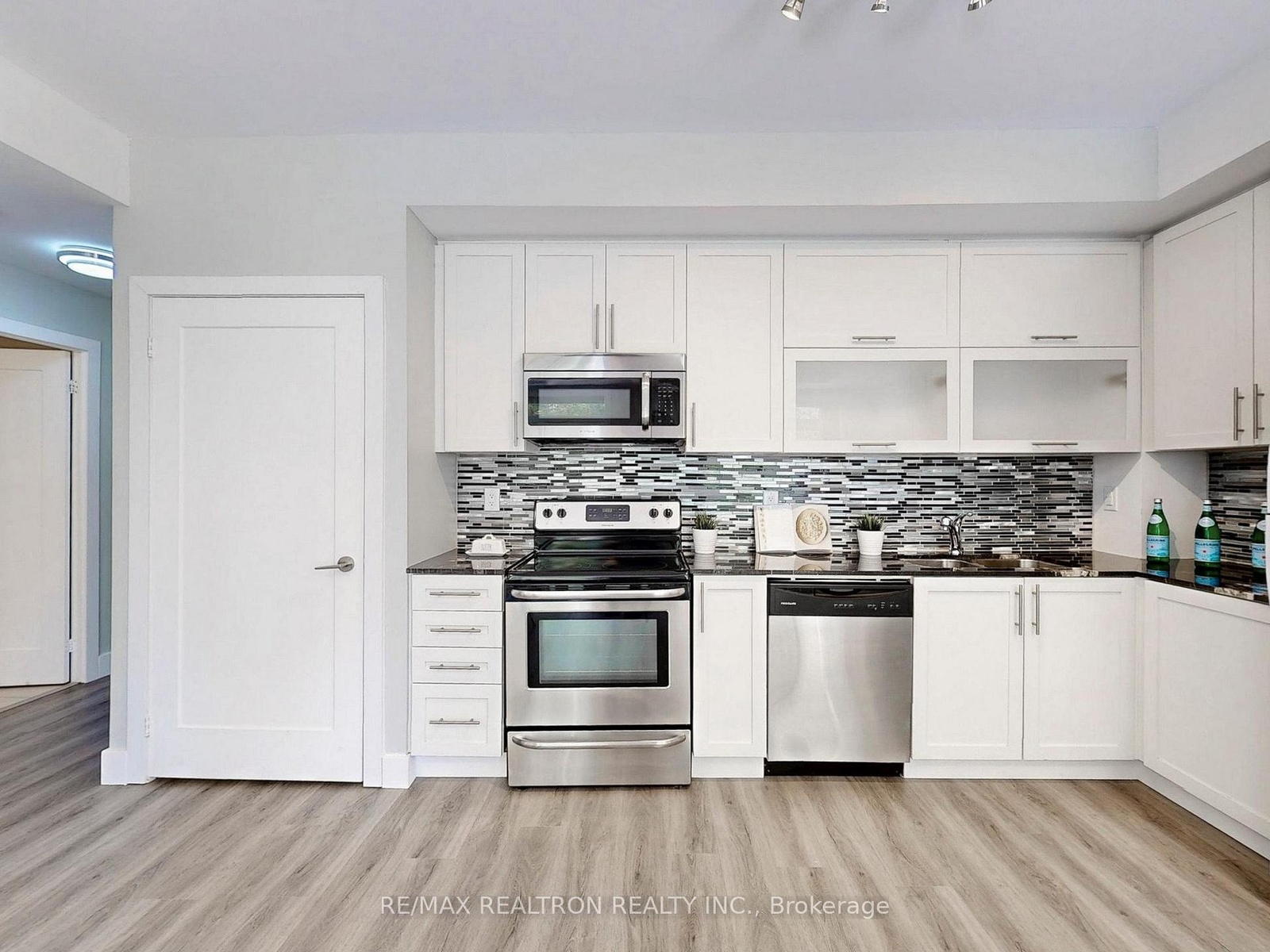 Garden Court Condos Built By Monarch Group! Spacious 1 + 1 Unit With 9' Smooth Ceiling For Small Family/Seniors. Laminated Flooring Through Out, Large Den Can Be Used As Study/Bedroom.Granite Countertop In Open Kitchen W/Backsplash. 2 Walk Out From Living & Dining Room To 241 SF Terrace For Outdoor Activities. Mins To 407, 404, Top Ranking Schools, Park, Restaurants, Viva & Much More .......... Don't Miss This Beauty!