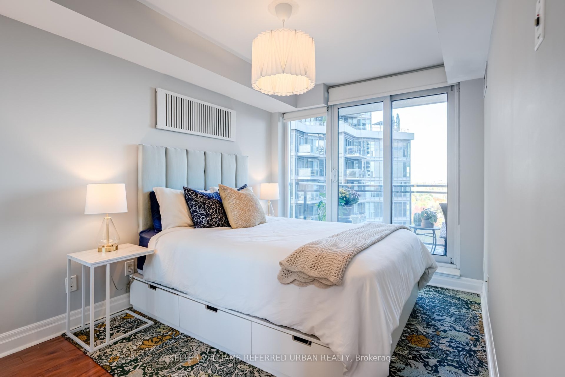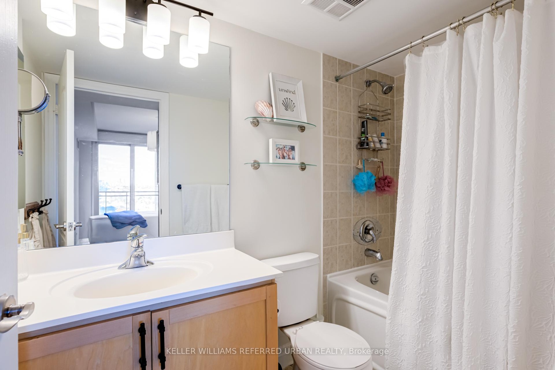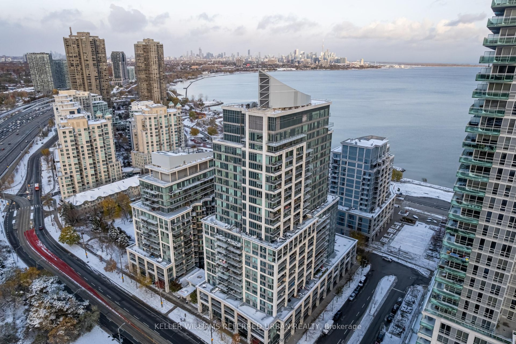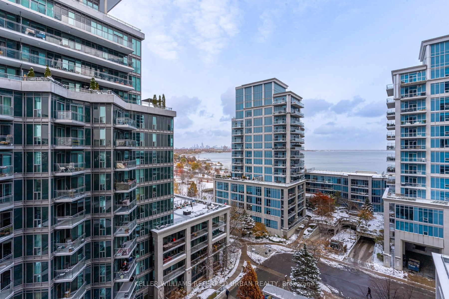 Stylish and spacious 1 bedroom + den, 2 bath suite in the sought-after Voyager I at Waterview. This bright and inviting unit features an open-concept layout with floor-to-ceiling windows and a private full-length balcony offering tranquil lake and park views. The modern kitchen is equipped with full-sized appliances, ample counter space, and a breakfast bar ideal for casual dining or entertaining. The primary bedroom offers its own balcony walkout and a 4-piece ensuite, while the versatile den makes a perfect home office or guest space. Complete with two full bathrooms, a welcoming foyer, and access to resort-style amenities, this suite perfectly blends comfort, convenience, and waterfront living in vibrant Mimico.