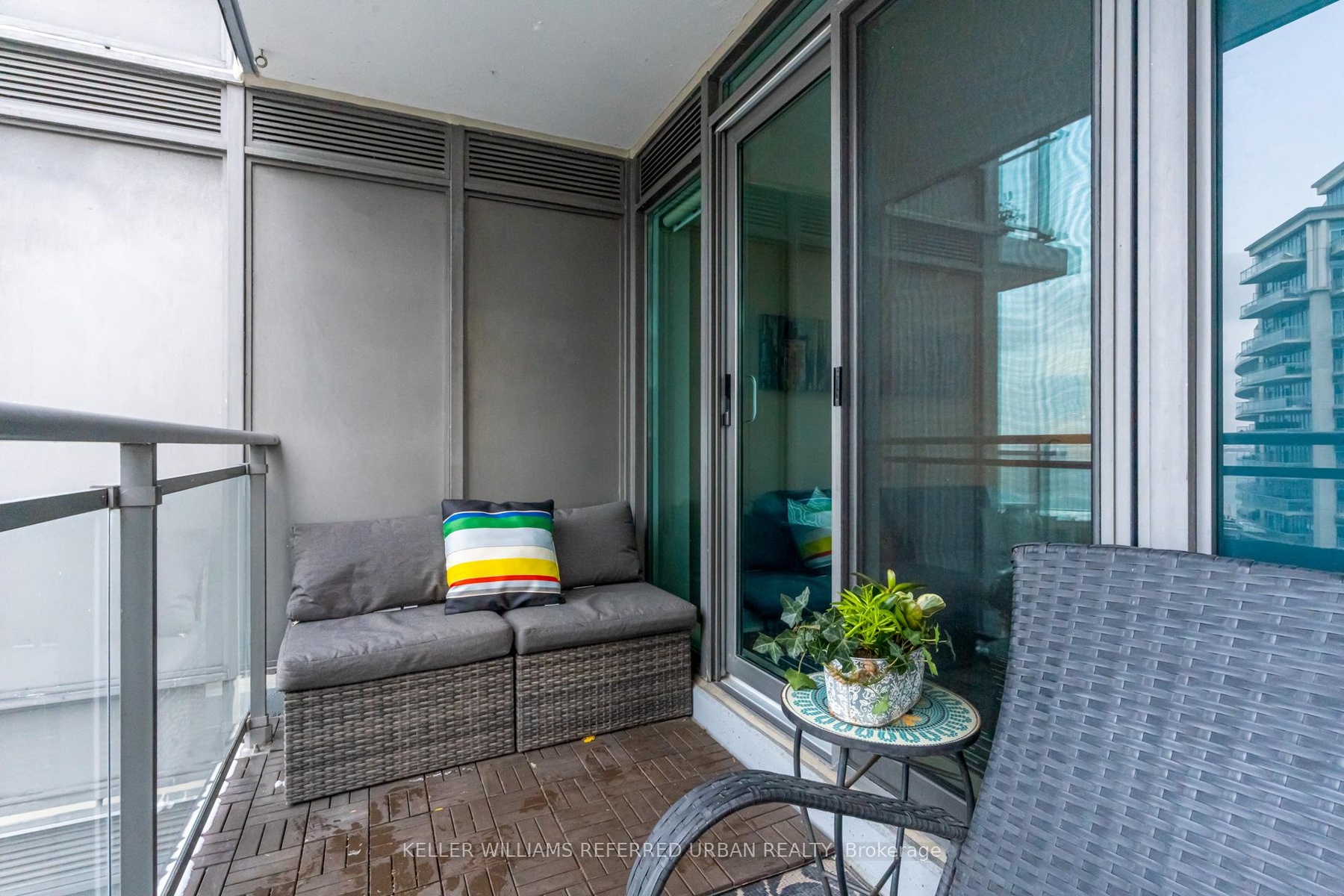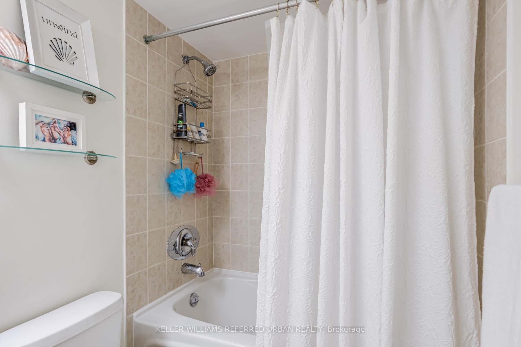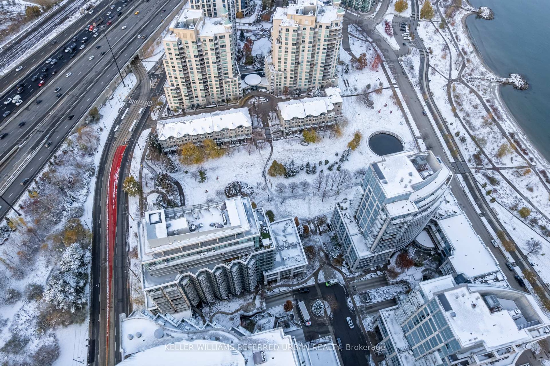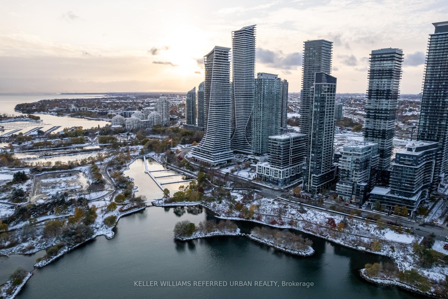 Stylish and spacious 1 bedroom + den, 2 bath suite in the sought-after Voyager I at Waterview. This bright and inviting unit features an open-concept layout with floor-to-ceiling windows and a private full-length balcony offering tranquil lake and park views. The modern kitchen is equipped with full-sized appliances, ample counter space, and a breakfast bar ideal for casual dining or entertaining. The primary bedroom offers its own balcony walkout and a 4-piece ensuite, while the versatile den makes a perfect home office or guest space. Complete with two full bathrooms, a welcoming foyer, and access to resort-style amenities, this suite perfectly blends comfort, convenience, and waterfront living in vibrant Mimico.