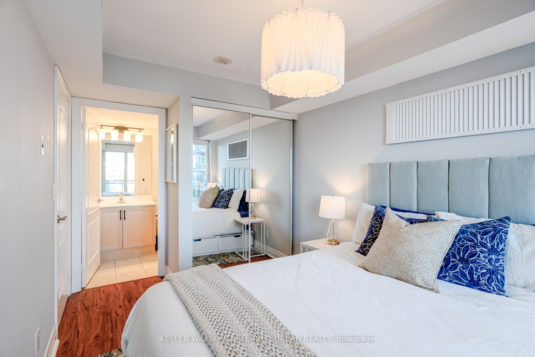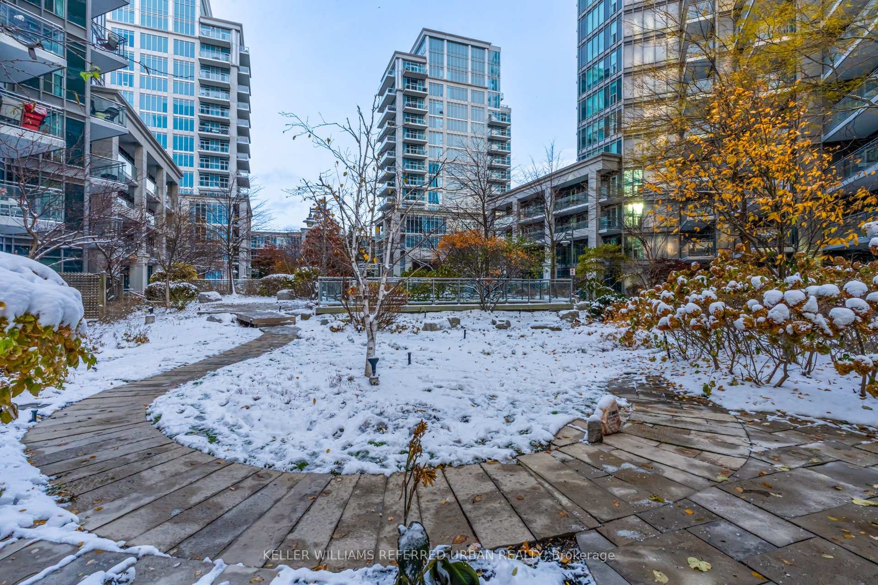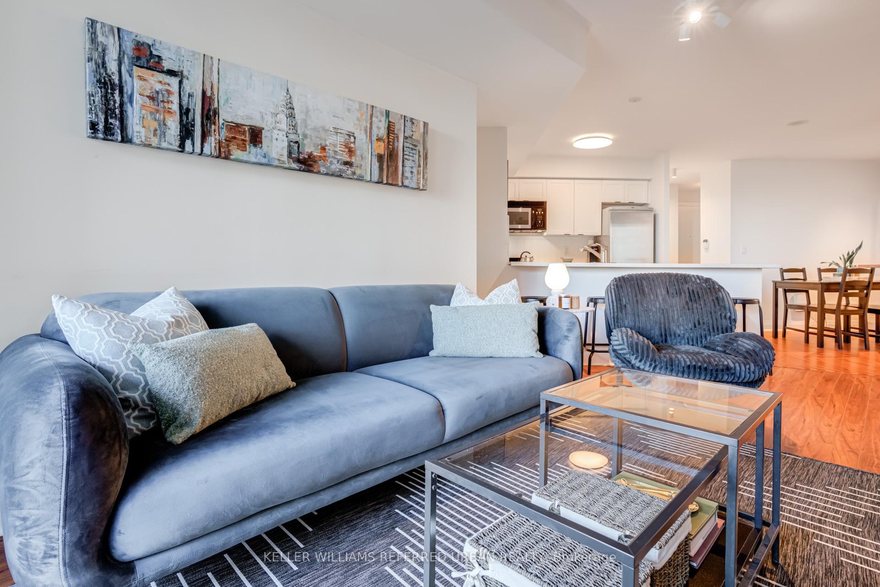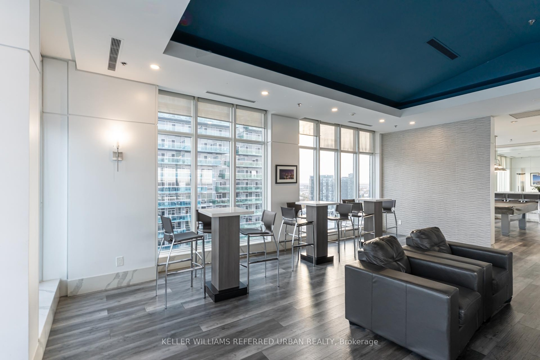 Stylish and spacious 1 bedroom + den, 2 bath suite in the sought-after Voyager I at Waterview. This bright and inviting unit features an open-concept layout with floor-to-ceiling windows and a private full-length balcony offering tranquil lake and park views. The modern kitchen is equipped with full-sized appliances, ample counter space, and a breakfast bar ideal for casual dining or entertaining. The primary bedroom offers its own balcony walkout and a 4-piece ensuite, while the versatile den makes a perfect home office or guest space. Complete with two full bathrooms, a welcoming foyer, and access to resort-style amenities, this suite perfectly blends comfort, convenience, and waterfront living in vibrant Mimico.