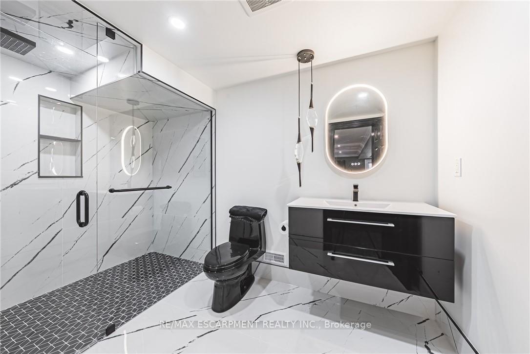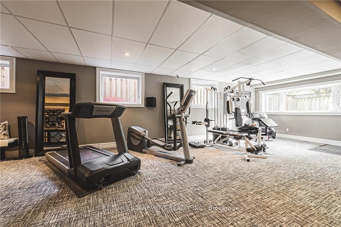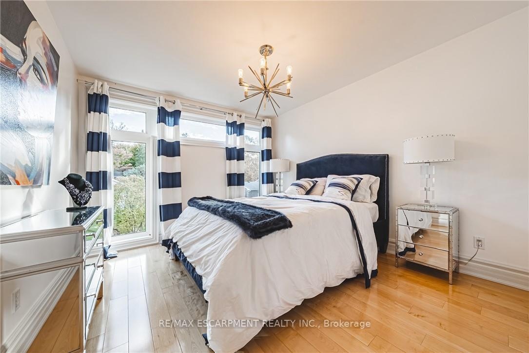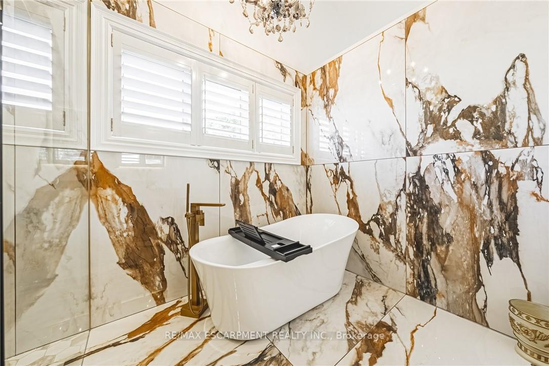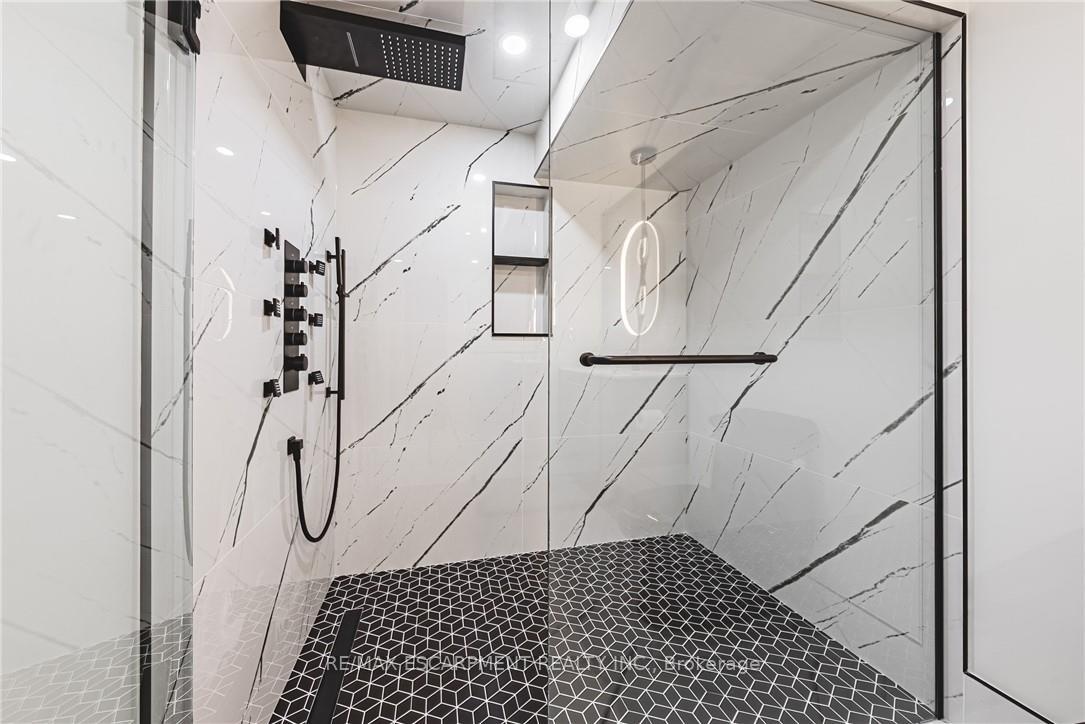 Unique, custom-built luxury home in the highly sought-after Ancaster Heights neighbourhood. Attention to detail & fine construction throughout, this home offers elegance, comfort, & functionality. Step into the grand sitting area, featuring soaring ceilings, stunning windows, & an impressive open staircase that connects all levels of the home. Sunken dining room boasts coffered gold leafing ceilings for refined entertaining. Custom Built Downsview kitchen offers abundant cabinetry, granite countertops, & top-of-the-line stainless steel appliances, including a Sub-Zero refrigerator, Wolf gas range, Gaggenau built-in oven, Miele dishwasher, & microwave storage. Relax or entertain in the expansive great room, featuring dramatic ceiling heights & a backlit onyx walls for your tv. An open-concept office with natural light, perfect workspace. Main-floor laundry room includes garage access. Upstairs, the spacious primary suite offers a large walk-in closet & a renovated 5-piece ensuite (2025). Two generous bedrooms share a beautifully appointed 4-piece bathroom, & a bright loft area overlooks both the front & rear of the home. The lower level features large windows & offers in-law suite potential with separate walk-ups to both the rear yard & garage. Cozy recreation room with fireplace, a fully equipped gym, a sauna for relaxation, 3 pc bath (2025), workshop, cold room, & plenty of storage space. The outdoor oasis includes a composite deck with built-in BBQ, hot tub, & an oversized waterfall feature with fireplace, artificial turf & a storage shed. Additional highlights include an oversized 2-car garage with abundant storage & a long interlock driveway accommodating up to 8 vehicles & irrigation system. Trillium award several years for landscaping. Ideally located near Tiffany Falls, Tamahaac Club, Highway 403, the Linc, Costco, schools, parks, & trails, luxury living with convenience & lifestyle.