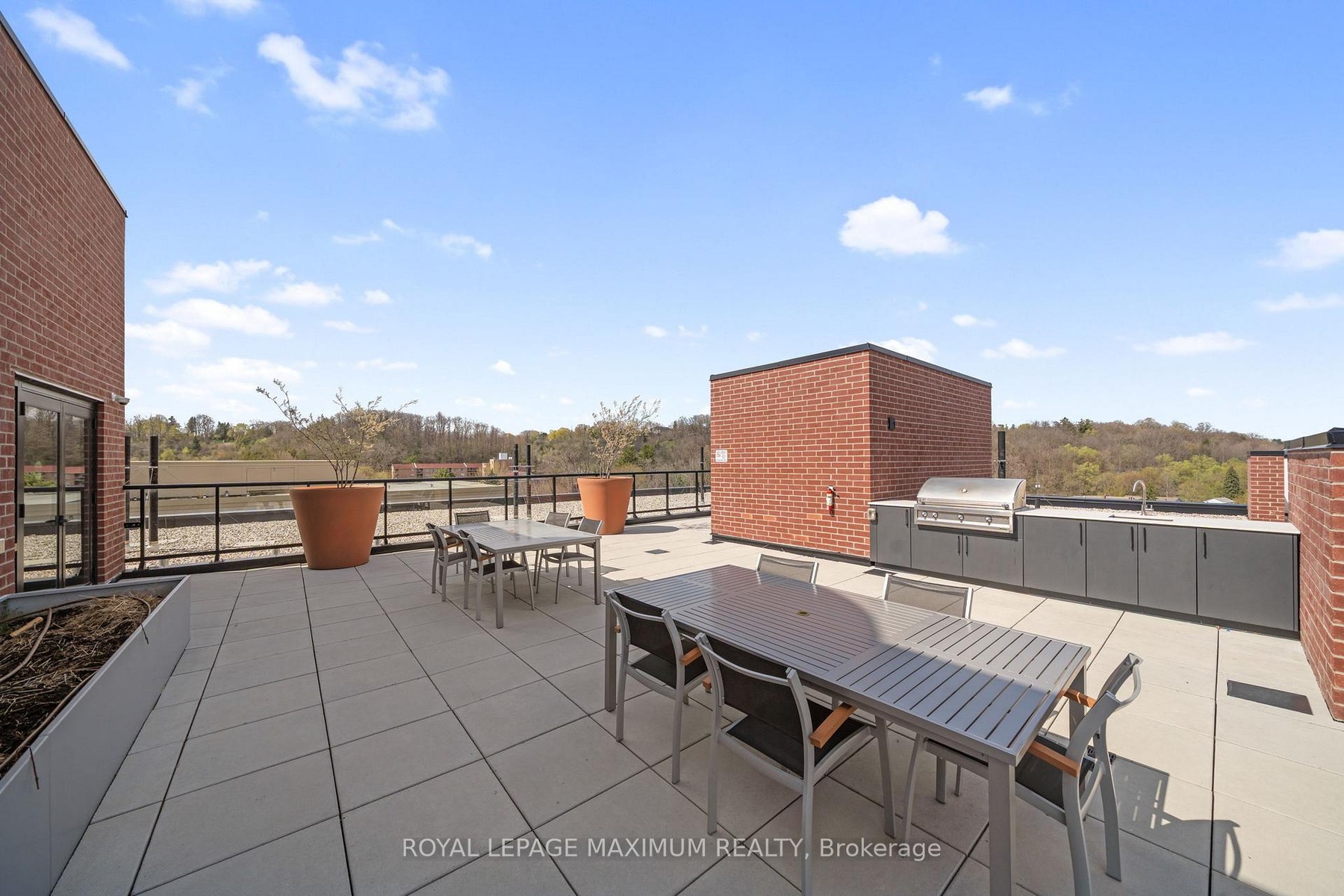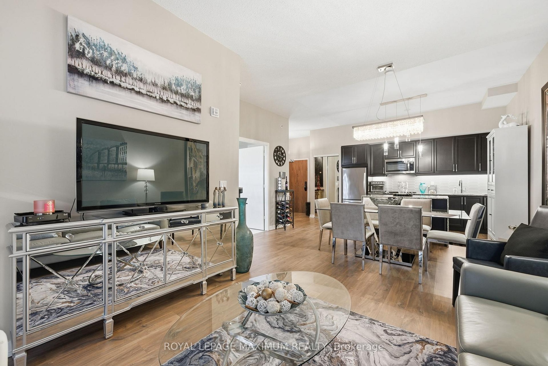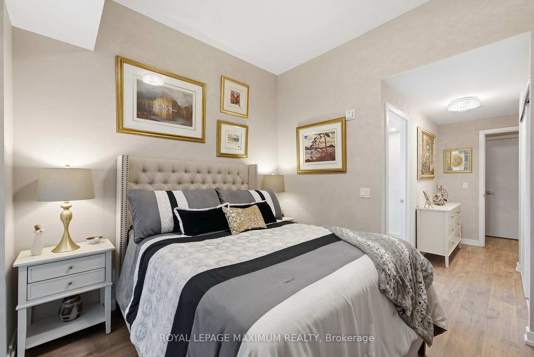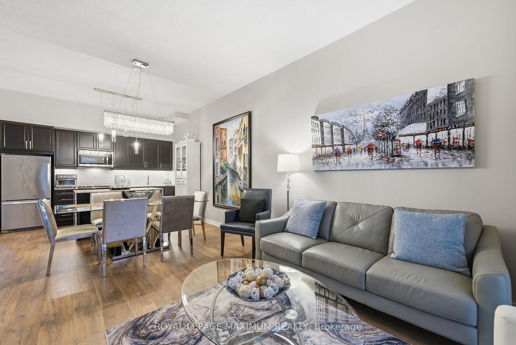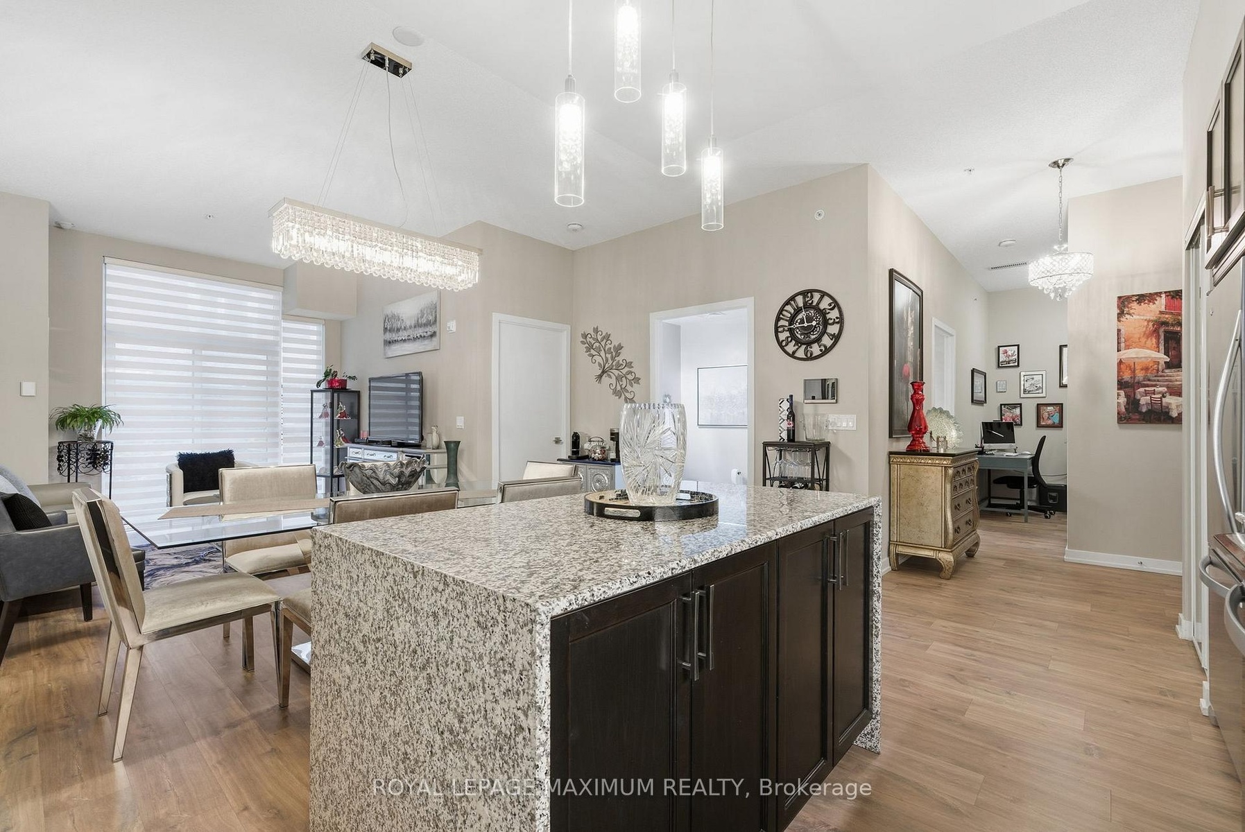 Truly One of A Kind, Rarely Offered, Modern & Spacious Condo In The Heart of Downtown Bolton! Sprawling 1012sqft with 2 Bedrooms + Den, 2 Bathrooms, and Large 405sqft Terrace. Tons of Upgrades Throughout. 10 Foot Ceiling Height. Modern Kitchen Featuring: Stone Countertops and Double Waterfall Edge, Backsplash, and Stainless Steel Appliances. Large Open Concept Living / Dining Rooms. Walk-out To Generously Sized Private Terrace, Perfect Spot for Morning Coffee's, BBQs, Summer Nights, Entertaining, or Private Access to Unit. Primary Bedroom With 3pc Ensuite, Upgraded Glass Shower, Double Closet, and Another Walk-Out to The Terrace. Large 2nd Bedroom (Not Pictured). Den Can Be Used As Office, Nursery, Etc. Heated Laminate & Tile Flooring Throughout. Building Amenities Include: Party Room, Rooftop Terrace & BBQ Area, Gym, Pet Spa, & Guest Suite. Prime & Sought After Location in Downtown Bolton, Steps to: Shops, Restaurants, Humber River & Trails, Parks & More. Nearby Highways 427 & 400. Wheelchair Accessible Building & 2nd Bathroom Door Width for Wheelchair Access. Includes 1 Owned Underground Parking Space & 1 Owned Locker. This Is The One You Have Been Waiting For!