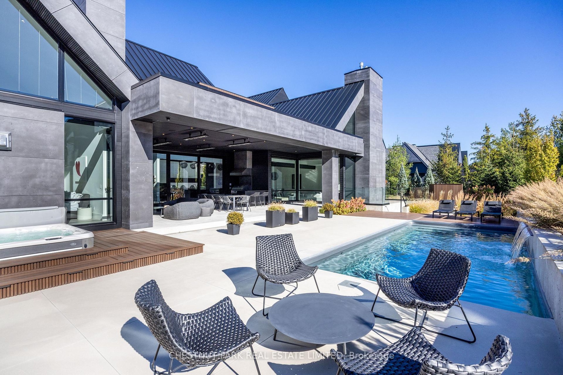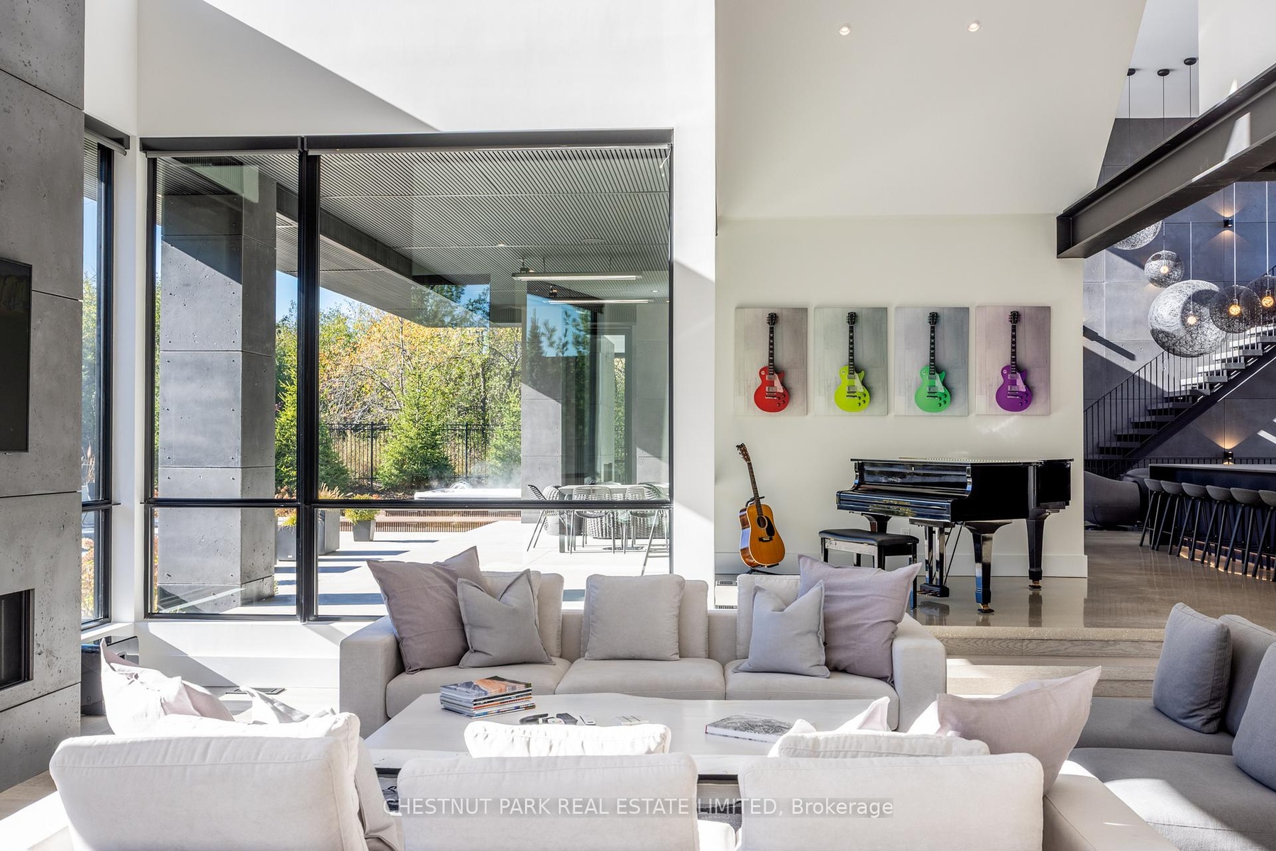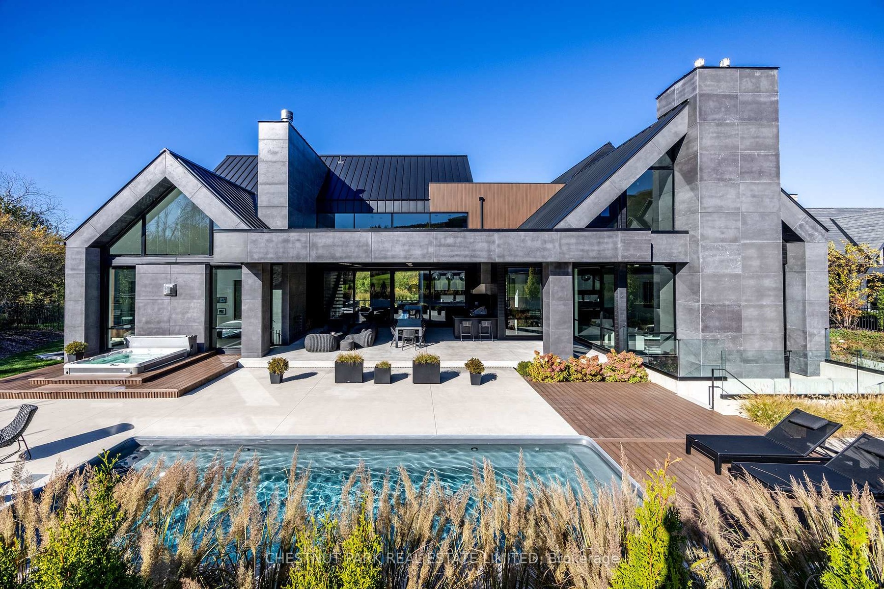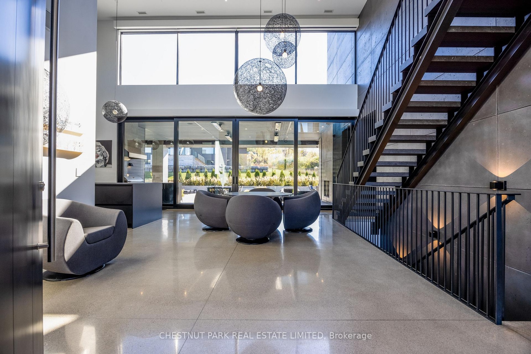 Architecturally stunning custom home in the exclusive Camperdown community, a coveted year-round golf, ski, and outdoor playground that epitomizes four-season living in Southern Georgian Bay. Over 9,000 sq.ft. of refined living space with soaring 20-ft ceilings, exposed beams, heated polished concrete floors and dramatic floor-to-ceiling windows that flood the interior with natural light. The sunken great room with a 24-foot stone fireplace exudes warmth and comfort - a space equally suited for quiet evenings or entertaining a hundred guests with ease. A striking matte-black kitchen anchors the main level with an 18-ft island, Wolf & JennAir appliances, and a fully equipped butler's kitchen for seamless hosting. The private primary wing is a true retreat featuring a fireplace, dual walk-in closets, and a spa-level ensuite with mountain views and a walkout to the hot tub. Upstairs, a junior primary suite impresses with vaulted ceilings, a 6-piece ensuite, and a private terrace, while two additional bedrooms open to a covered patio with escarpment views. The lower level is an entertainer's dream with a games lounge, wet bar, golf simulator, gym, music studio, and two more bedrooms. Outdoors, enjoy resort-inspired living with a waterfall pool, hot tub, and a covered lounge with wood-burning fireplace and built-in BBQ. Legal golf cart access to the Georgian Bay Club, and just minutes to Peaks, Blue Mountain, Thornbury, and Collingwood. A rare offering that captures the very best of four-season living in Southern Georgian Bay.