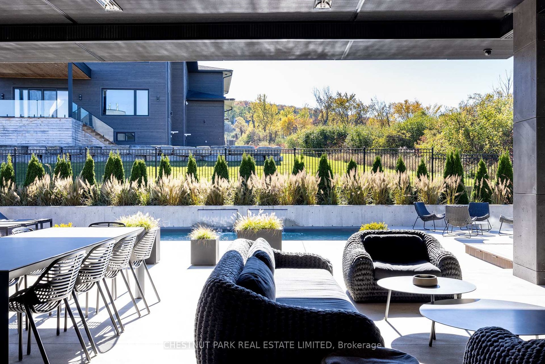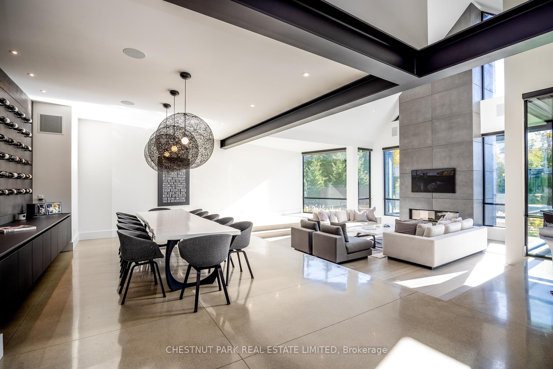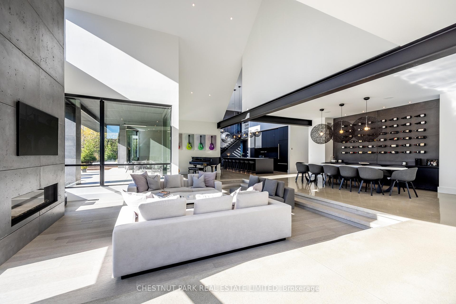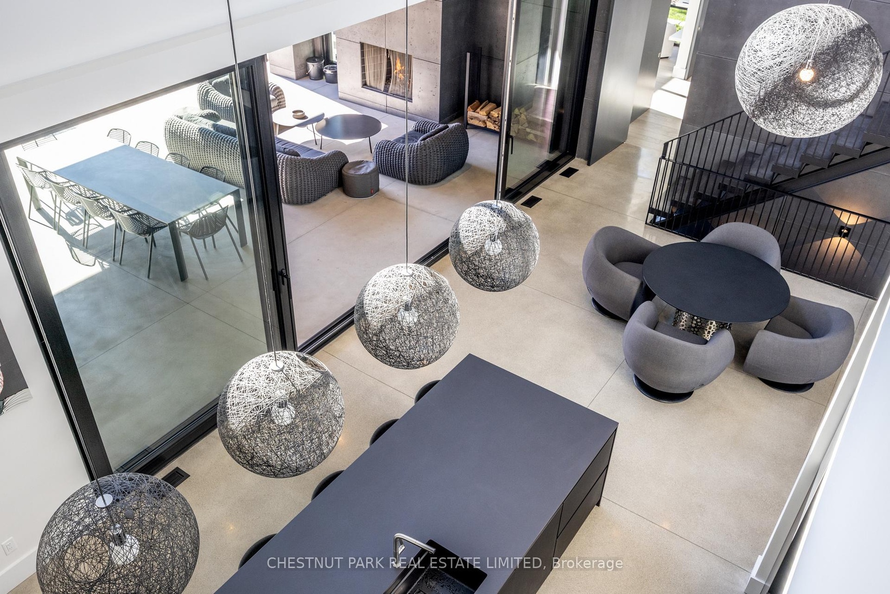 Architecturally stunning custom home in the exclusive Camperdown community, a coveted year-round golf, ski, and outdoor playground that epitomizes four-season living in Southern Georgian Bay. Over 9,000 sq.ft. of refined living space with soaring 20-ft ceilings, exposed beams, heated polished concrete floors and dramatic floor-to-ceiling windows that flood the interior with natural light. The sunken great room with a 24-foot stone fireplace exudes warmth and comfort - a space equally suited for quiet evenings or entertaining a hundred guests with ease. A striking matte-black kitchen anchors the main level with an 18-ft island, Wolf & JennAir appliances, and a fully equipped butler's kitchen for seamless hosting. The private primary wing is a true retreat featuring a fireplace, dual walk-in closets, and a spa-level ensuite with mountain views and a walkout to the hot tub. Upstairs, a junior primary suite impresses with vaulted ceilings, a 6-piece ensuite, and a private terrace, while two additional bedrooms open to a covered patio with escarpment views. The lower level is an entertainer's dream with a games lounge, wet bar, golf simulator, gym, music studio, and two more bedrooms. Outdoors, enjoy resort-inspired living with a waterfall pool, hot tub, and a covered lounge with wood-burning fireplace and built-in BBQ. Legal golf cart access to the Georgian Bay Club, and just minutes to Peaks, Blue Mountain, Thornbury, and Collingwood. A rare offering that captures the very best of four-season living in Southern Georgian Bay.