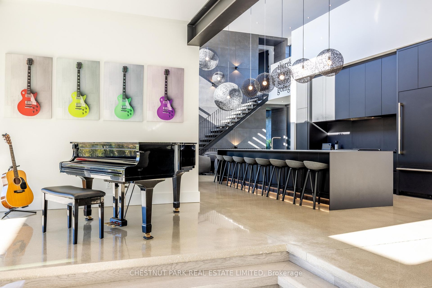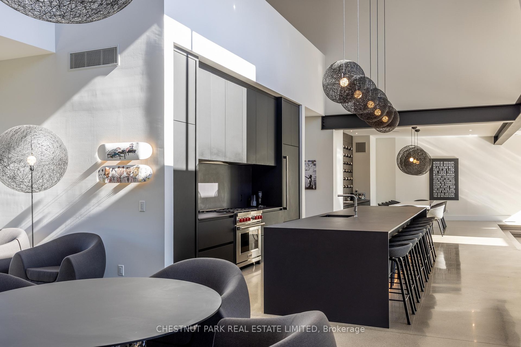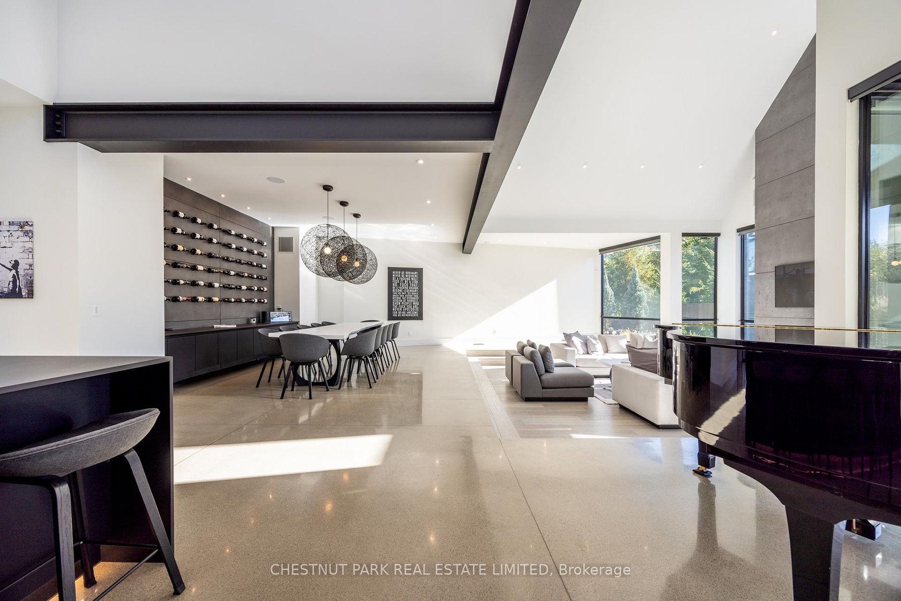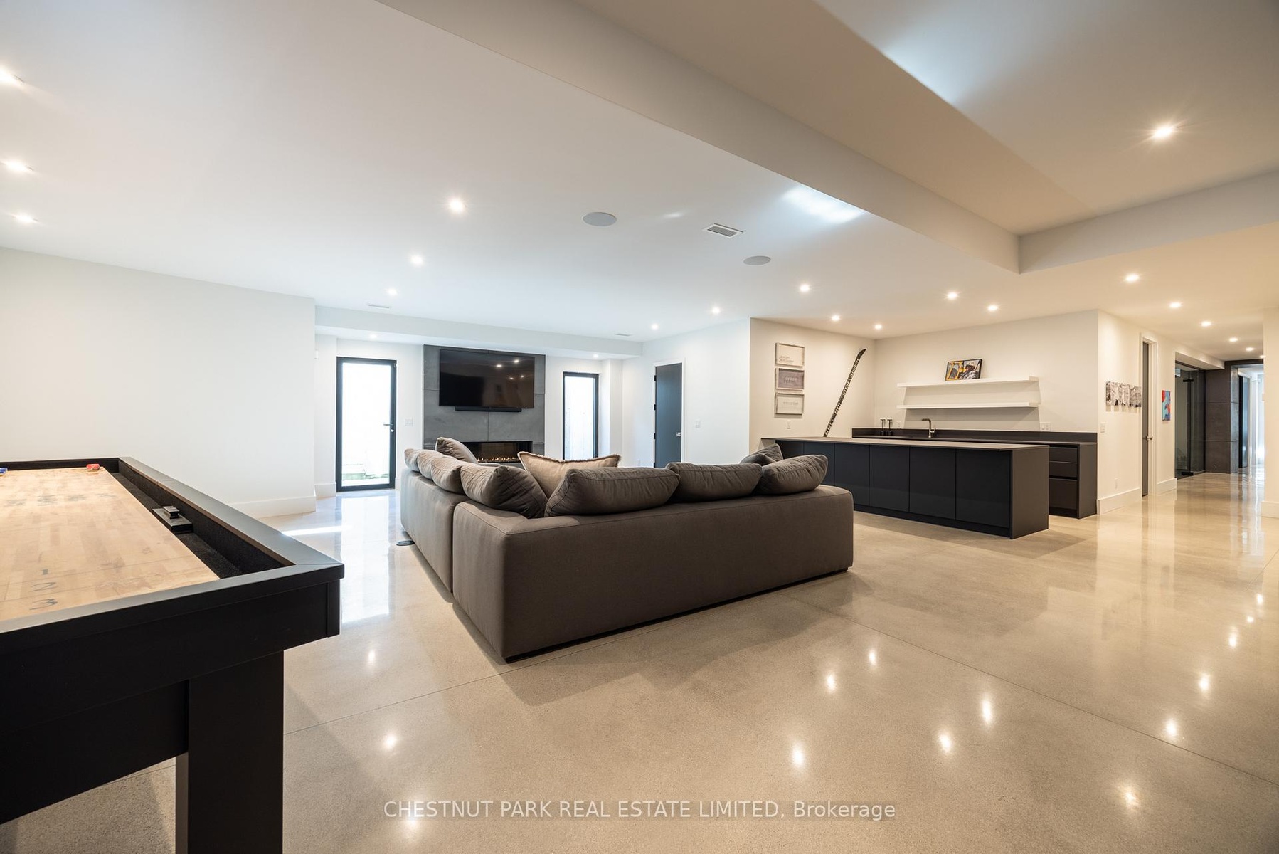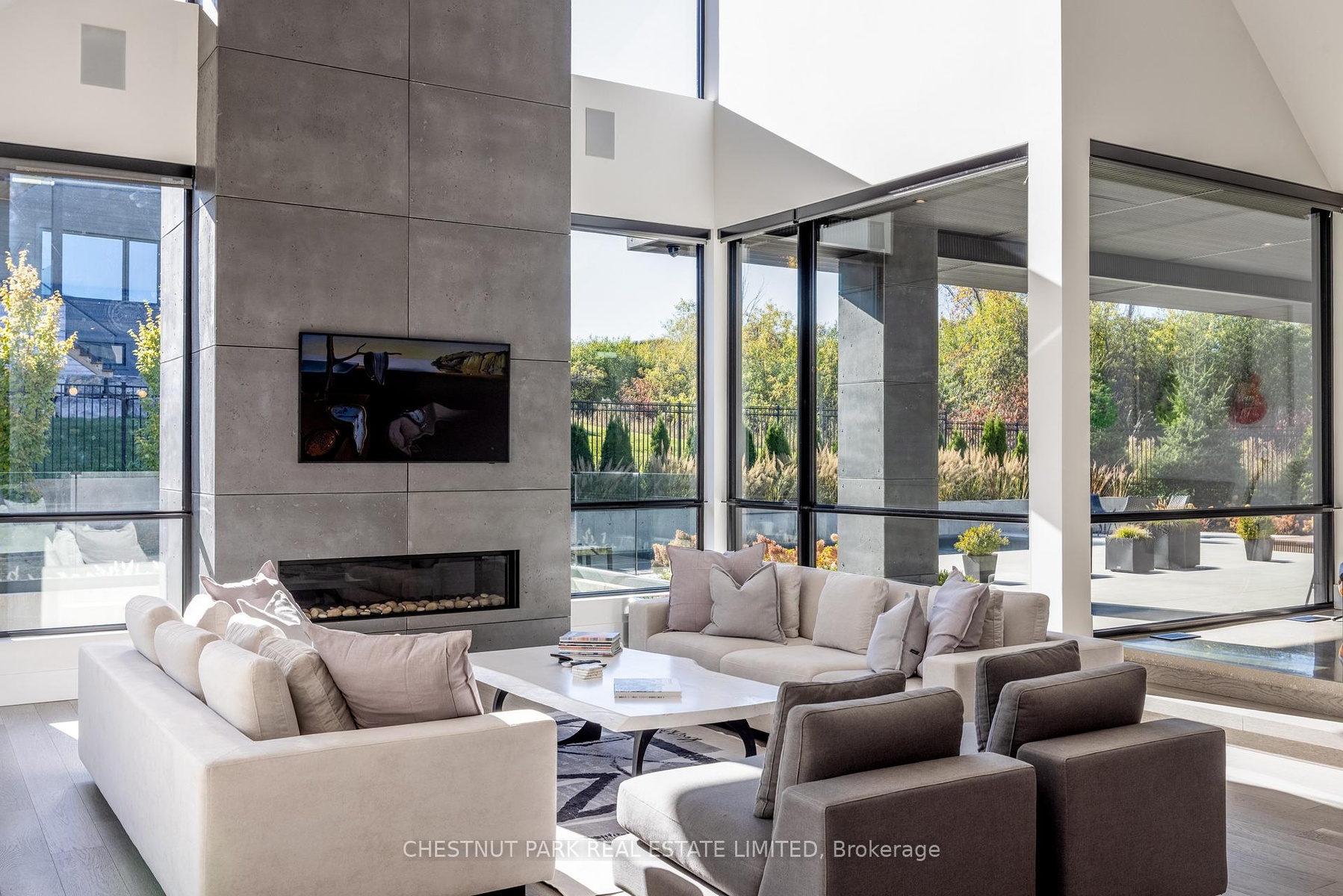 Architecturally stunning custom home in the exclusive Camperdown community, a coveted year-round golf, ski, and outdoor playground that epitomizes four-season living in Southern Georgian Bay. Over 9,000 sq.ft. of refined living space with soaring 20-ft ceilings, exposed beams, heated polished concrete floors and dramatic floor-to-ceiling windows that flood the interior with natural light. The sunken great room with a 24-foot stone fireplace exudes warmth and comfort - a space equally suited for quiet evenings or entertaining a hundred guests with ease. A striking matte-black kitchen anchors the main level with an 18-ft island, Wolf & JennAir appliances, and a fully equipped butler's kitchen for seamless hosting. The private primary wing is a true retreat featuring a fireplace, dual walk-in closets, and a spa-level ensuite with mountain views and a walkout to the hot tub. Upstairs, a junior primary suite impresses with vaulted ceilings, a 6-piece ensuite, and a private terrace, while two additional bedrooms open to a covered patio with escarpment views. The lower level is an entertainer's dream with a games lounge, wet bar, golf simulator, gym, music studio, and two more bedrooms. Outdoors, enjoy resort-inspired living with a waterfall pool, hot tub, and a covered lounge with wood-burning fireplace and built-in BBQ. Legal golf cart access to the Georgian Bay Club, and just minutes to Peaks, Blue Mountain, Thornbury, and Collingwood. A rare offering that captures the very best of four-season living in Southern Georgian Bay.